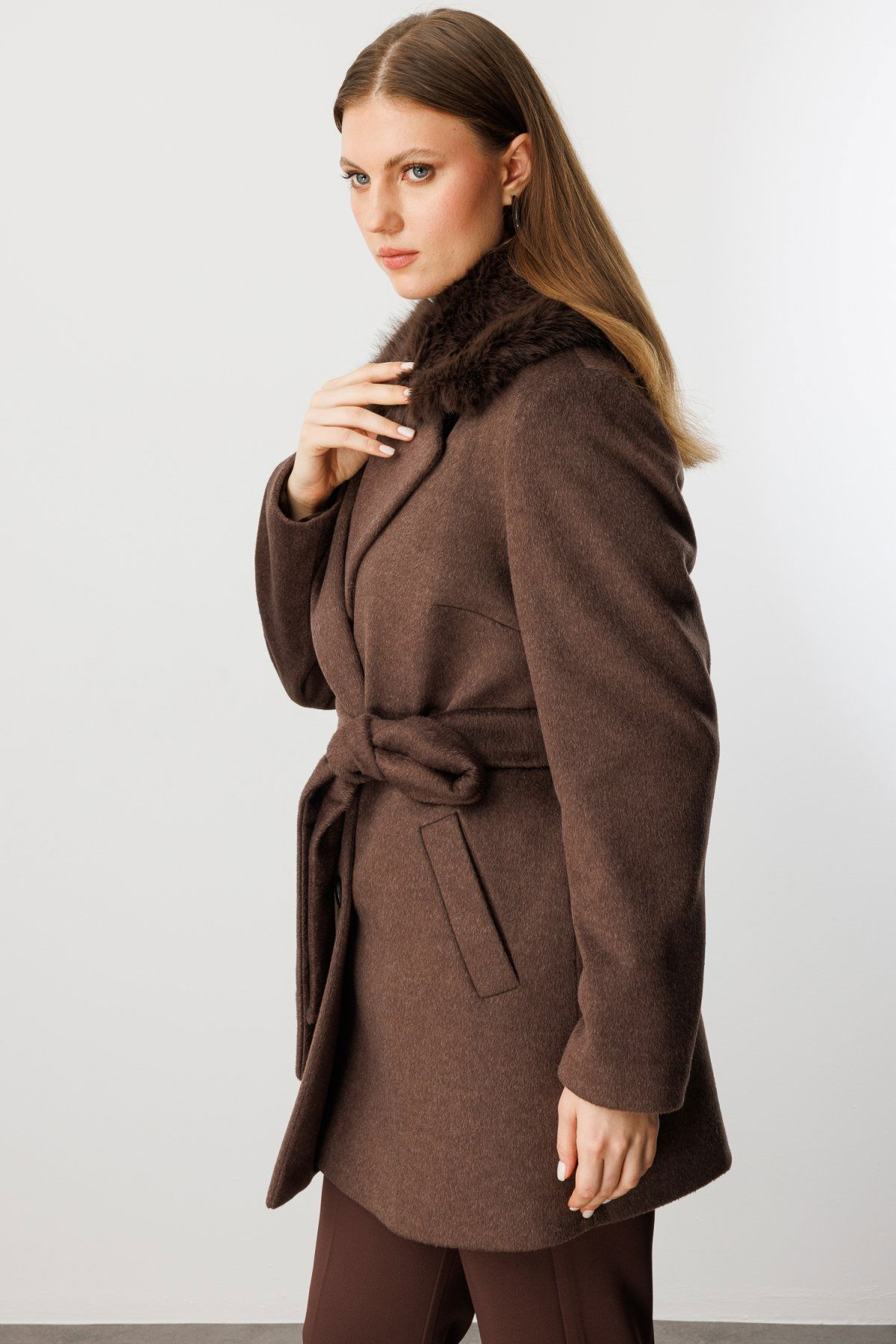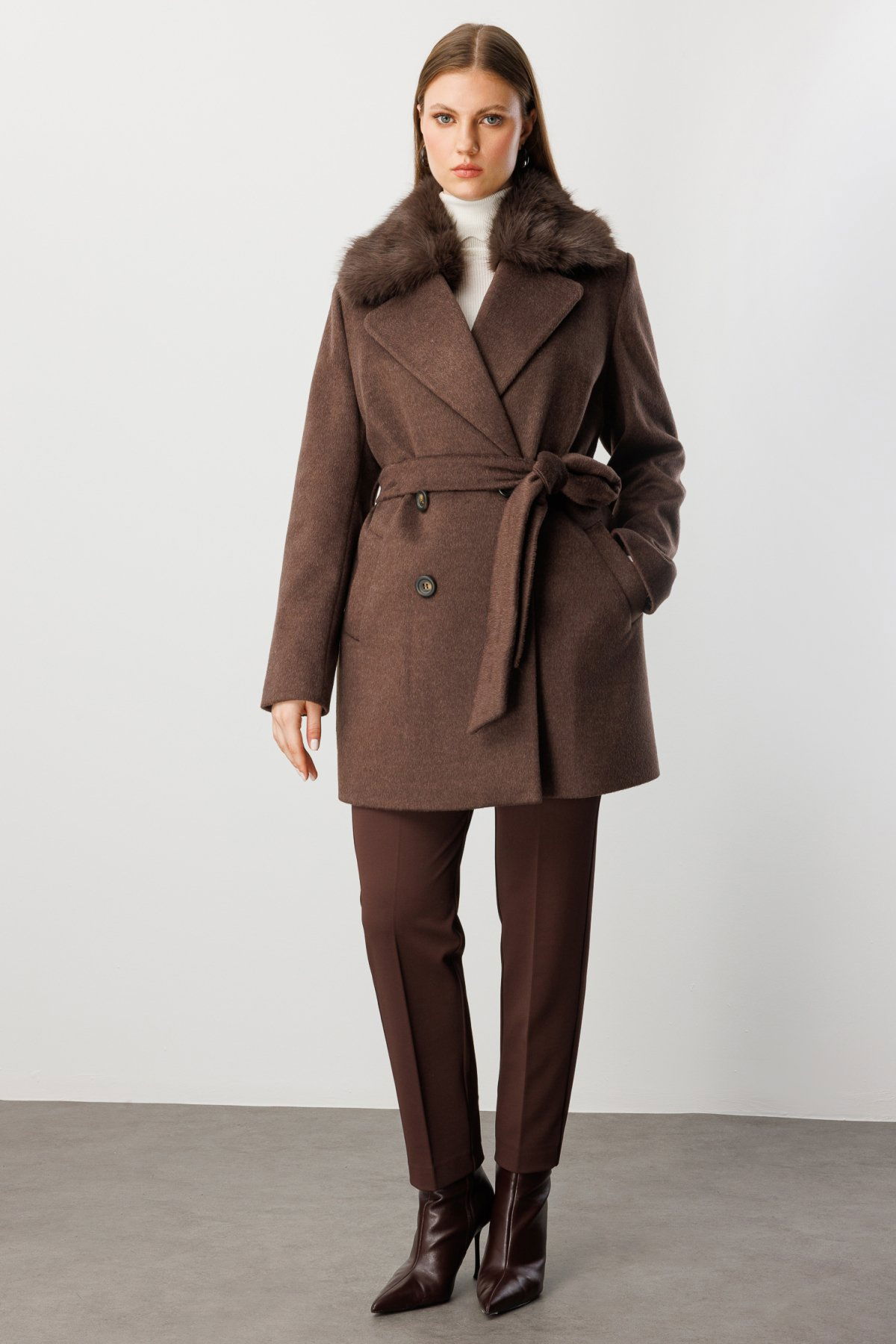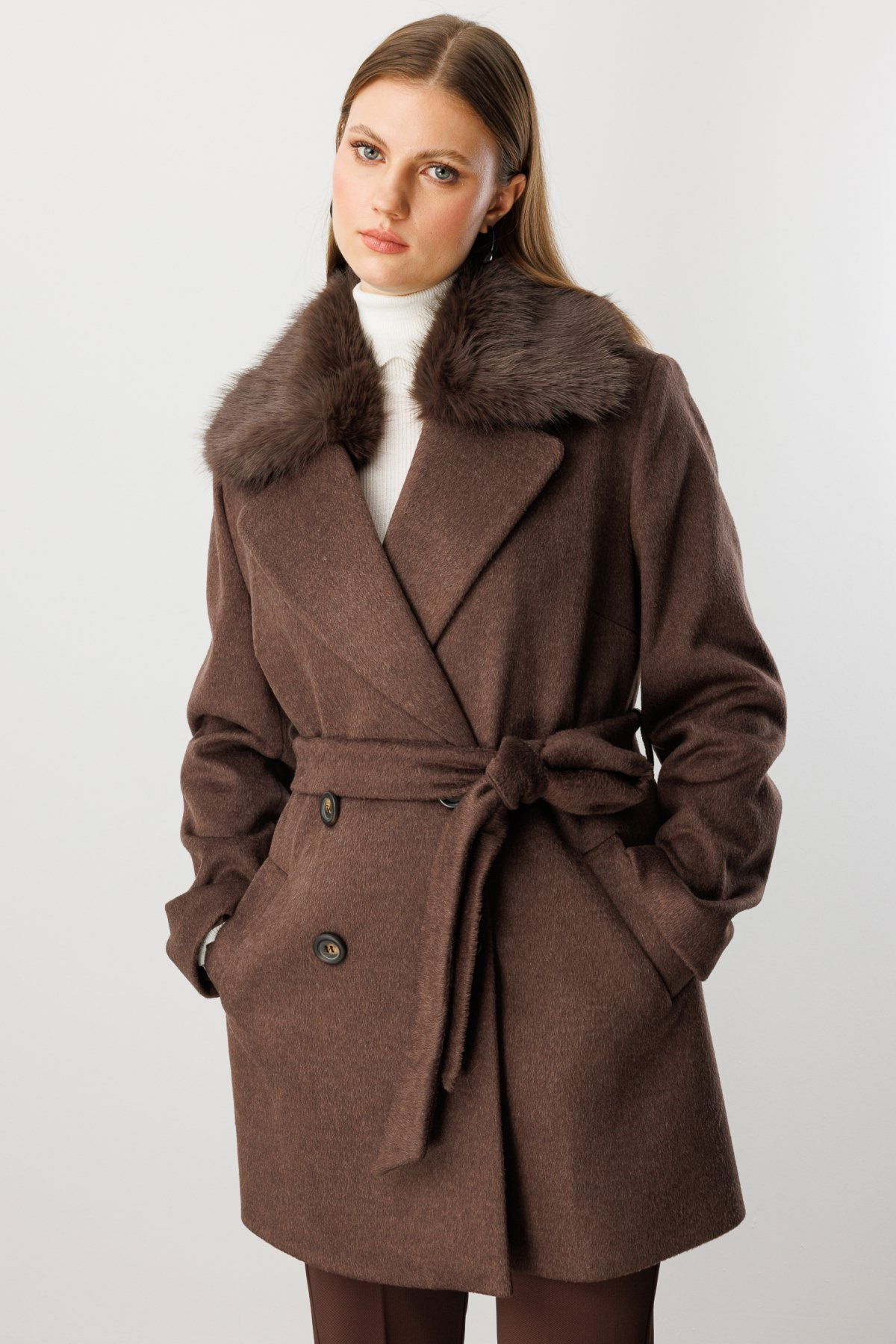 Detay: Fonksiyonel detaylarıyla öne çıkan bu uzun kollu dokuma kaban, astarlı yapısıyla soğuk havalarda sıcaklık ve konfor sunar. Çıkarılabilir yaka tasarımı sayesinde farklı stillere kolayca uyum sağlarken, kuşak detayıyla bel hattını vurgulayarak feminen bir siluet oluşturur. Düğmeli kapama özelliği klasik bir duruş kazandırırken, yan cepleriyle günlük kullanımda pratiklik sağlar. Hem şık hem de kullanışlı bir dış giyim alternatifi arayanlar için ideal bir seçimdir;