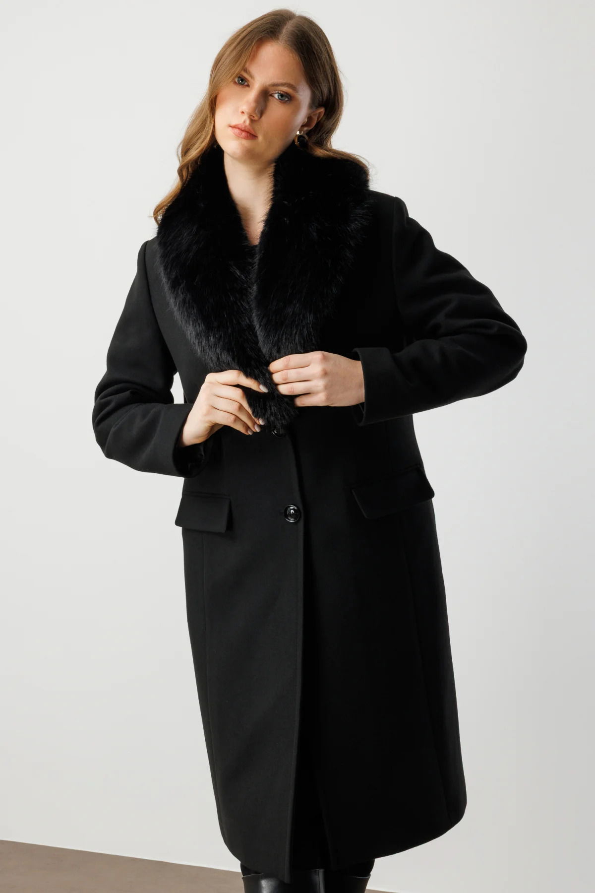 Detay: Astarlı dokuma kumaştan üretilmiş, çıkarılabilir yaka ve vatkalı uzun kol tasarımıyla modern şıklığı yansıtan bu kalın kaban, düğmeli kapama ve kapaklı cep detaylarıyla hem estetik hem de fonksiyonel bir kullanım sunar. Soğuk havalarda maksimum koruma sağlarken çıkarılabilir yaka özelliği sayesinde farklı kombin seçenekleri oluşturur. Zamansız çizgisi ve kaliteli dokusuyla gardırobunuzun en gözde dış giyim parçalarından biri olmaya adaydır;