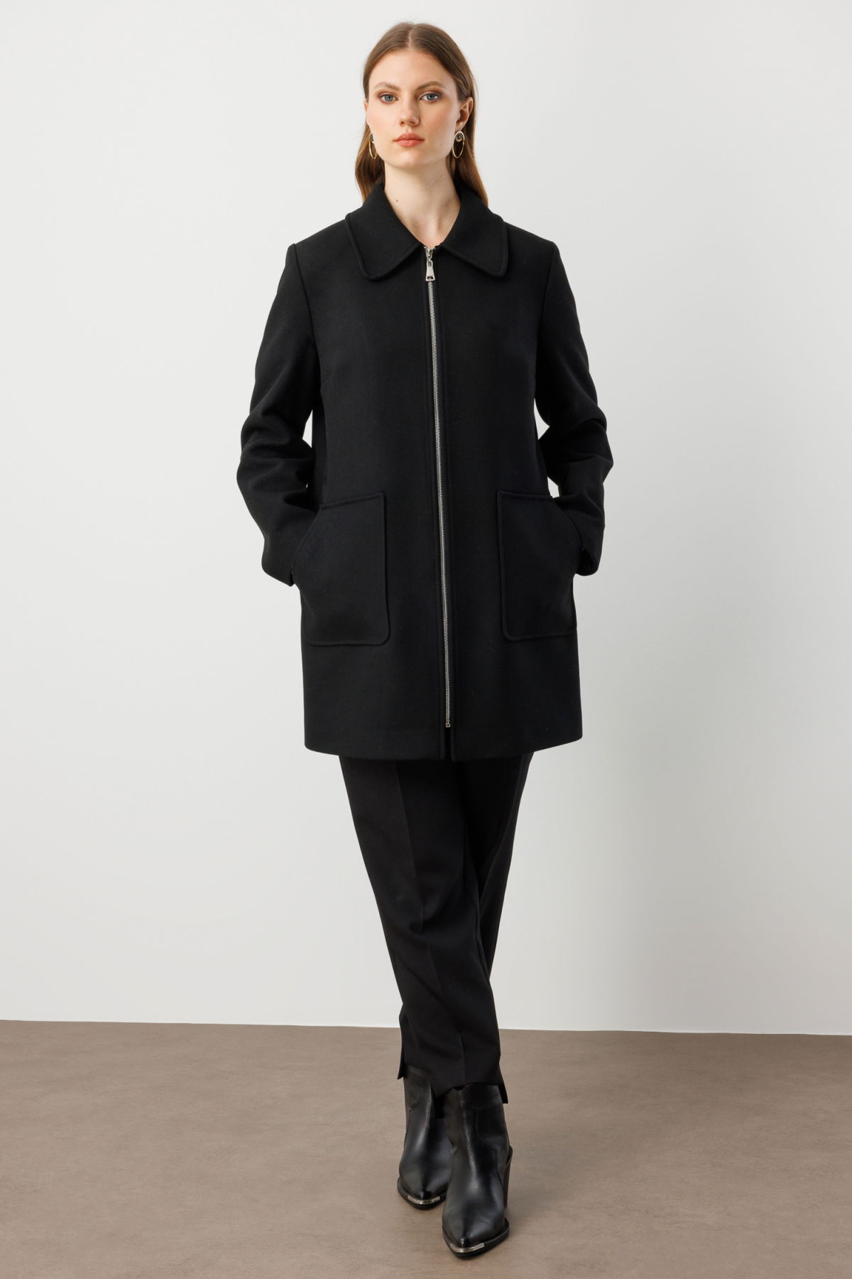 Detay: Dokuma kumaş yapısıyla dayanıklılığı ön plana çıkan bu kalın kaban, astarlı tasarımı sayesinde ekstra konfor ve sıcaklık sunar. Uzun kollu formu ve bebe yaka detayıyla zarif bir görünüm kazandırırken, fermuarlı kapama pratik kullanım sağlar. Yan cepli tasarımı ise hem fonksiyonel hem de şık bir dokunuşla kabanı günlük ve özel kombinler için ideal hale getirir;
