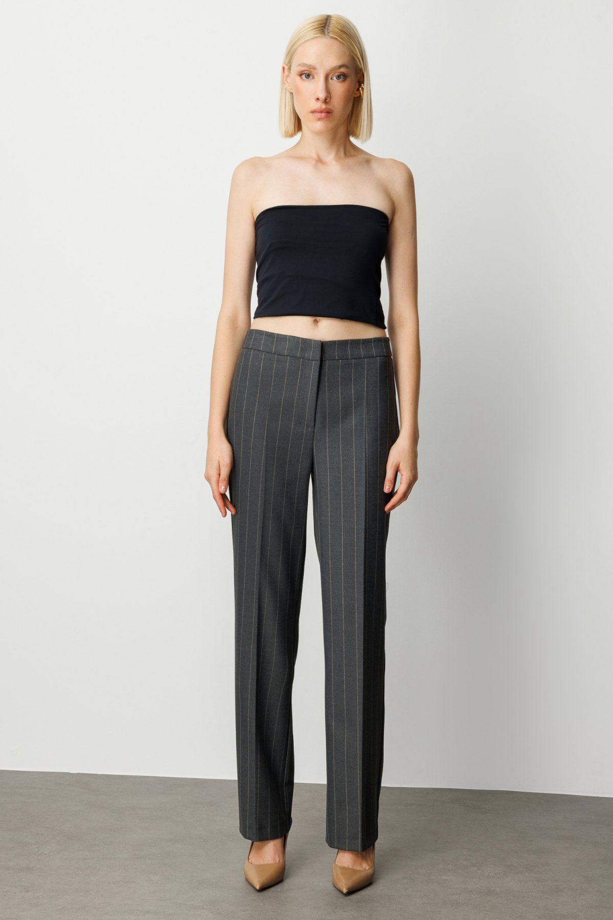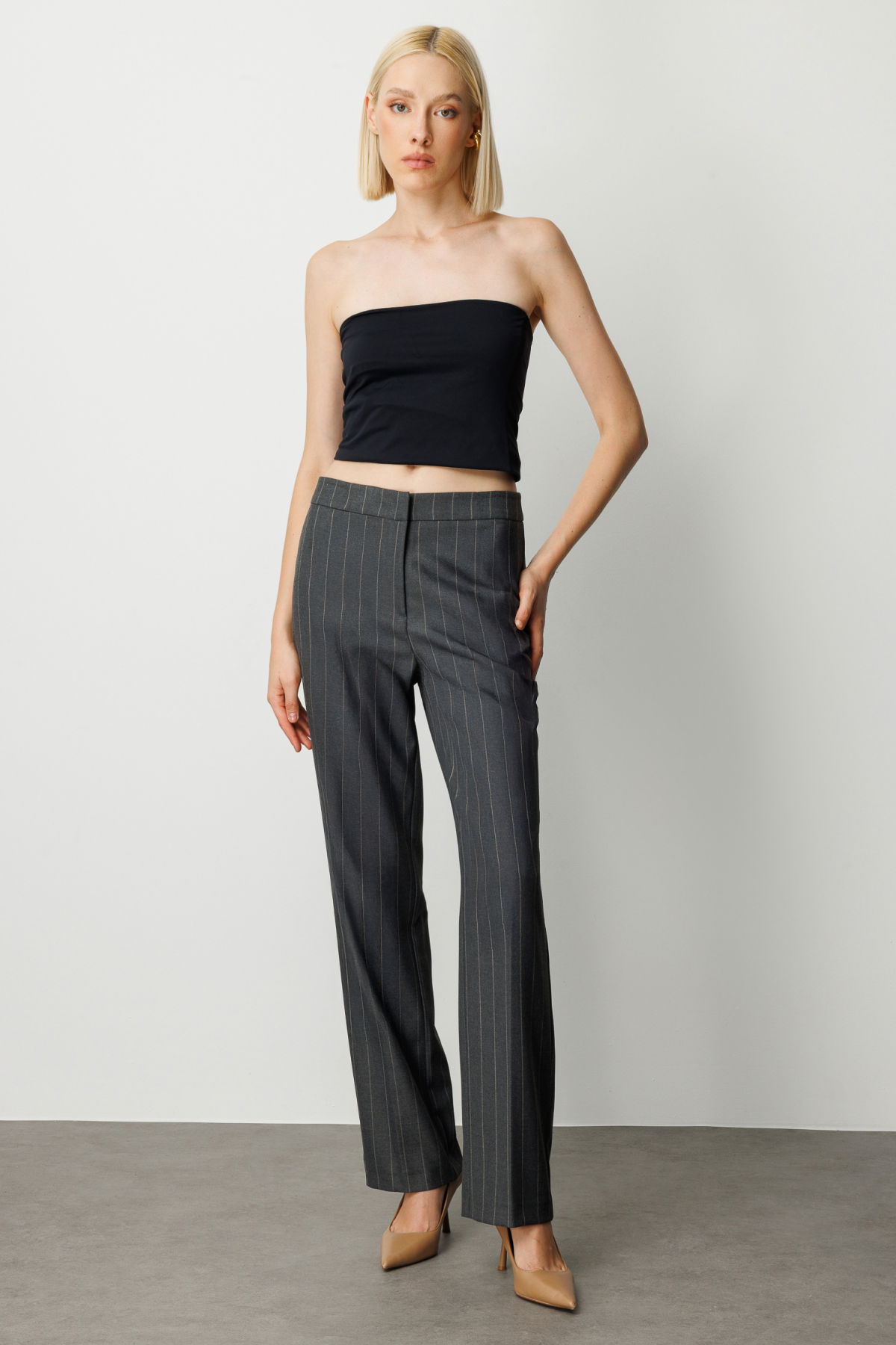 Detay: Dokuma kumaştan üretilmiş, yüksek bel ve bol paça tasarıma sahip bu cepsiz pantolon; modern siluetiyle şehirli stilin güçlü bir yansımasıdır. Fermuarlı kapama detayı sayesinde pratik kullanım sunan bu yüksek bel pantolon, zarif duruşuyla hem ofis hem de günlük kombinlerde öne çıkar. Cepsiz tasarımıyla sade ve akıcı bir görünüm sağlayan bol paça pantolon modelleri, minimal şıklığın vazgeçilmez parçasıdır;