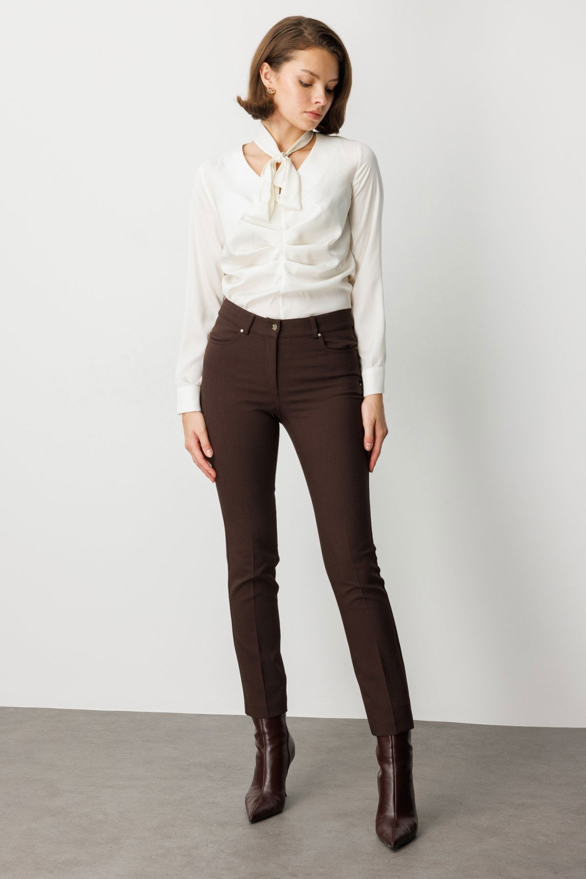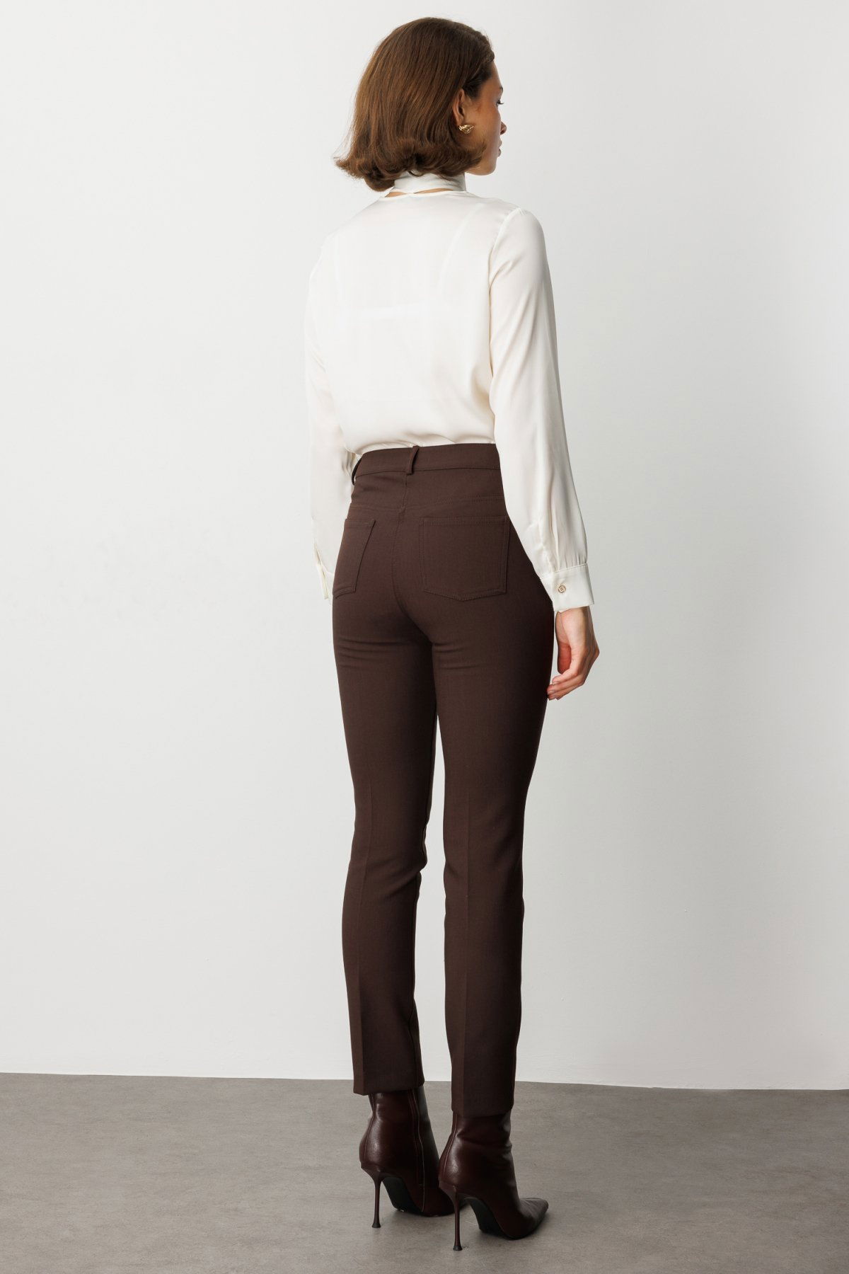 Detay: Modern ve dinamik tarzıyla öne çıkan bu dar paça pantolon, dokuma kumaşı sayesinde şık ve düzgün bir duruş sunar. Astarsız yapısı hafiflik sağlarken, düşük bel kesimiyle cesur ve genç bir stil yansıtır. Fermuarlı kapama detayı pratiklik katarken, yan cepler ise günlük kullanımda fonksiyonellik sunar. Günlük kombinlerden sokak stiline kadar pek çok görünümle rahatça uyum sağlar;