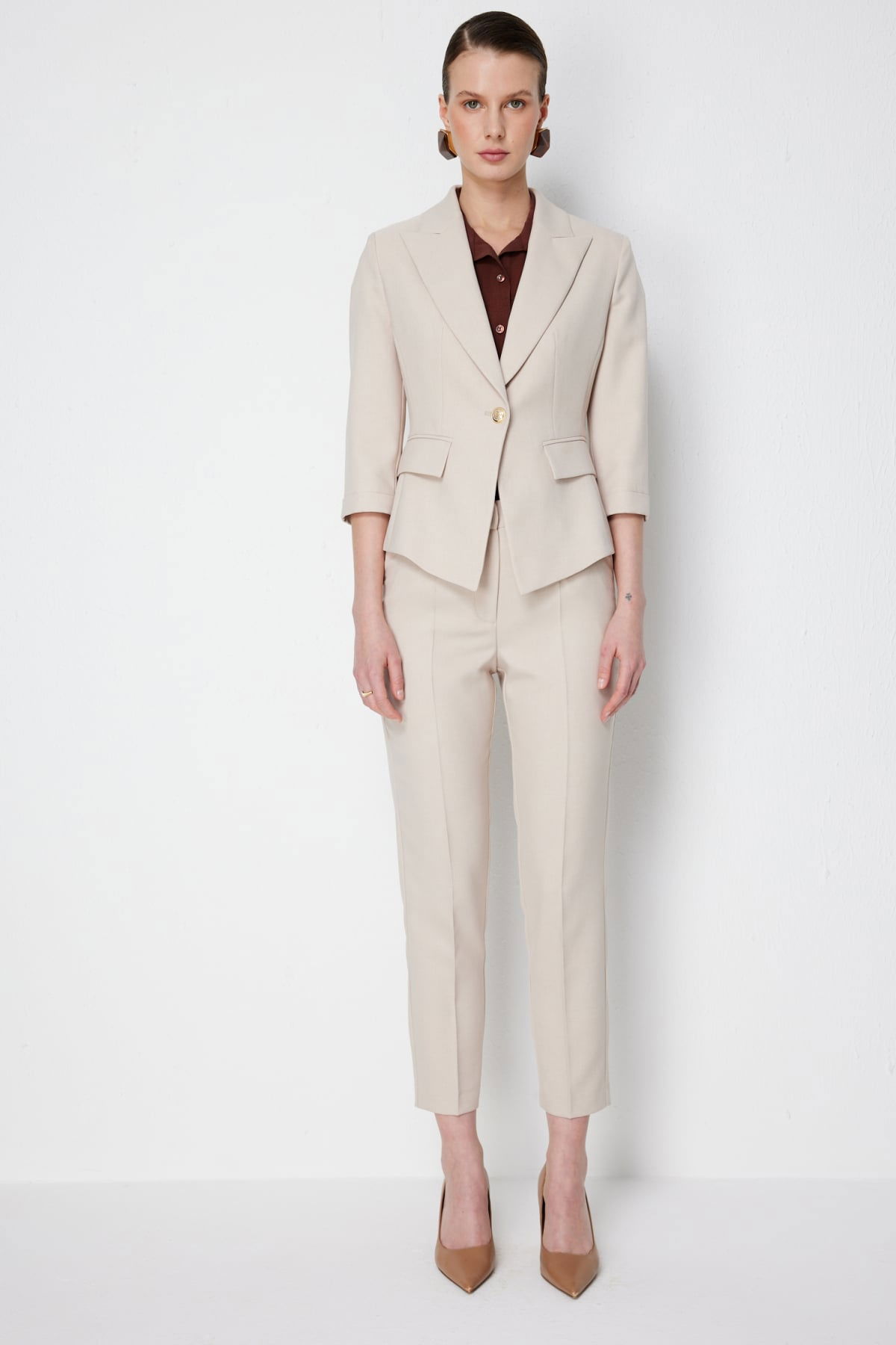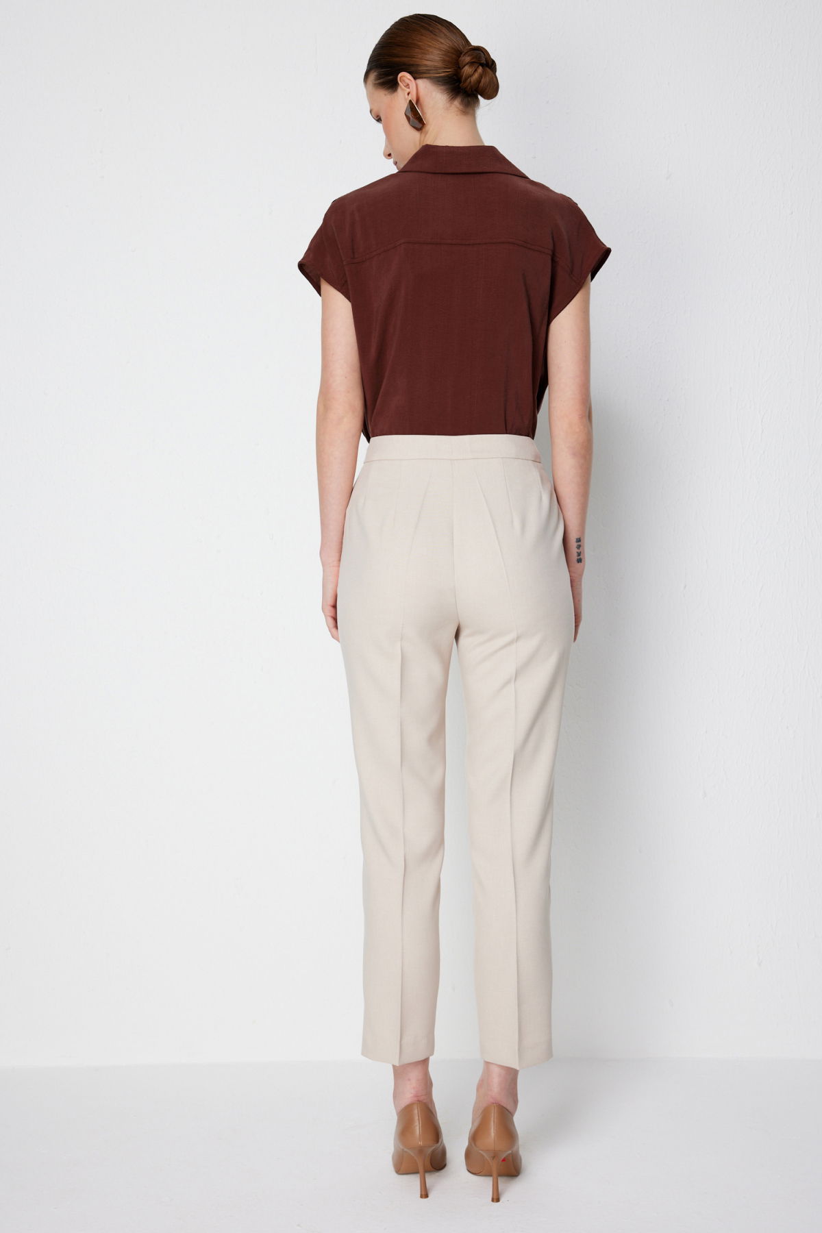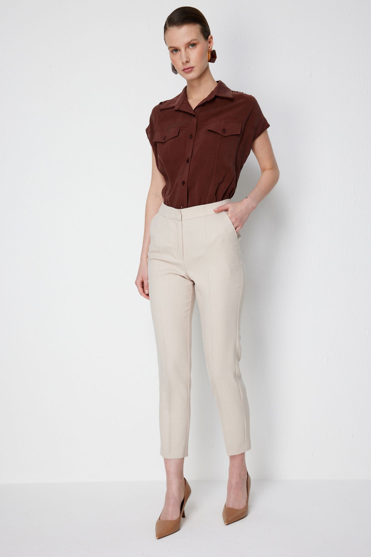 Detay: Polyester kumaştan üretilen, astarsız, normal bel, dar paça, fermuarlı ve yan cepli bu pantolon modeli tüm bu özellikleri ile modern ve kullanışlı bir görünüm sunar. Normal bel tasarımı günlük kullanımda rahatlık sağlarken dar paça formu şık ve zarif bir siluet oluşturur. Fermuarlı kapama şekli pratiklik sunarken yan cep detayı işlevsellik kazandırarak pantolonu hem estetik hem de fonksiyonel bir parça haline getirir;