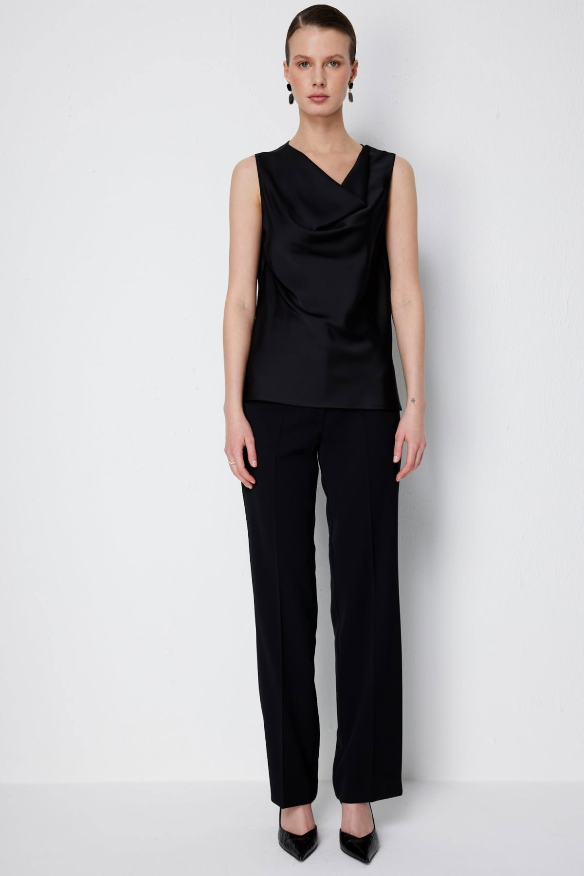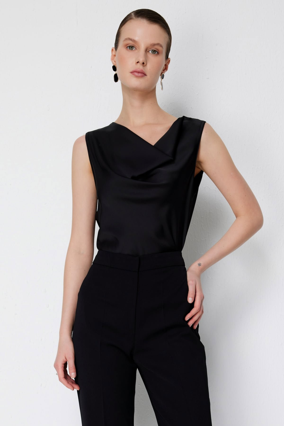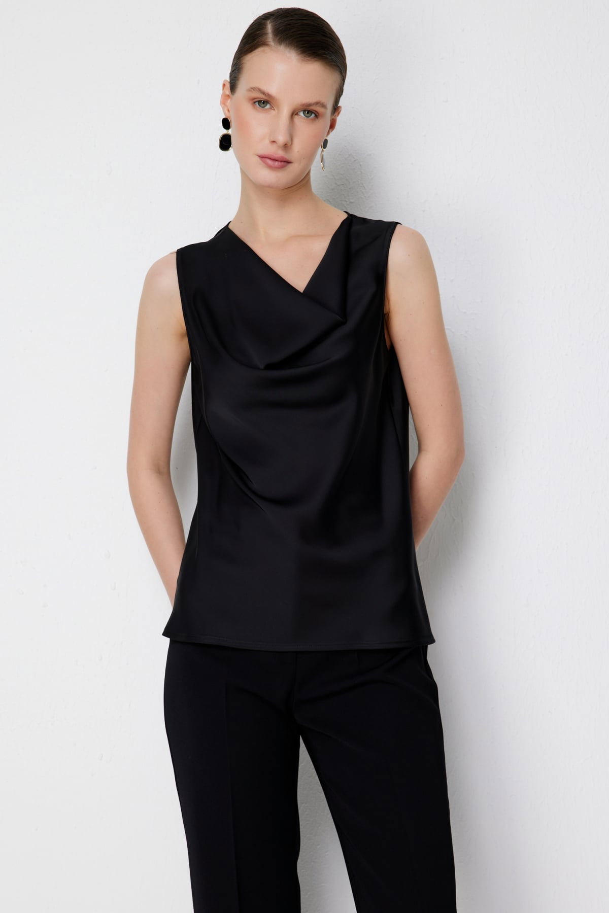 Ekol Kadın Degaje Yaka Kolsuz Bluz 2014 Siyah