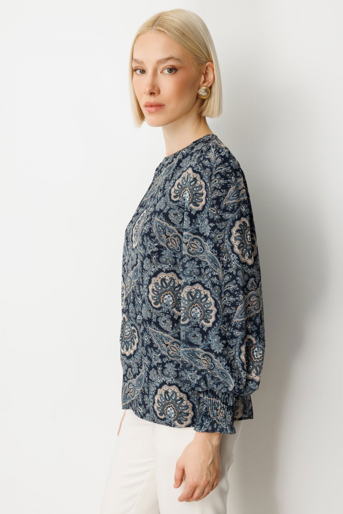 Detay: Bu bluz modeli, hafif ve zarif şifon kumaşıyla feminen bir görünüm sunarken, yarım astarlı yapısıyla rahat bir kullanım sağlar. Sıfır yaka tasarımı sade bir duruş sergilerken, uzun balon kol detaylarıyla romantik ve hacimli bir siluet oluşturur. Düğmeli kapama şekliyle klasik bir dokunuş kazanan bu bluz, özel günlerde ve günlük şıklıkta stilinizi tamamlayan zarif bir parçadır;