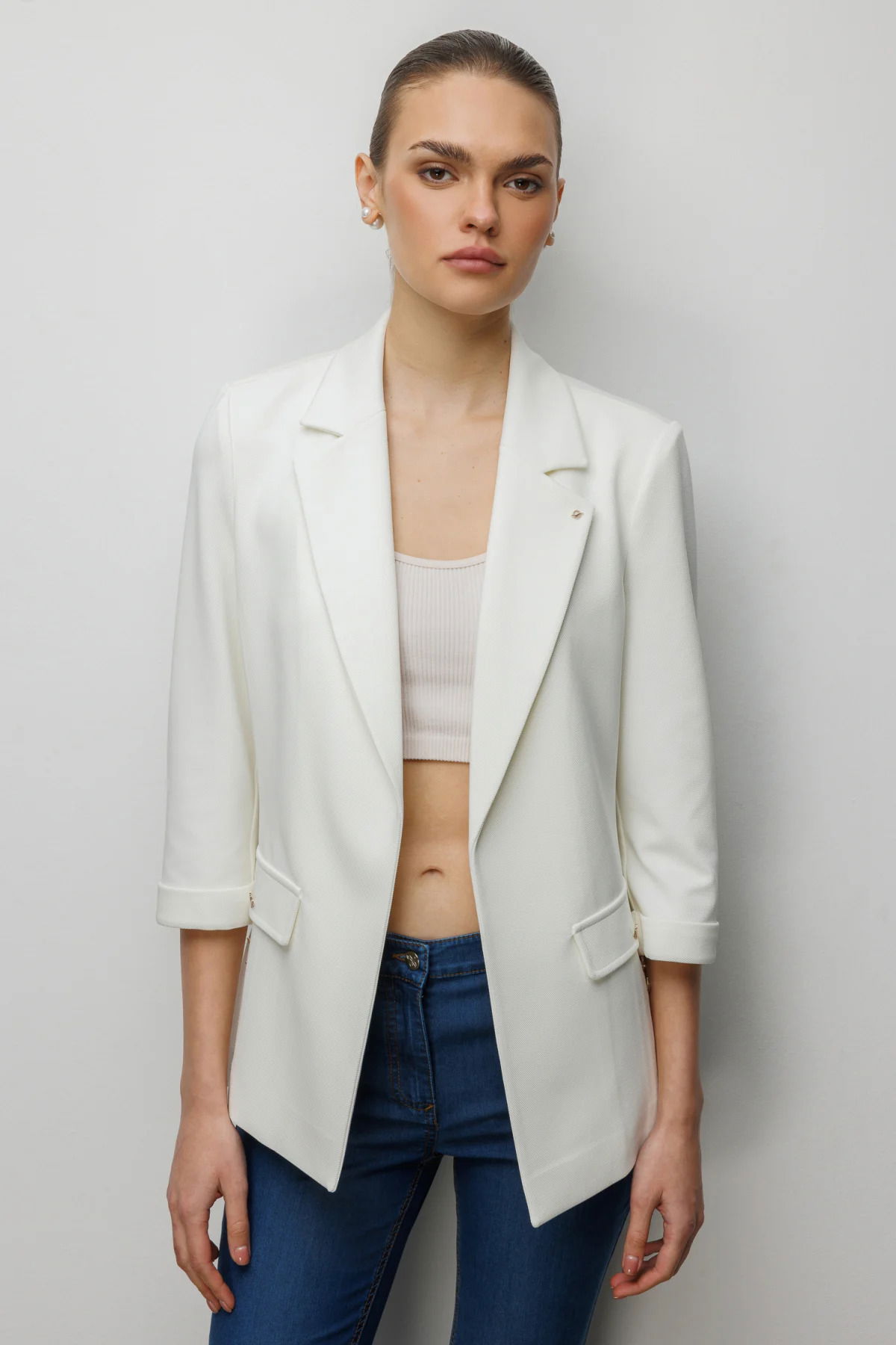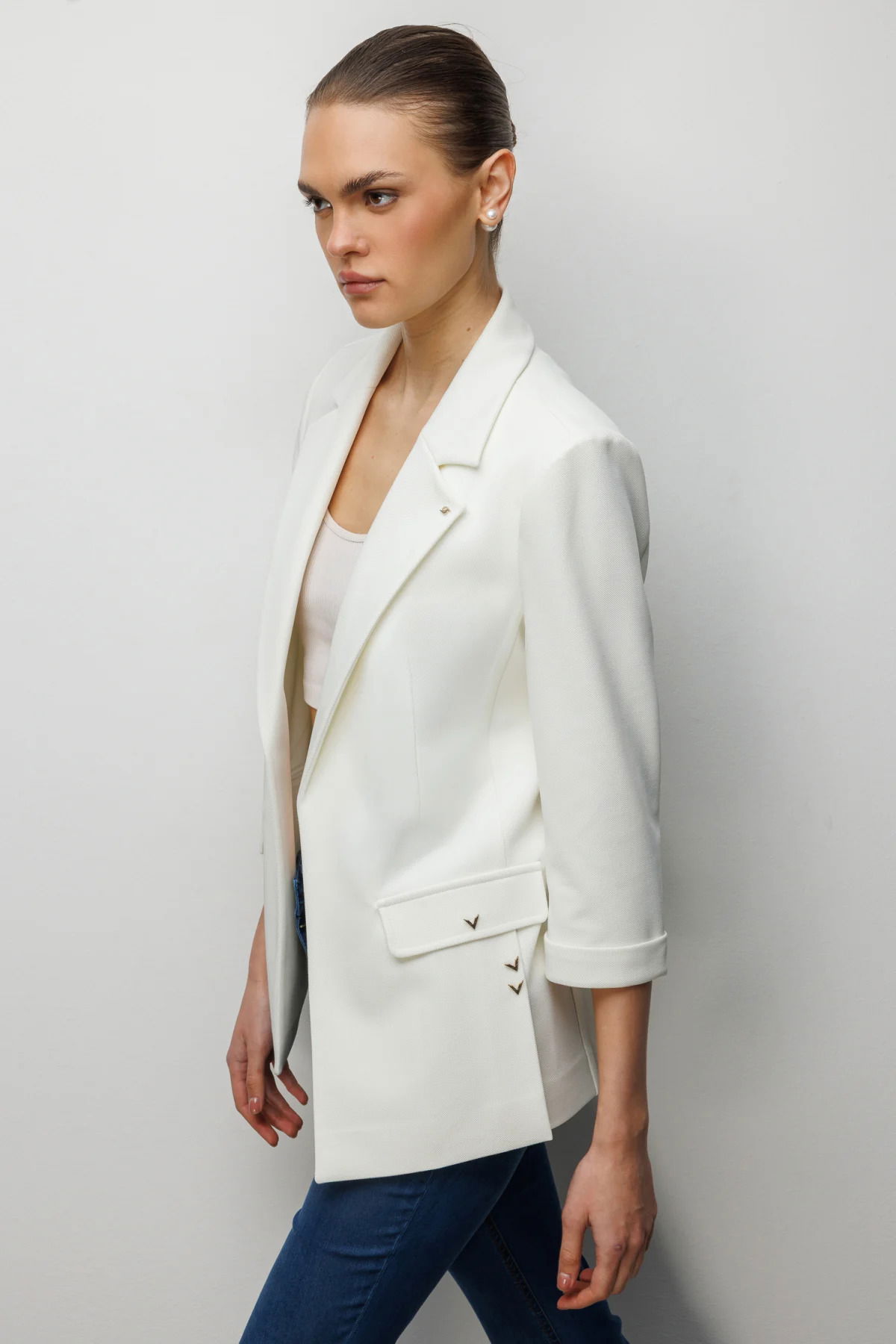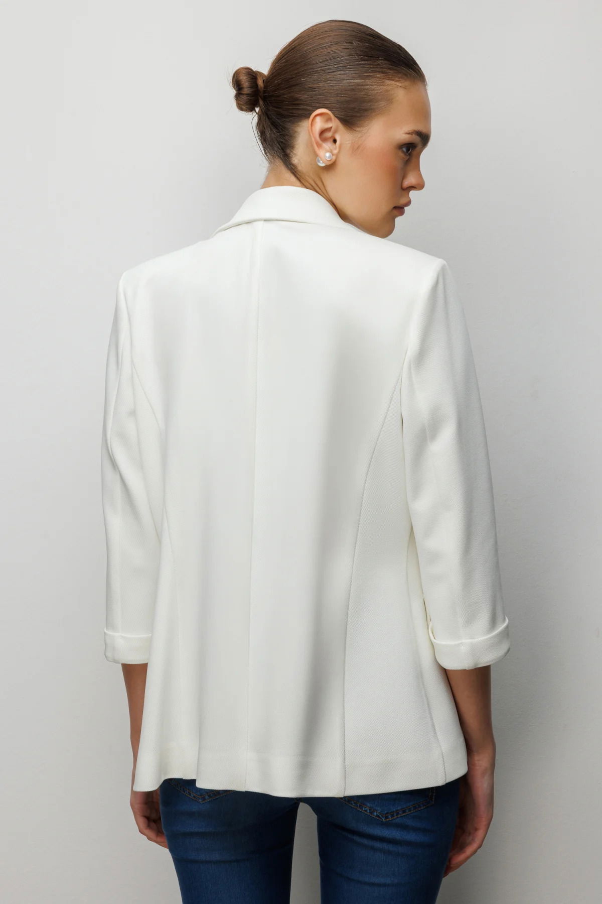 Detay: Polyester kumaştan üretilen bu cepsiz ceket, astarsız yapısı ile hafif ve rahat bir kullanım sunar. Ceket yaka ve vatkalı truvakar kol detayı, modern ve zarif bir görünüm kazandırırken kapamasız tasarımı minimalist bir şıklık sağlar. Günlük kombinlerden özel davetlere kadar her ortamda stilinizi tamamlayan özgün bir parçadır;