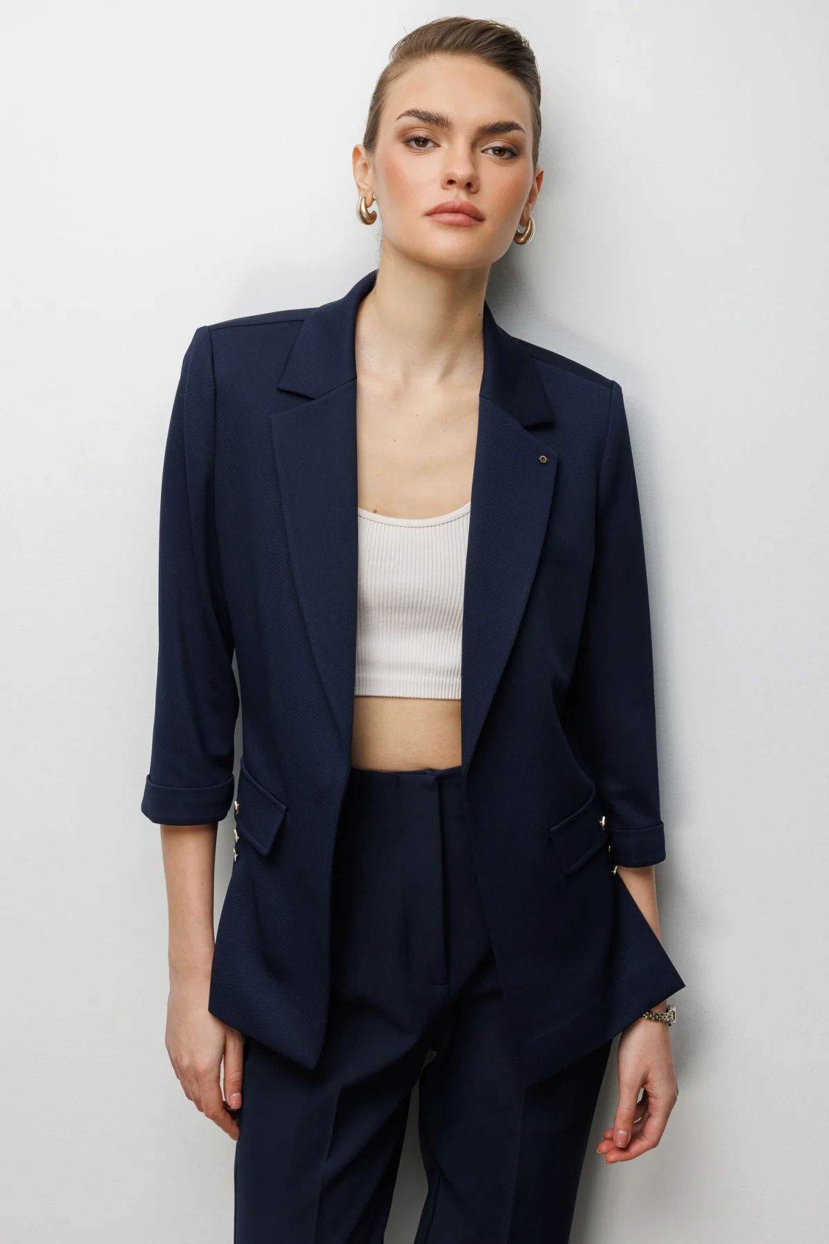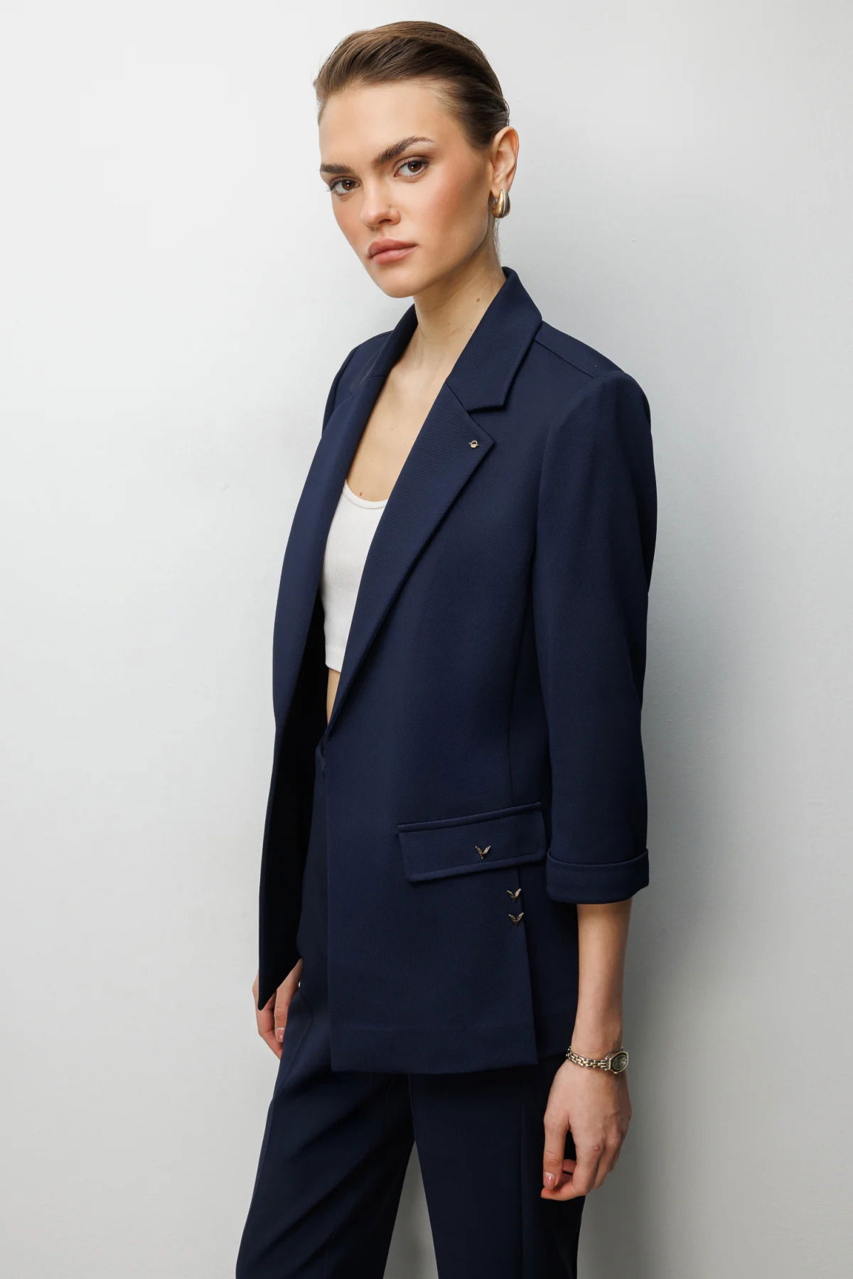 Ekol Kadın Duble Kol Yanları Yırtmaçlı Ceket 1064 Lacivert
