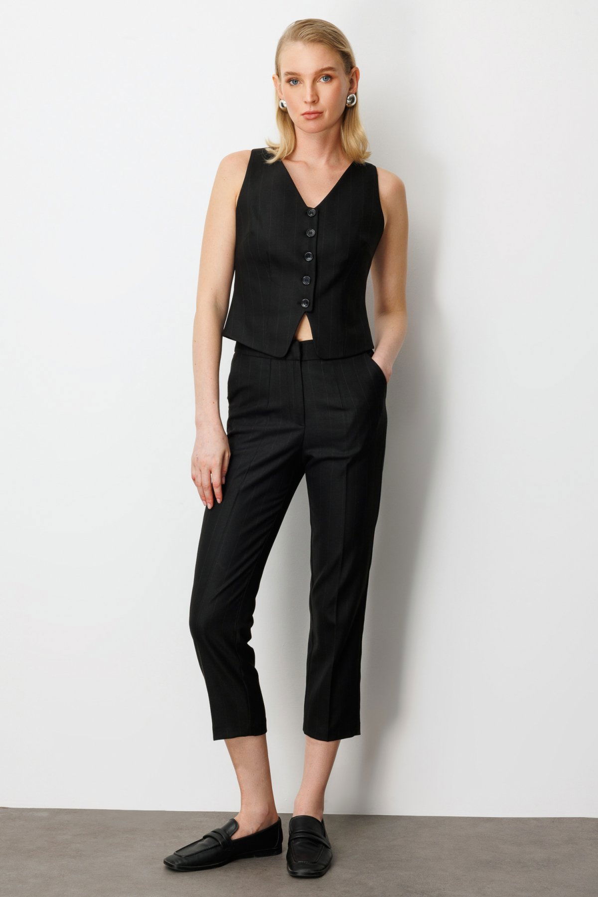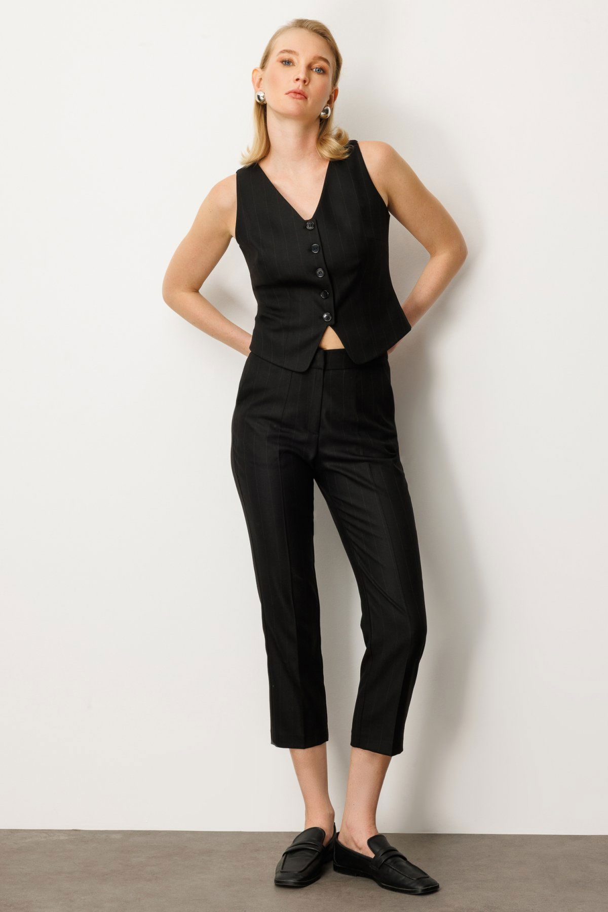 Detay: Dokuma kumaştan üretilmiş, astarsız ve lastikli bel tasarımıyla konforu ön plana çıkaran bu dar paça pantolon, fermuarlı kapama ve yan cep detaylarıyla hem şık hem de işlevsel bir kullanım sunar. Günlük stilinize modern bir dokunuş katarken, esnek yapısıyla hareket özgürlüğü sağlar. Hem casual kombinlerde hem de ofis stilinde rahatlıkla tercih edilebilecek bu pantolon, gardırobunuzun tamamlayıcı parçalarından biri olmaya adaydır;