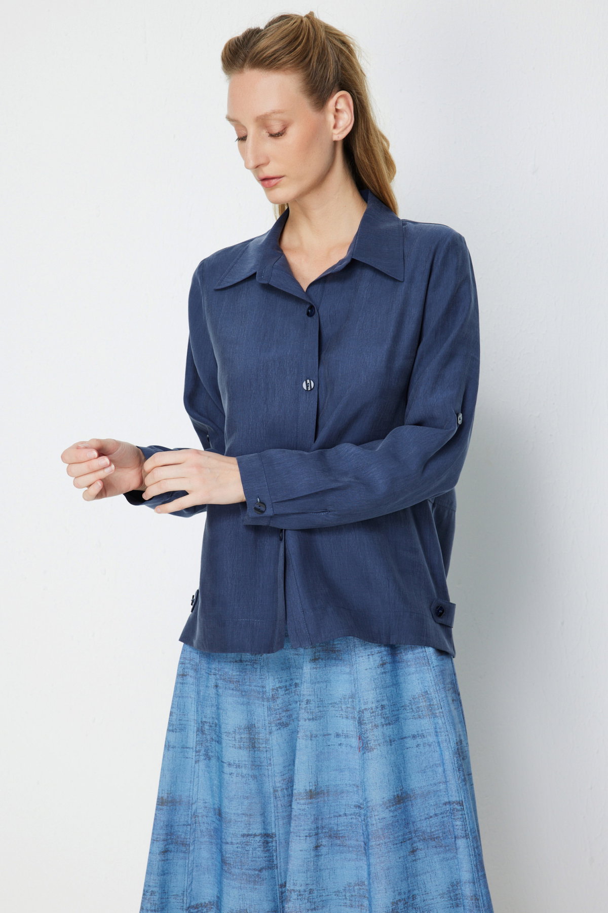 Detay: Polyester kumaştan üretilen, astarsız, polo yaka ve uzun kollu bu düğmeli gömlek zarif bir tasarıma sahiptir. Polyester kumaşın dayanıklı ve kolay bakım özellikleri uzun süreli kullanım avantajı sağlarken, astarsız yapısı hafif ve rahat bir kullanım sunar. Polo yaka detayı sportif ve modern bir görünüm kazandırırken, uzun kollu tasarım mevsim geçişlerinde şıklığı tamamlar. Düğmeli kapama şekli pratiklik sunarken, fleto cepli tasarım ise minimalist ve sofistike bir duruş ortaya koyar;