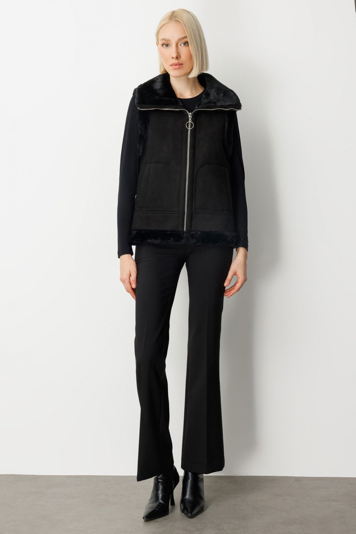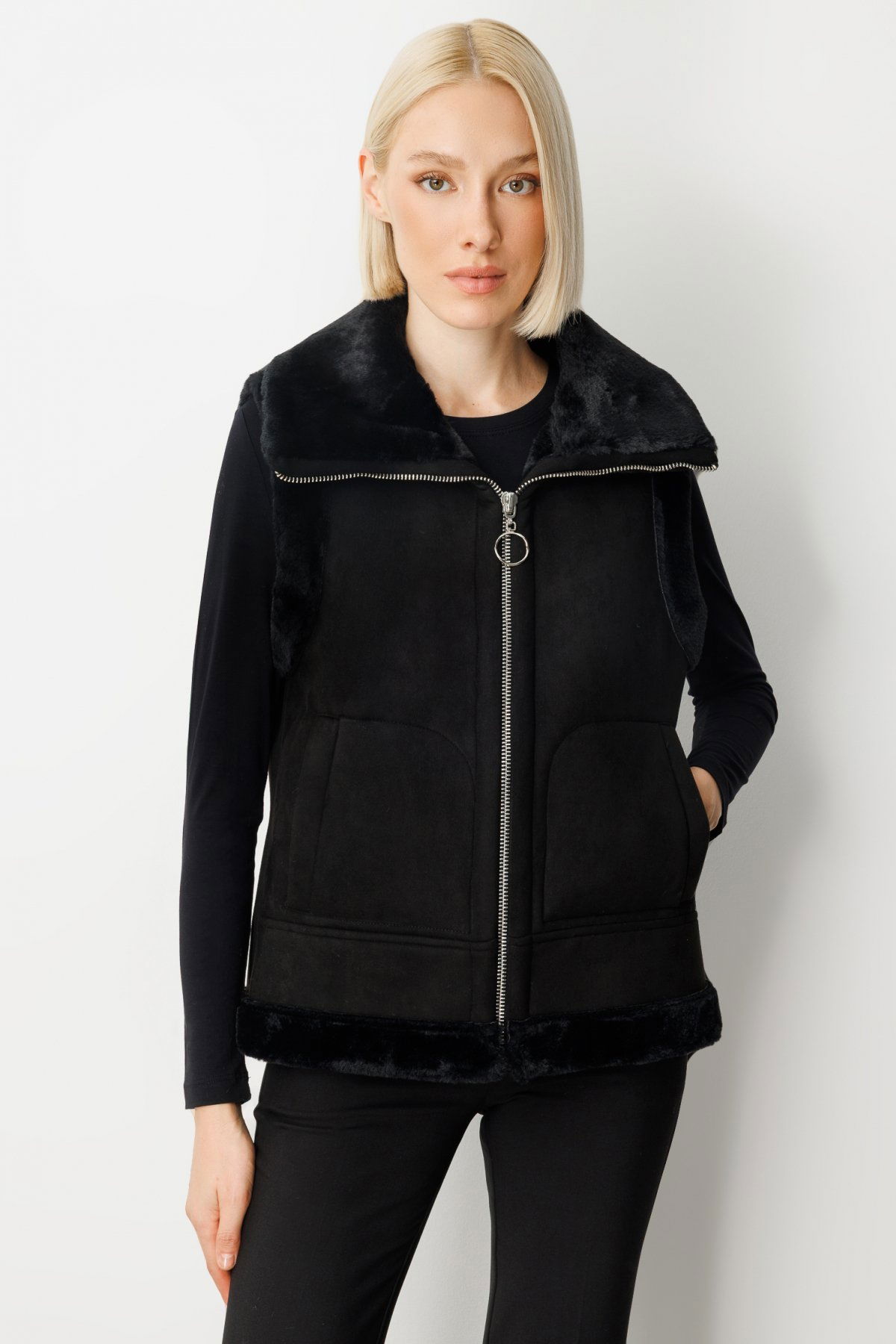 Ekol Kadın İçi Peluşlu Güderi Yelek 8501 Siyah