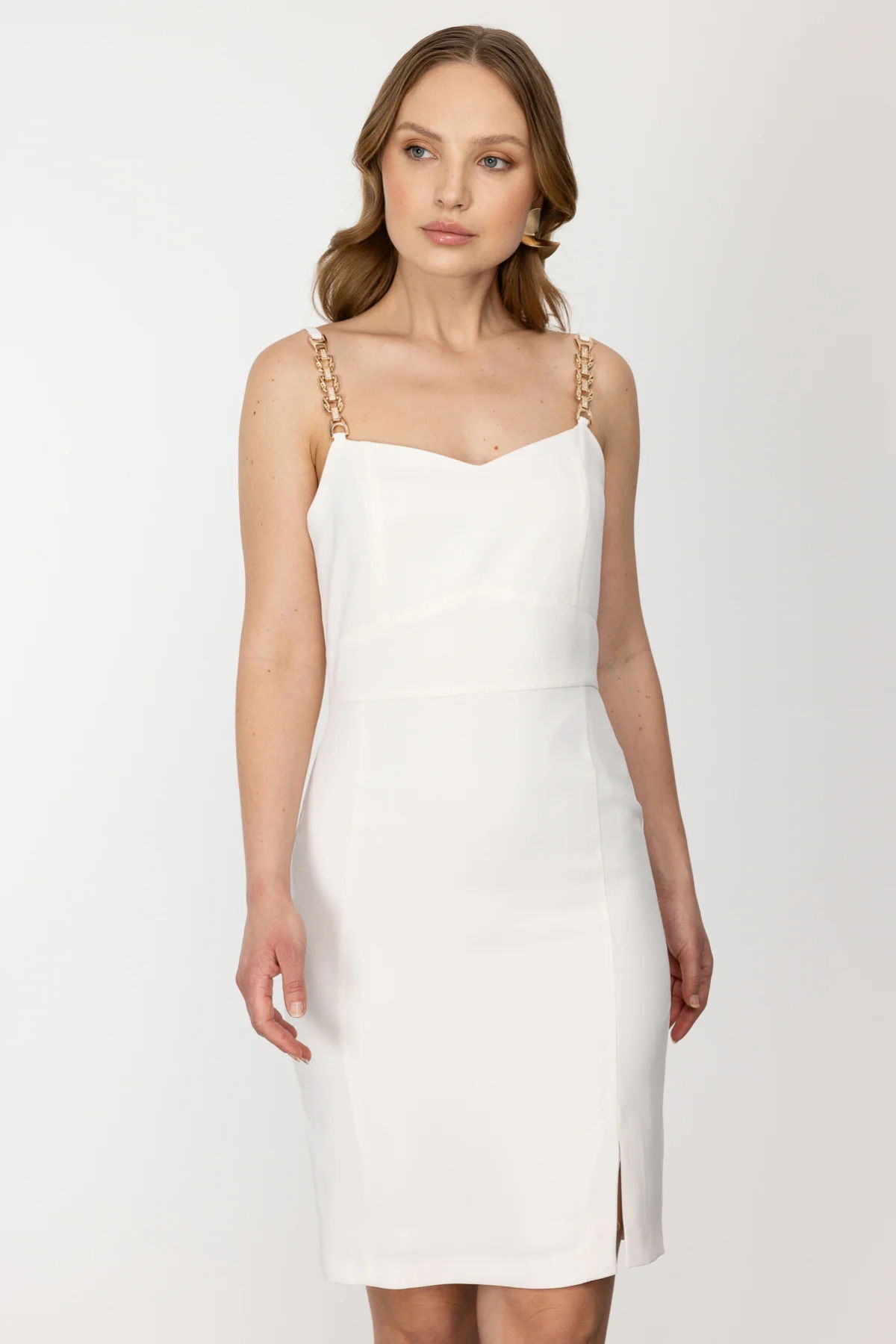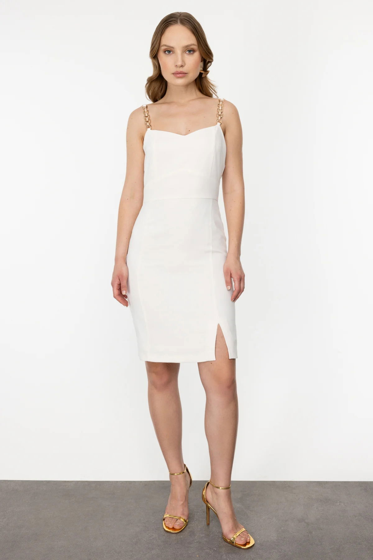 Detay: Taşlı ip askılı, küçük yırtmaçlı, astarlı elbise;