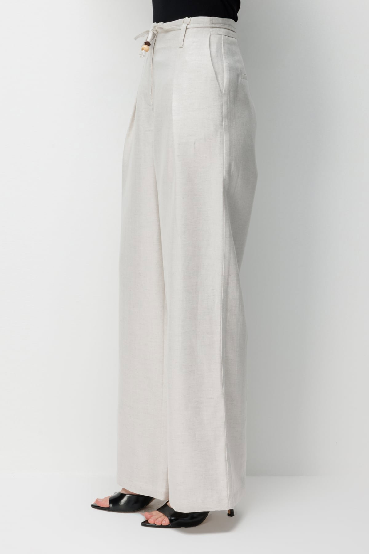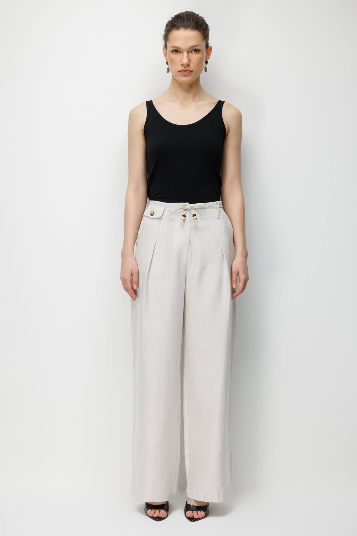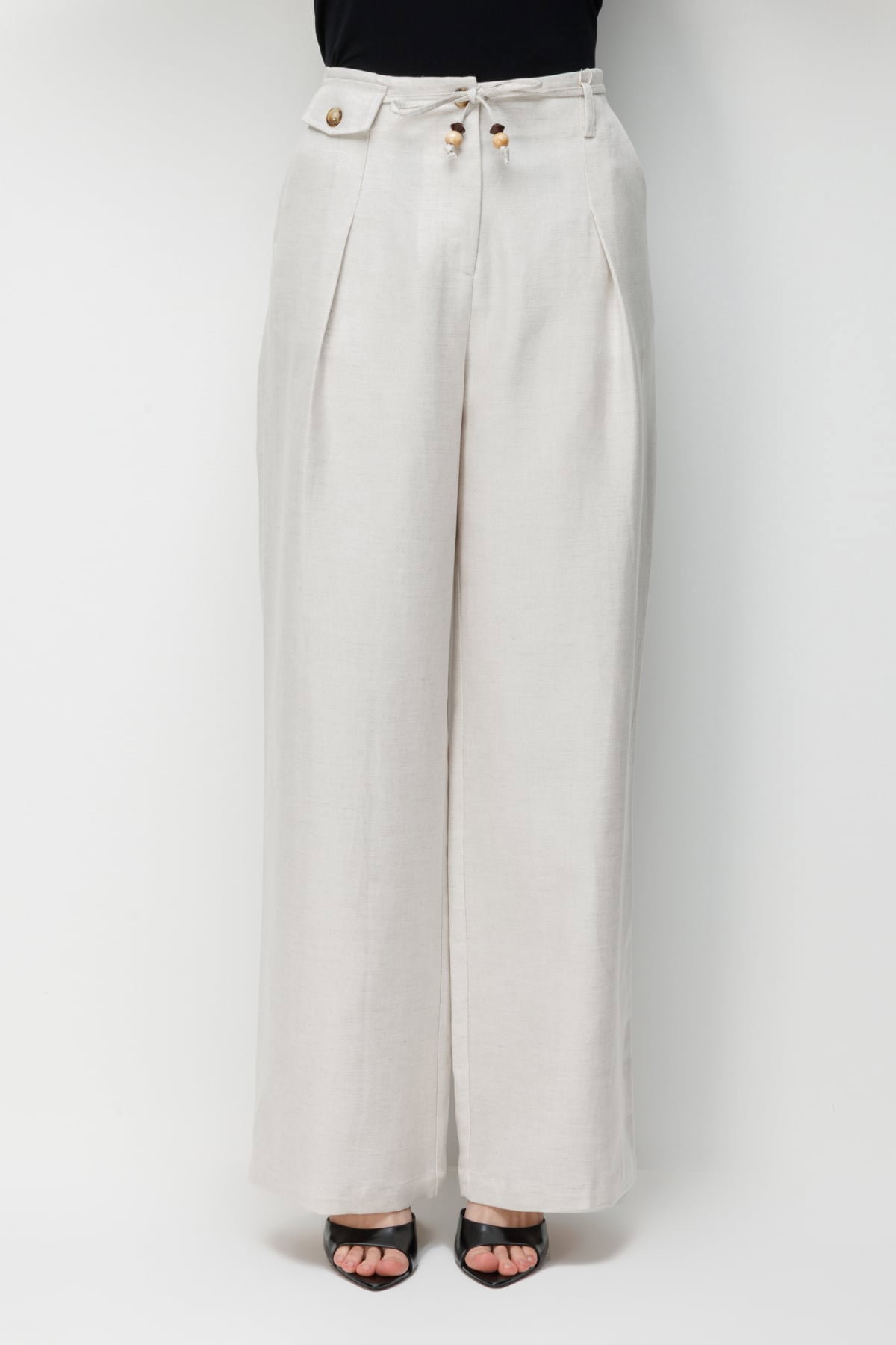 Ekol Kadın İp Kemerli Bol Paça Kumaş Pantolon 2426 Naturel
