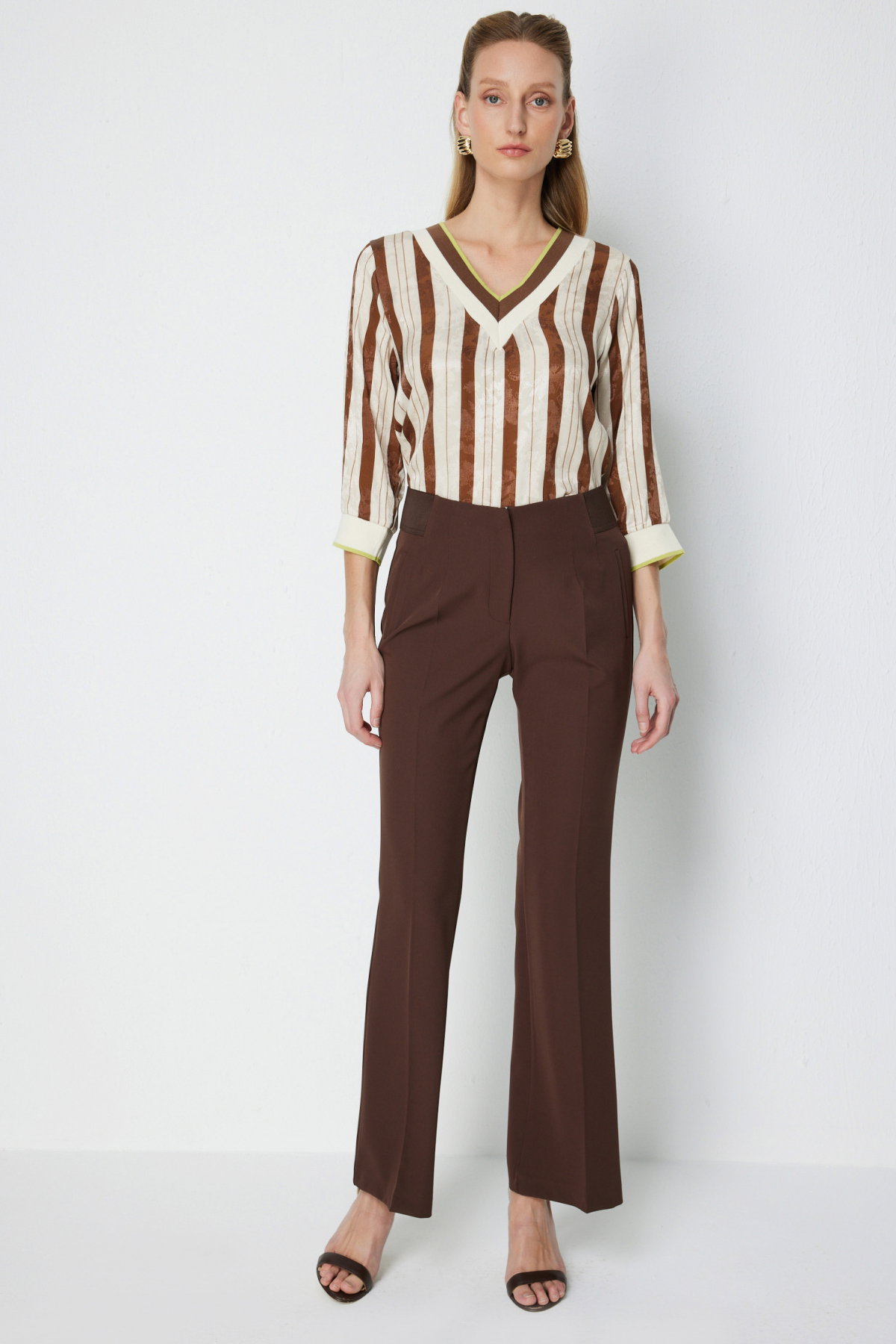 Ekol Kadın İspanyol Paça Lastikli Pantolon 4162 Kakao