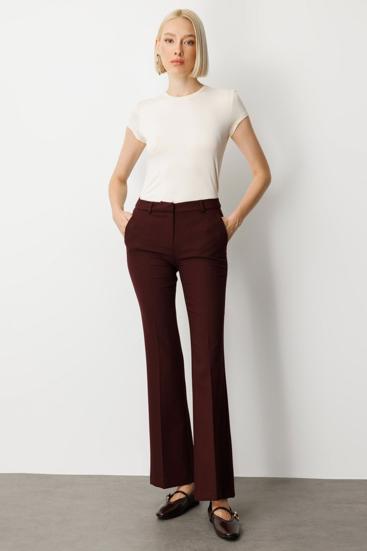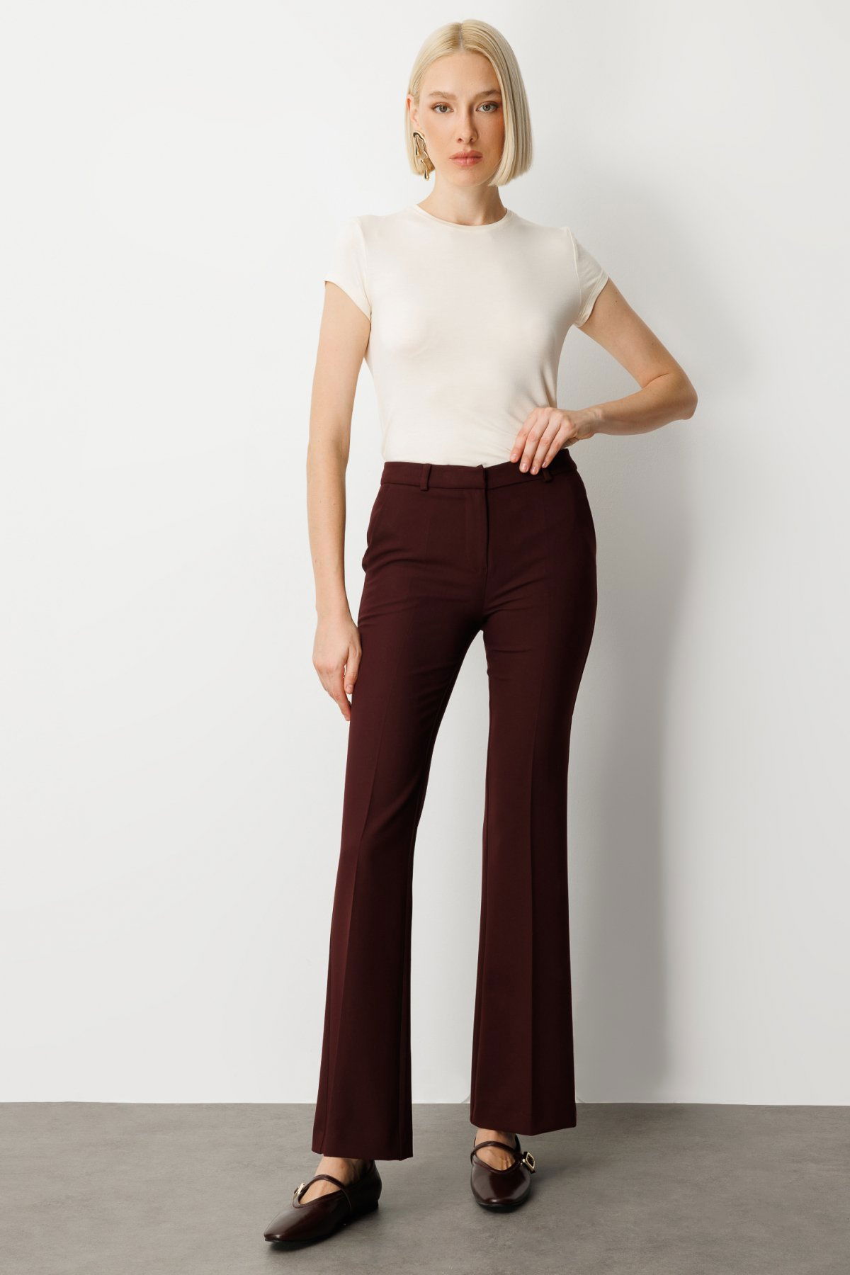 Detay: Bu pantolon modeli, dokuma kumaş tipiyle hem dayanıklılık hem de zarif bir görünüm sunar. Normal bel kesimi klasik ve dengeli bir duruş sağlarken, İspanyol paça tasarımıyla nostaljik ve şık bir siluet oluşturur. Fermuarlı kapama şekli pratiklik kazandırırken, yan cepler hem işlevsel hem de tasarımı tamamlayan detaylardır. Hem günlük kombinlerde hem de özel günlerde rahatlıkla tercih edilebilecek, stil sahibi bir parçadır;