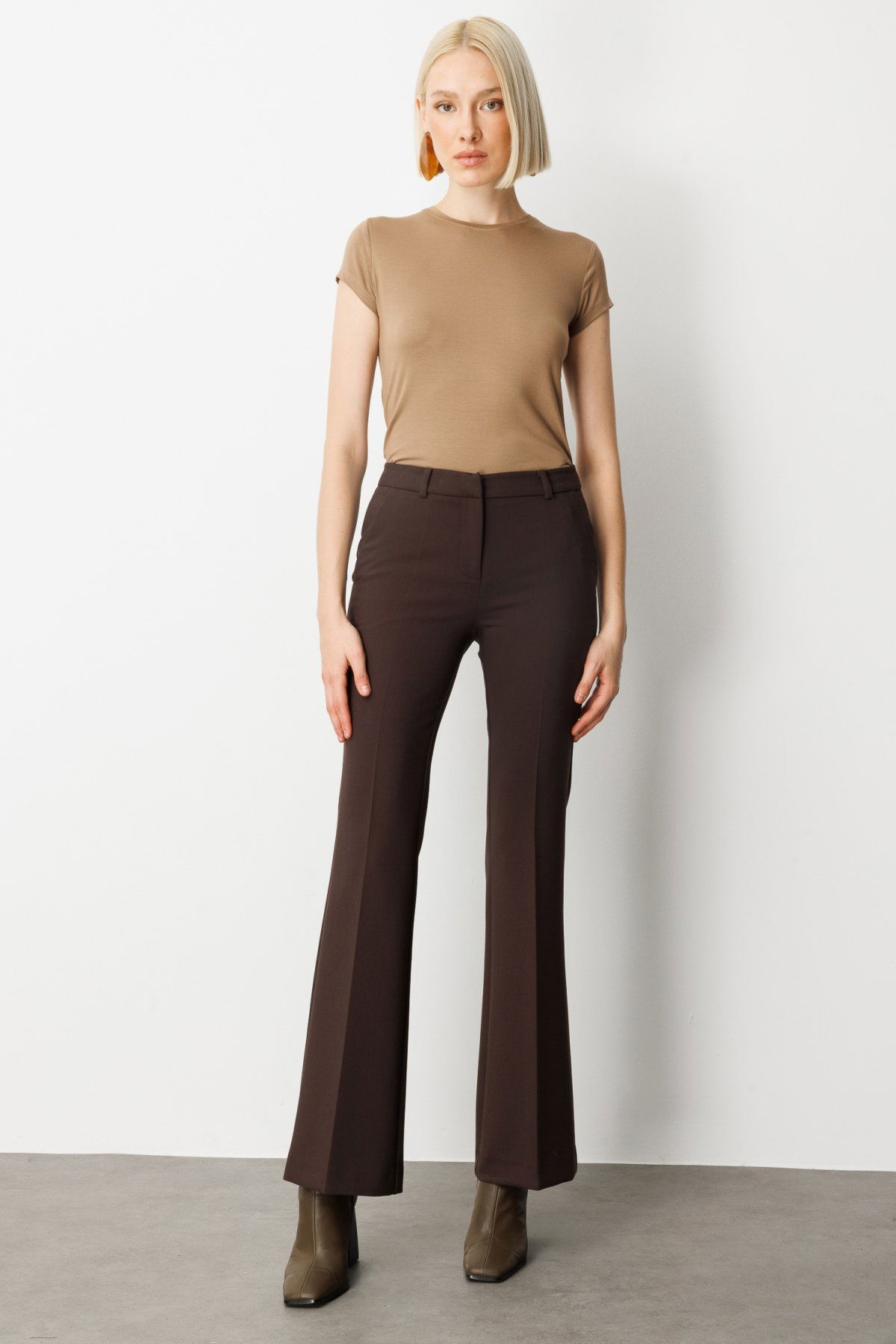 Detay: Bu pantolon modeli, dokuma kumaş tipiyle hem dayanıklılık hem de zarif bir görünüm sunar. Normal bel kesimi klasik ve dengeli bir duruş sağlarken, İspanyol paça tasarımıyla nostaljik ve şık bir siluet oluşturur. Fermuarlı kapama şekli pratiklik kazandırırken, yan cepler hem işlevsel hem de tasarımı tamamlayan detaylardır. Hem günlük kombinlerde hem de özel günlerde rahatlıkla tercih edilebilecek, stil sahibi bir parçadır;