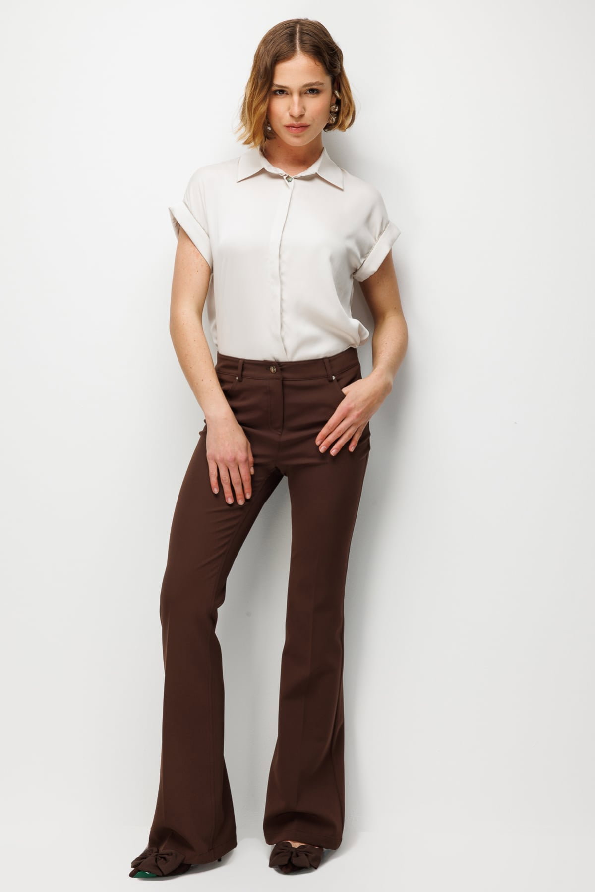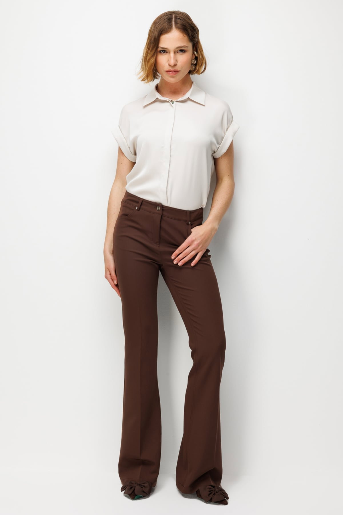 Ekol Kadın İspanyol Paça Yüksek Bel Pantolon 4064 Kakao