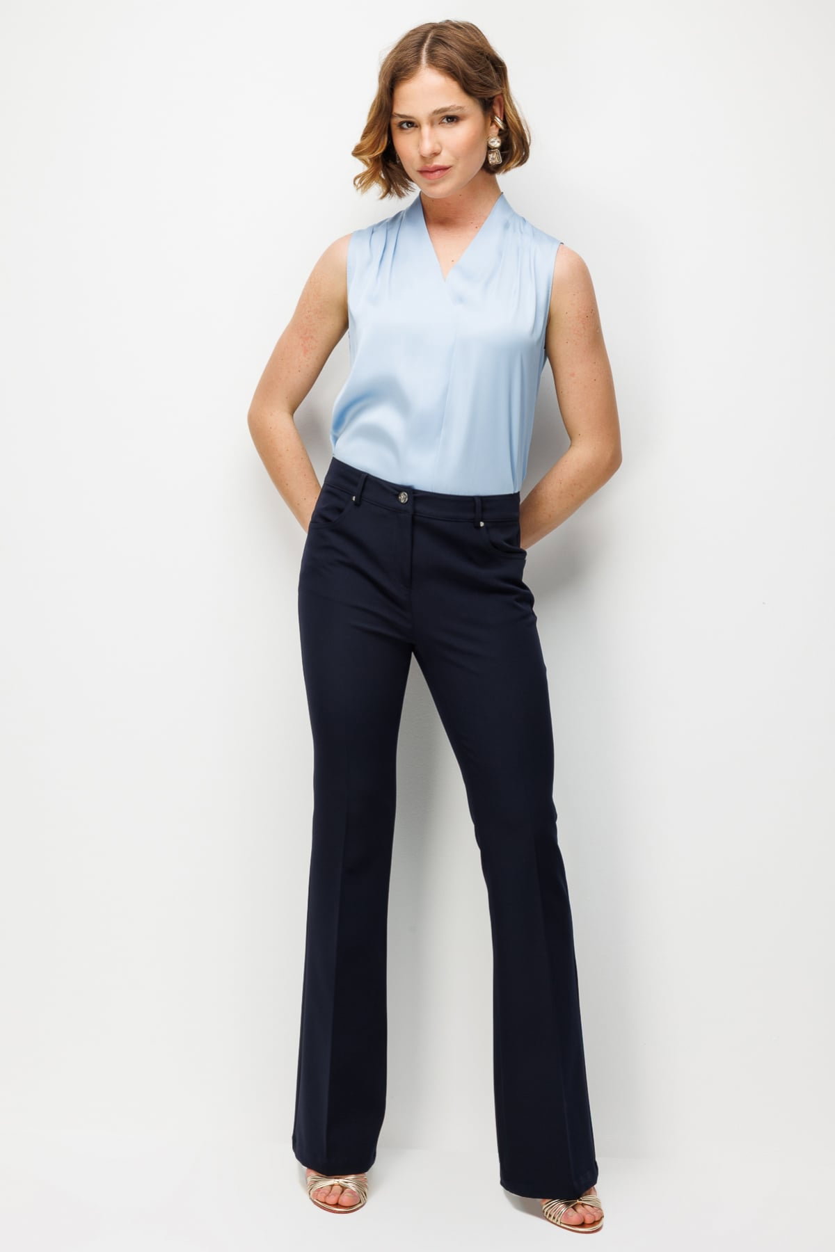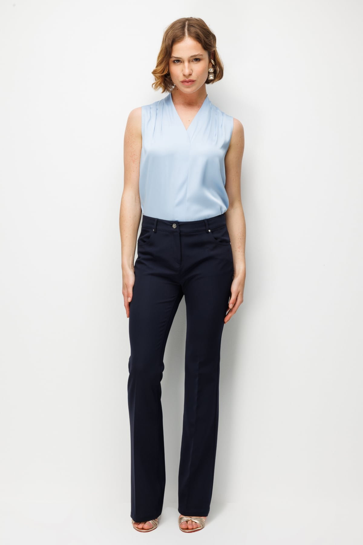 Detay: Dokuma kumaş, astarsız, yüksek bel, İspanyol paça, fermuarlı kapama ve yan cepli tasarımıyla öne çıkan bu pantolon zarif bir şıklık sunuyor. Yüksek bel formu bel hattını vurgulayarak modern bir görünüm sağlarken, İspanyol paça tasarımı feminen ve zarif bir duruş kazandırıyor. Yan cepler pratiklik katarken, dokuma kumaşın hafif ve dayanıklı yapısı sayesinde hem günlük kombinlerde hem de özel davetlerde çok yönlü bir tercih haline geliyor;