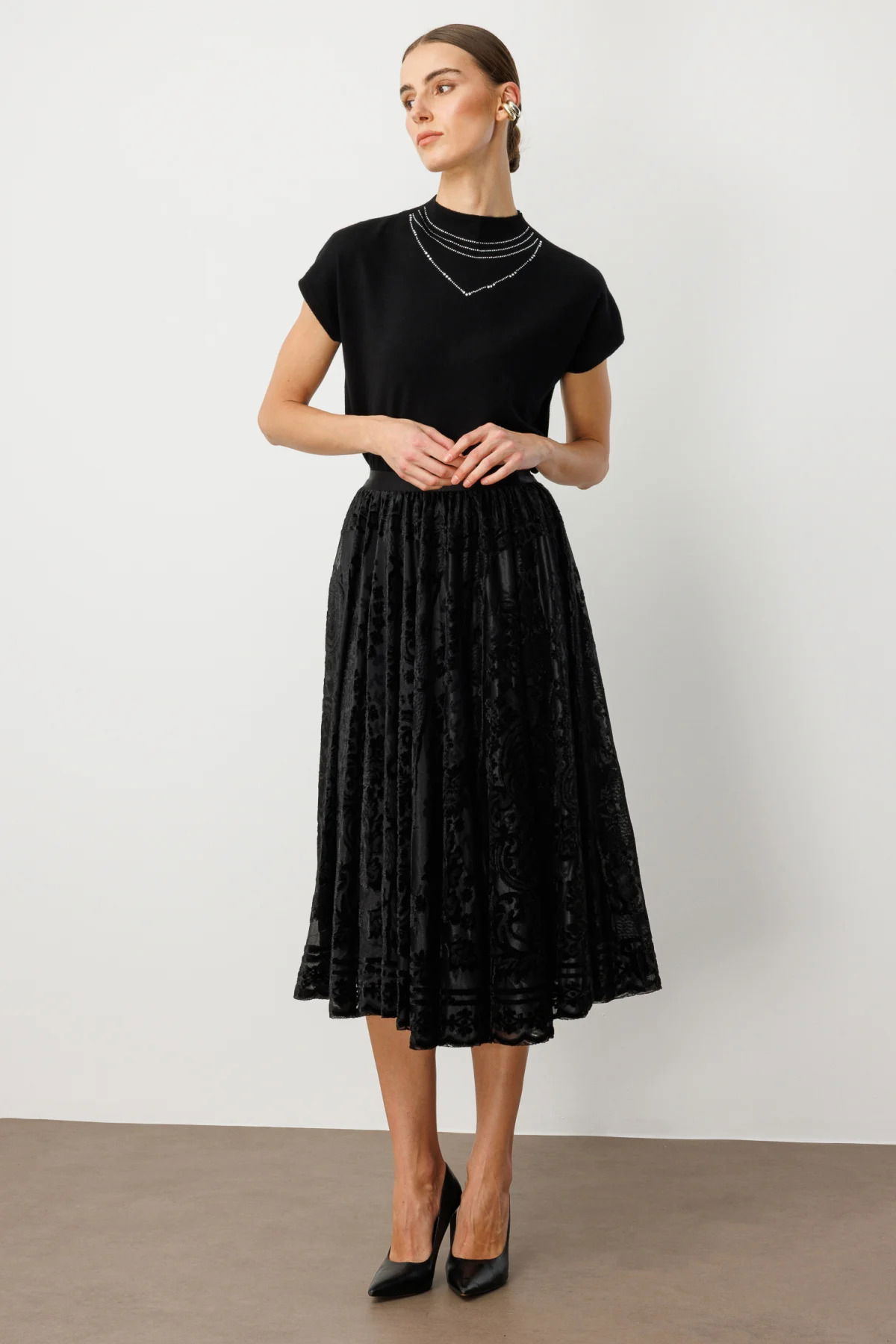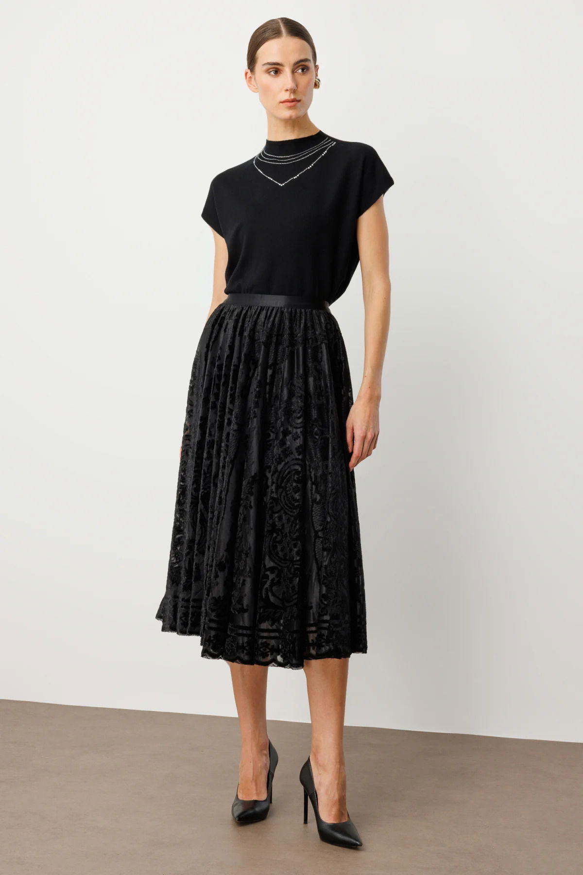 Detay: Dokuma kumaştan üretilen, astarlı yapısı ve lastikli beliyle konfor sunan maxi etek; zarif duruşu ve rahat kullanımıyla günlük kombinlerden özel davetlere kadar şıklığınızı tamamlar. Uzun formu sayesinde feminen bir siluet oluştururken, astarlı tasarımı ekstra konfor ve özgür hareket imkânı sağlar;