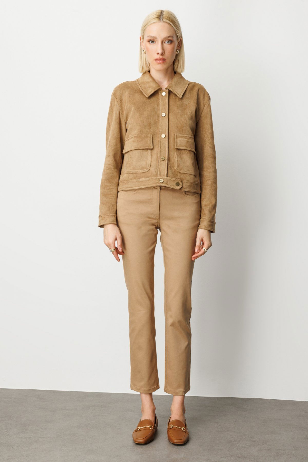 Detay: Bu astarsız dokuma kadın mont, polo yaka ve uzun kollu tasarımıyla hem şıklığı hem de konforu bir araya getiriyor. Çıt çıt kapama sistemi sayesinde pratik kullanım sunarken, kapaklı cepleriyle fonksiyonelliği ön plana çıkarıyor. Mevsim geçişlerinde hafif yapısıyla öne çıkan bu mont, modern şehirli kadının stilini tamamlayan zarif bir dış giyim seçeneğidir;
