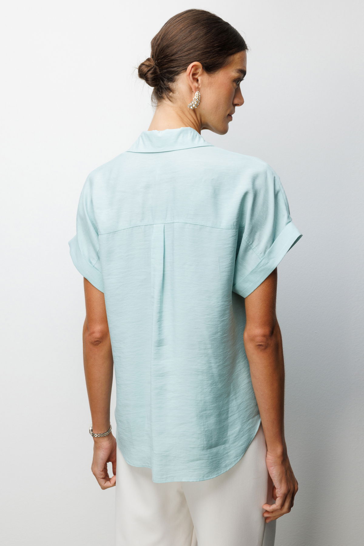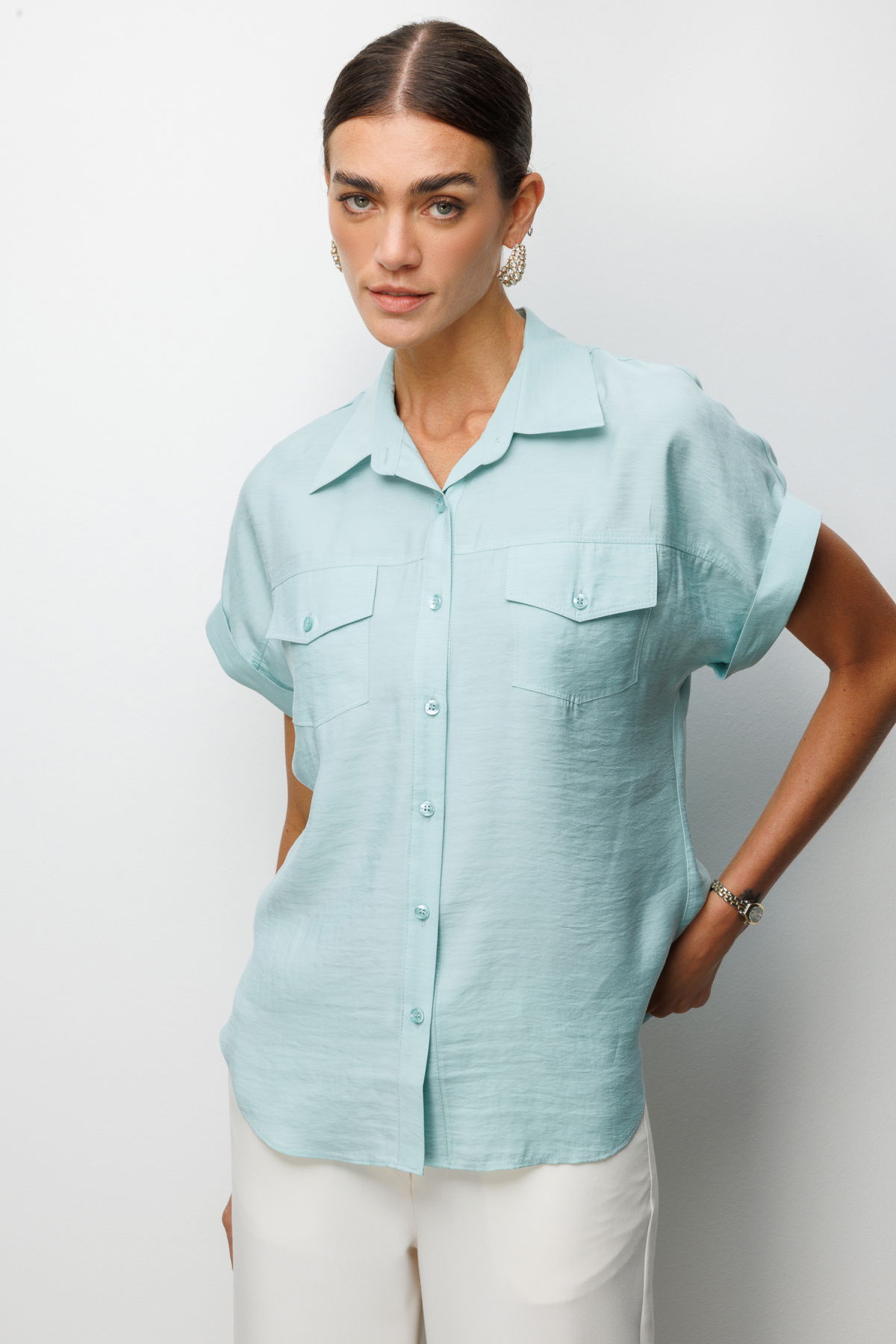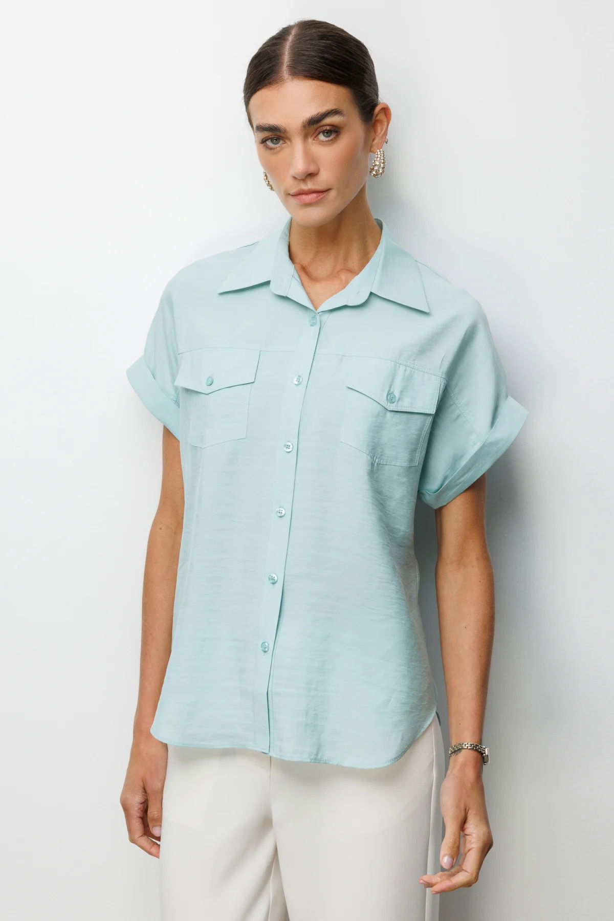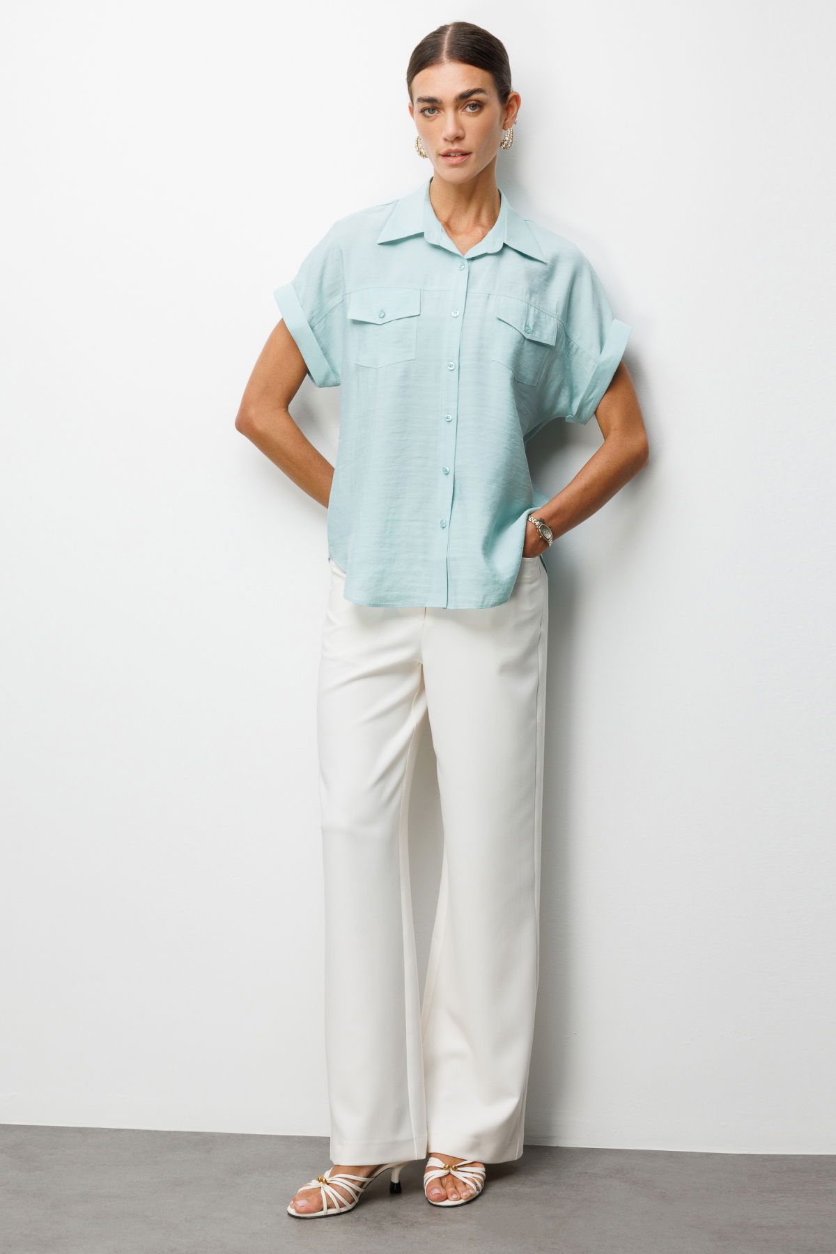 Ekol Kadın Kapak Cepli Kısa Kollu Gömlek 2088 Mint