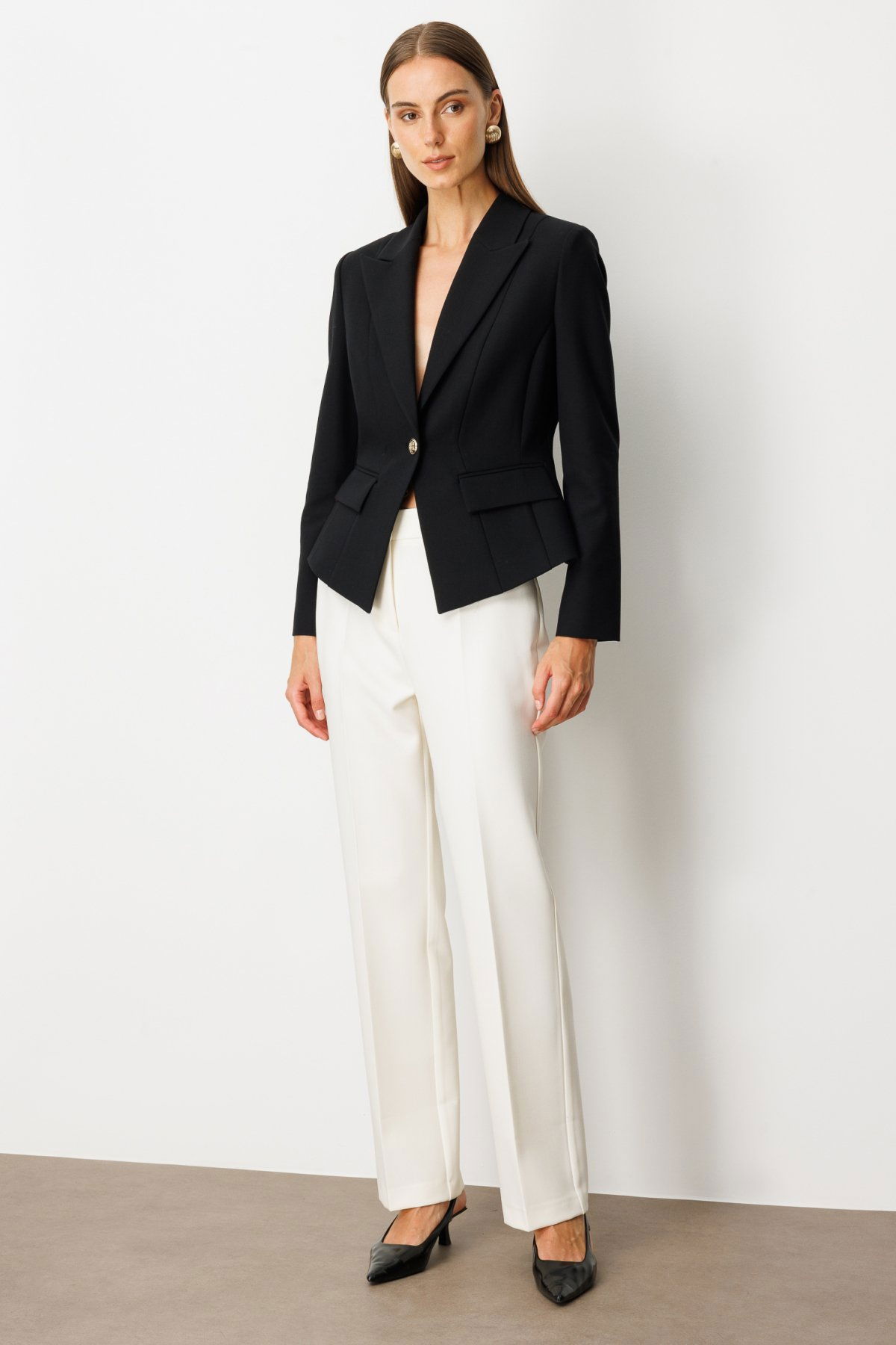 Detay: Dokuma kumaştan üretilmiş, astarlı ve uzun kollu bu ceket; ceket yaka tasarımıyla klasik şıklığı modern detaylarla buluşturur. Düğmeli kapama şekli ve kapaklı cep tasarımı hem estetik hem de fonksiyonel bir kullanım sunar. Astarlı iç yapısı sayesinde serin havalarda konfor sağlayan bu ceket, iş hayatından özel davetlere kadar stil sahibi kombinlerin tamamlayıcısıdır;