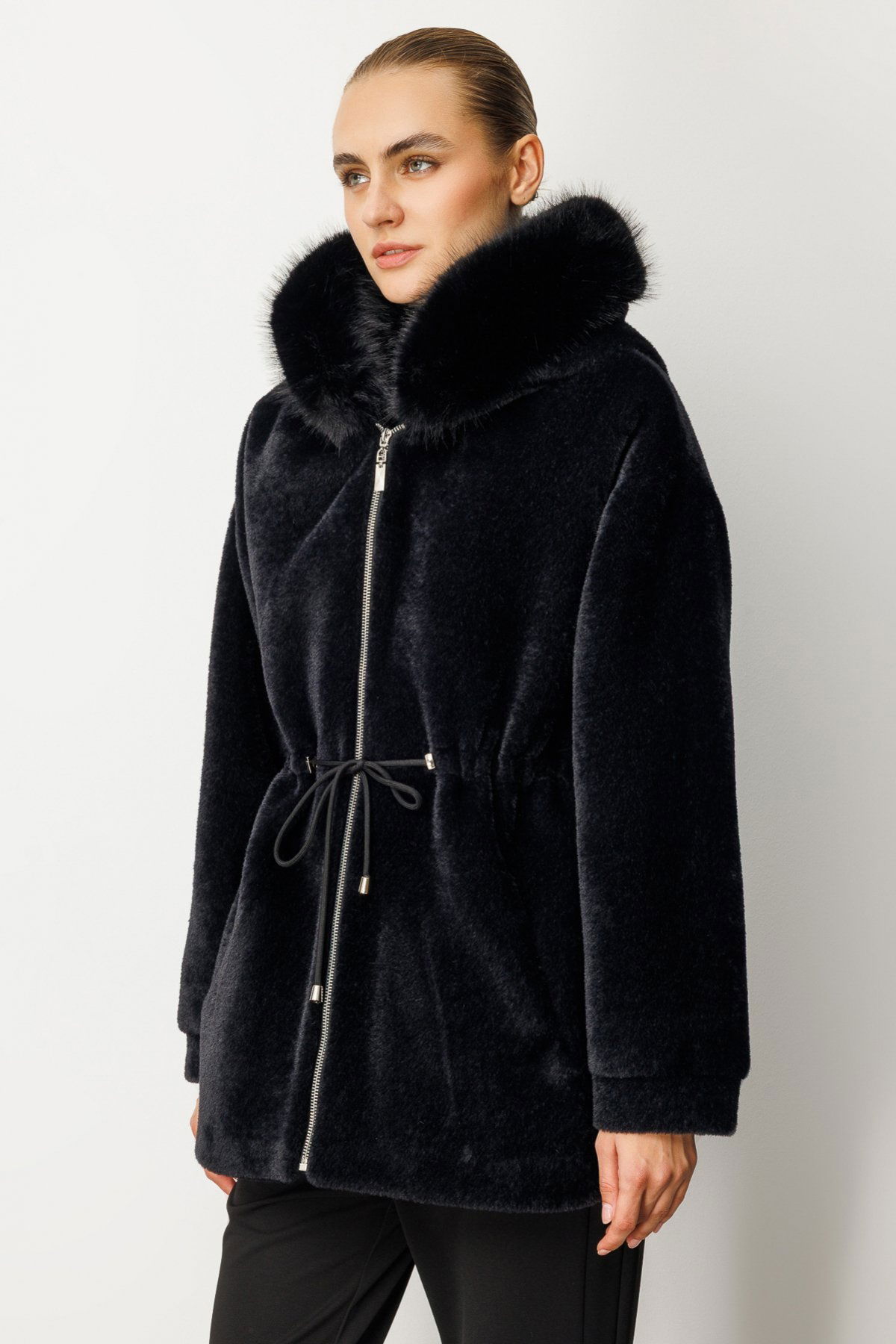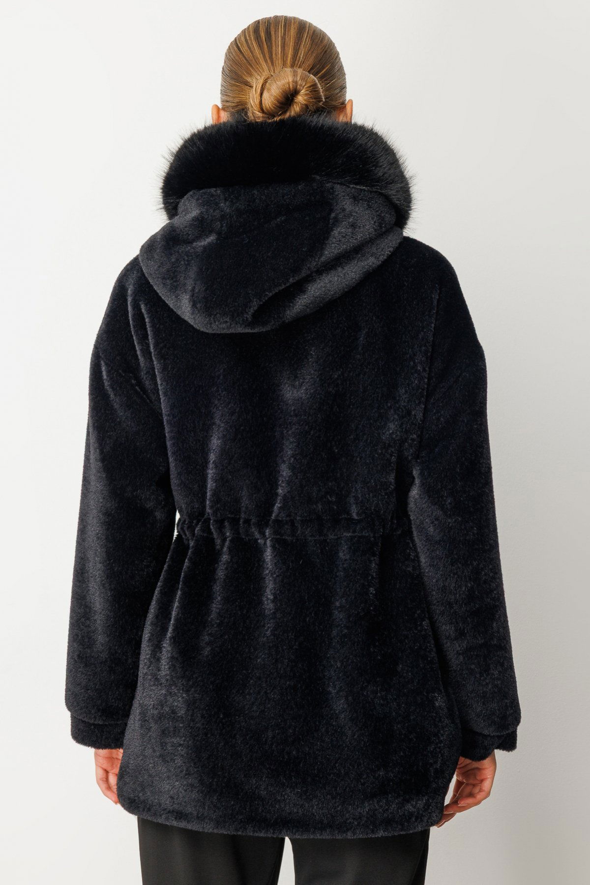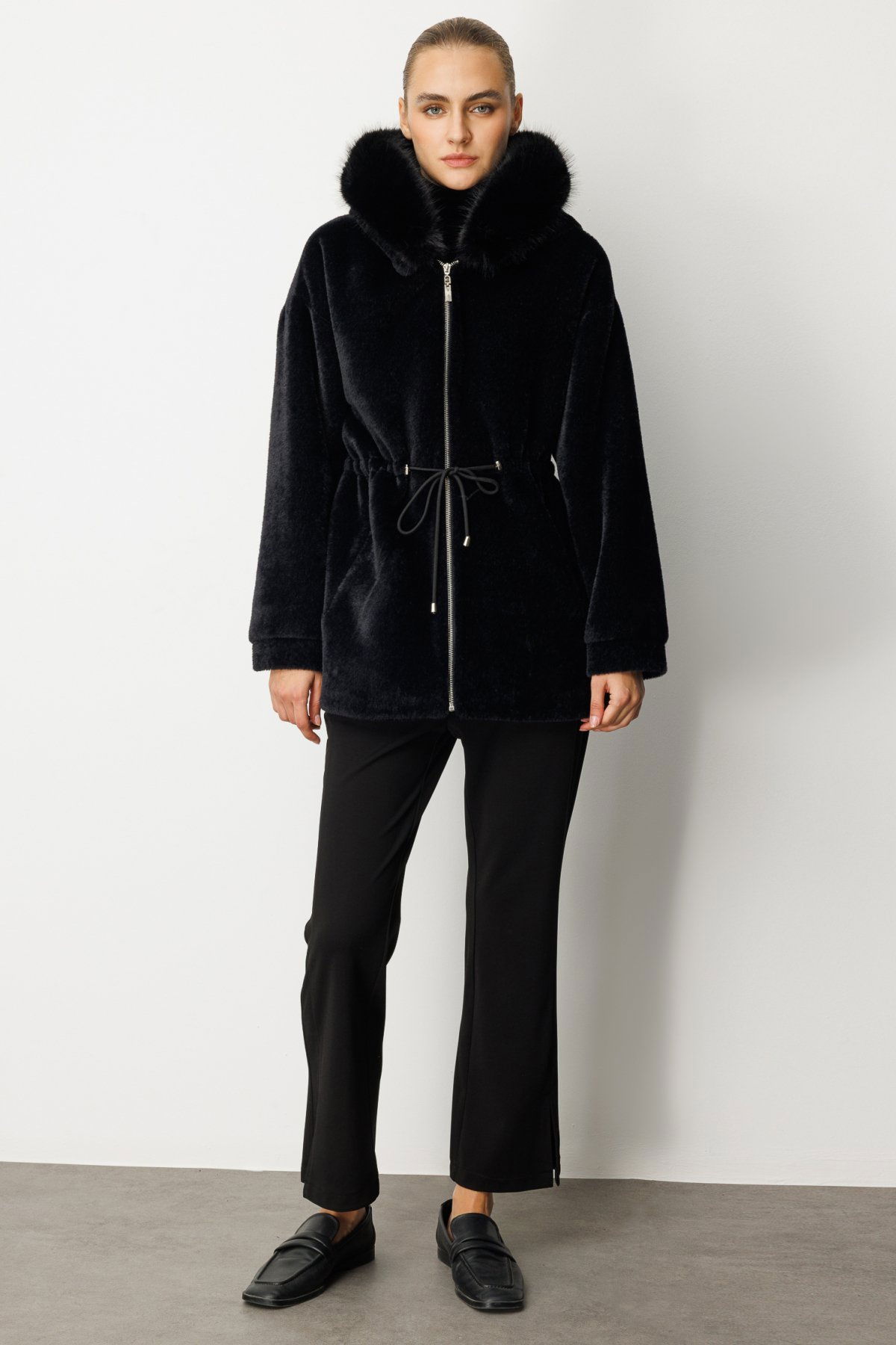 Detay: Peluş kumaştan üretilmiş, astarlı ve kapüşonlu tasarımıyla öne çıkan bu uzun kollu kalın kaban, fermuarlı kapama detayıyla soğuk havalarda maksimum koruma sağlar. Cepsiz yapısı sayesinde sade ve modern bir görünüm sunan bu parça, yumuşak dokusuyla konforu ve şıklığı bir arada sunar. Günlük şehir stilinden hafta sonu kombinlerine kadar geniş bir kullanım alanı sunan bu kaban, kış gardırobunun vazgeçilmezlerinden biridir;