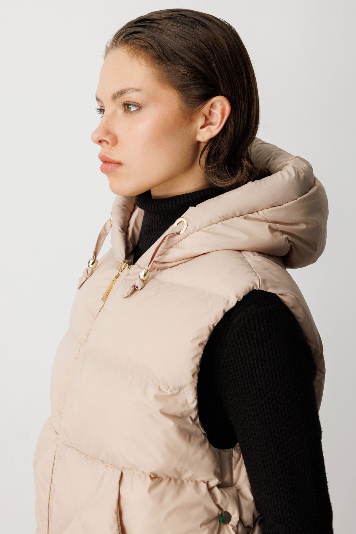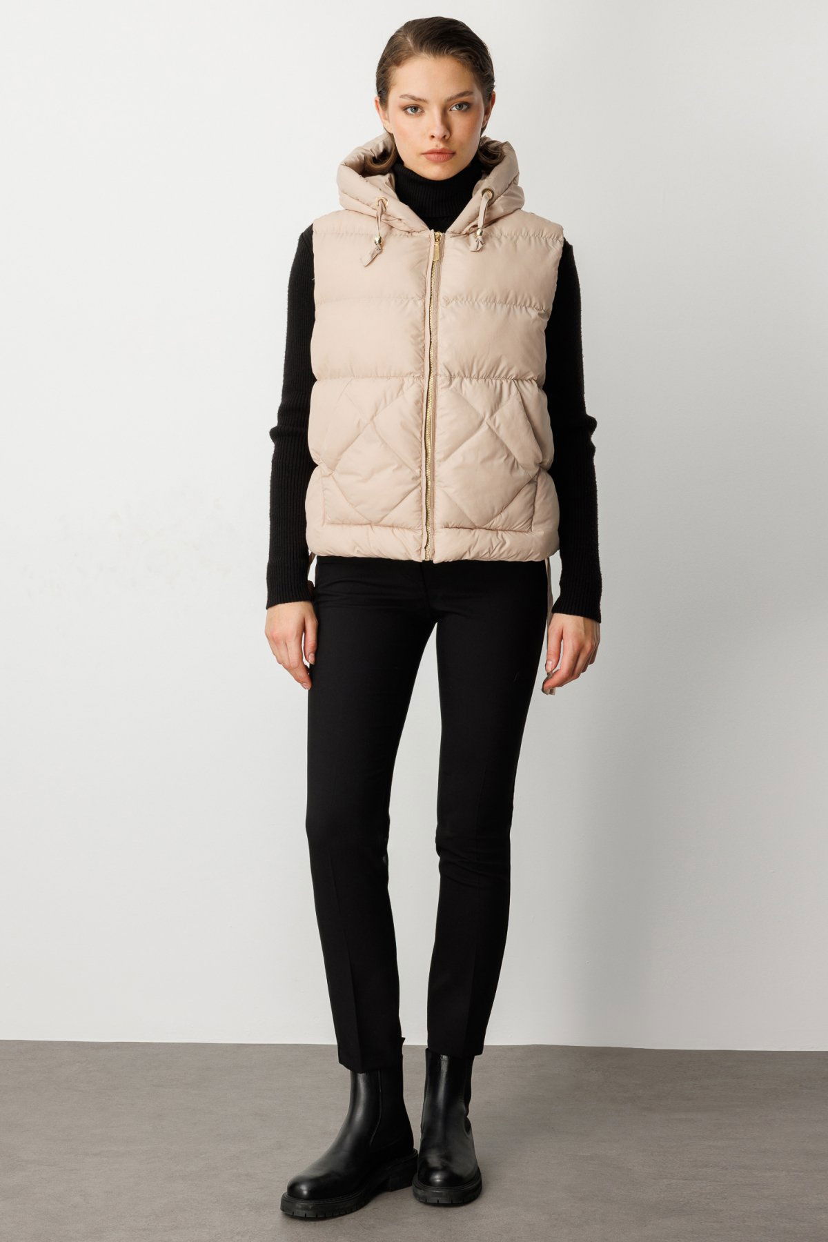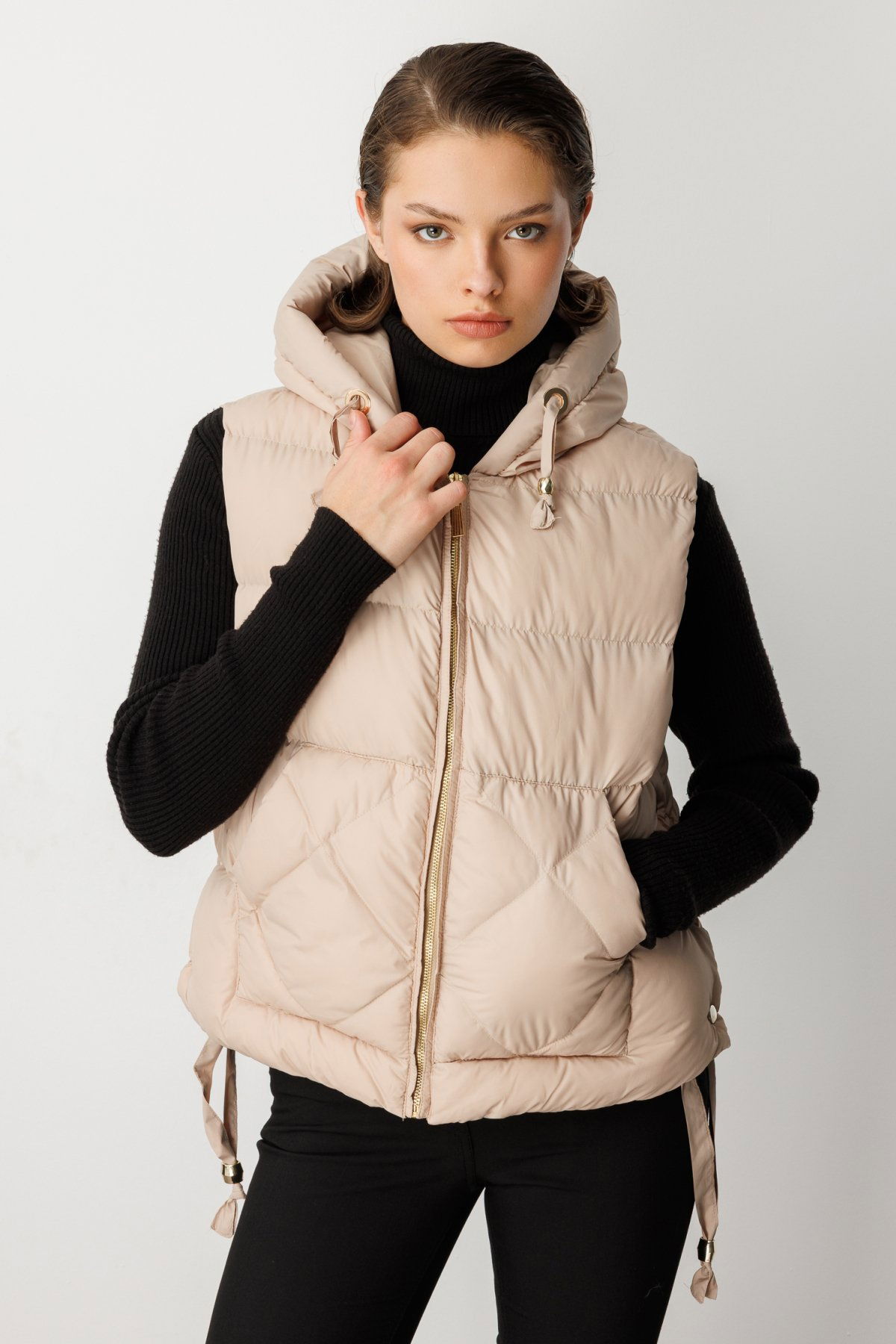 Ekol Kadın Kapüşonlu Şişme Yelek 8581 Bej