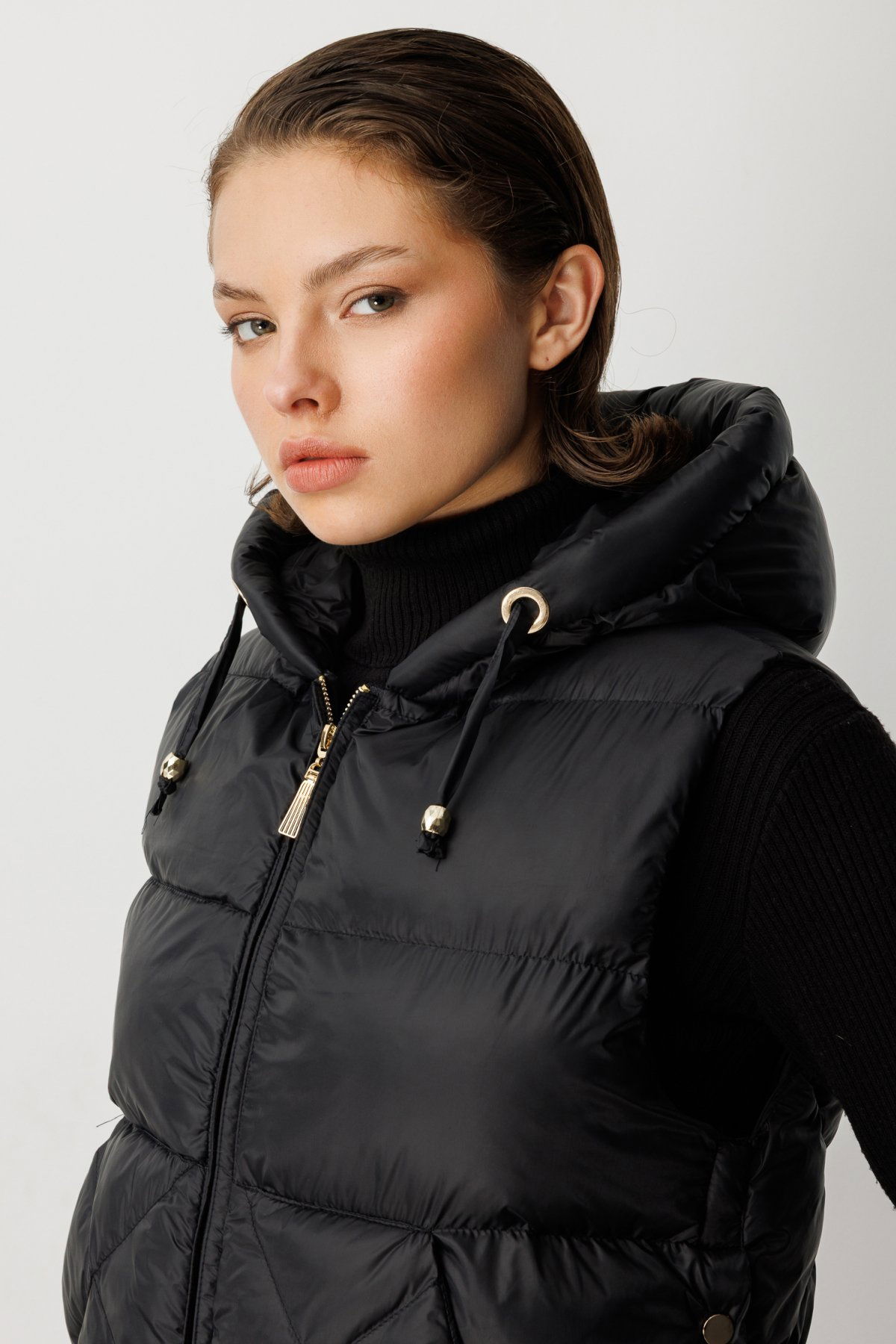 Ekol Kadın Kapüşonlu Şişme Yelek 8581 Siyah