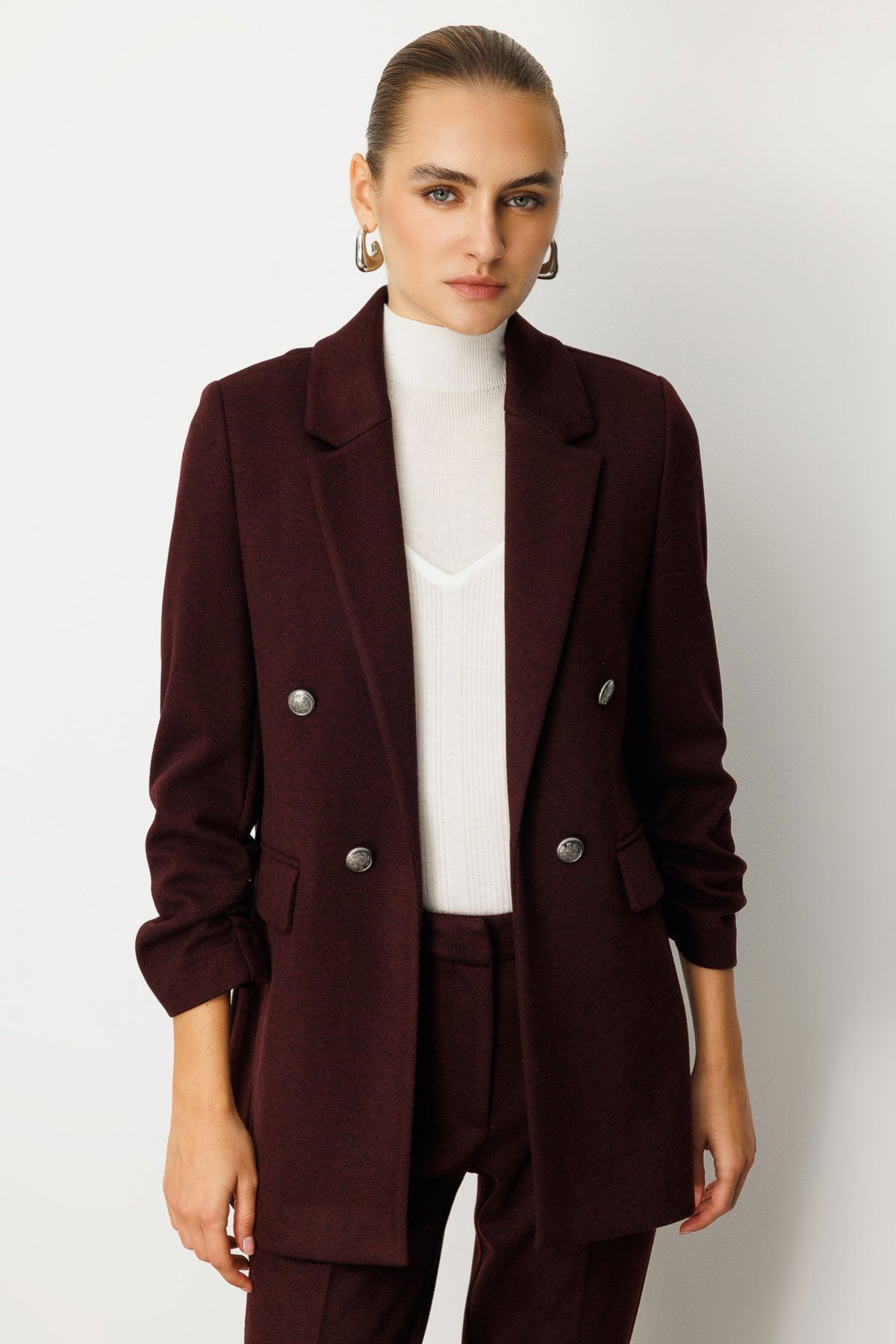 Ekol Kadın Kolu Büzgülü Kapak Cepli Ceket 5187 Bordo