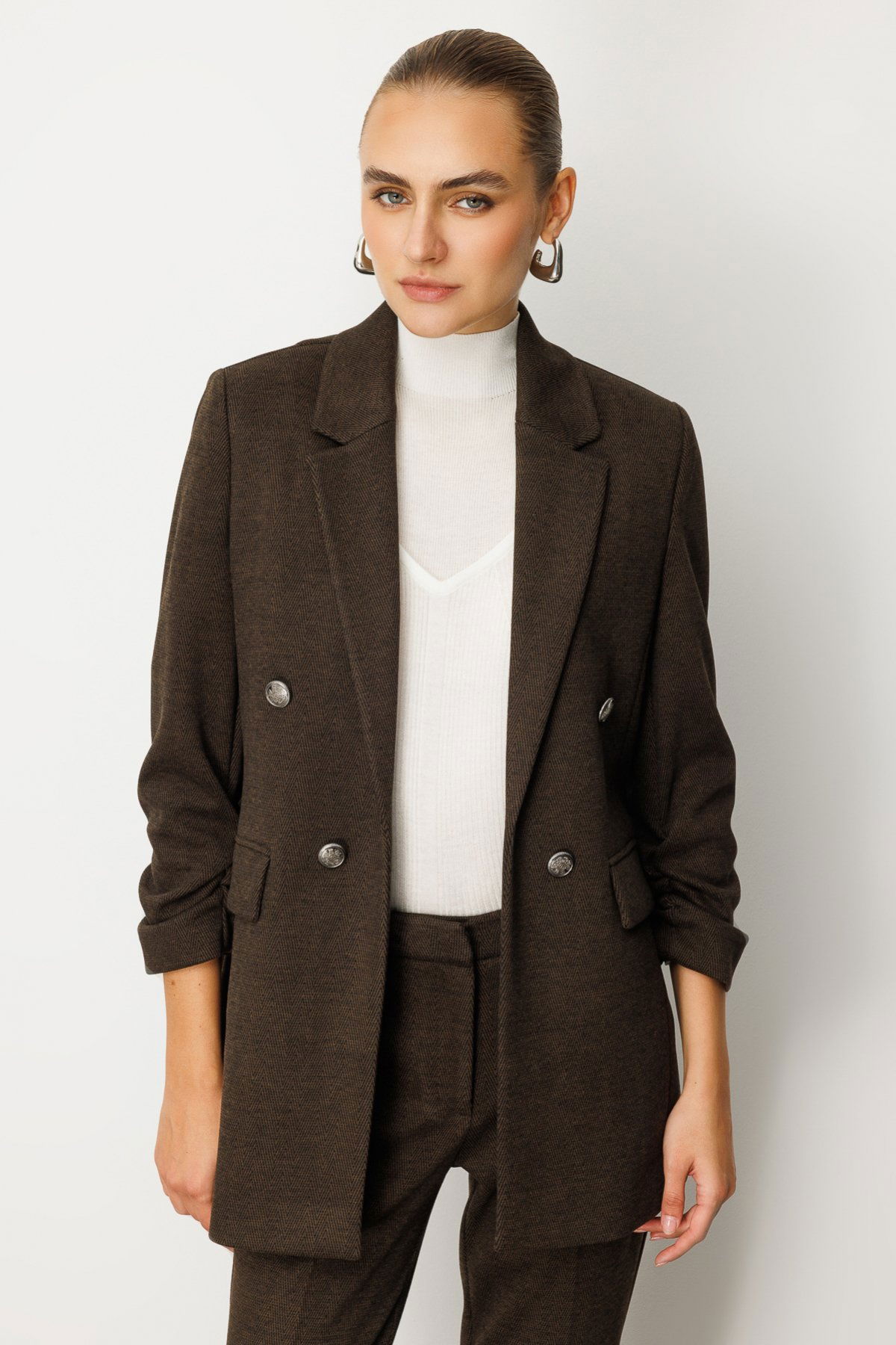 Detay: Dokuma kumaştan üretilmiş, astarsız ve kapamasız tasarımıyla öne çıkan bu uzun kollu kapaklı ceket, ceket yaka ve büzgülü/fırfırlı kol detaylarıyla feminen bir şıklık sunar. Modern çizgileriyle hem günlük kombinlerde hem de özel günlerde rahatlıkla tercih edilebilir. Zarif dokusu ve özgün tasarımıyla stil sahibi gardıropların dikkat çeken parçası olmaya adaydır;