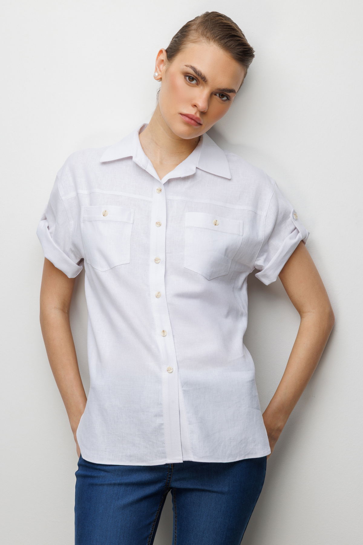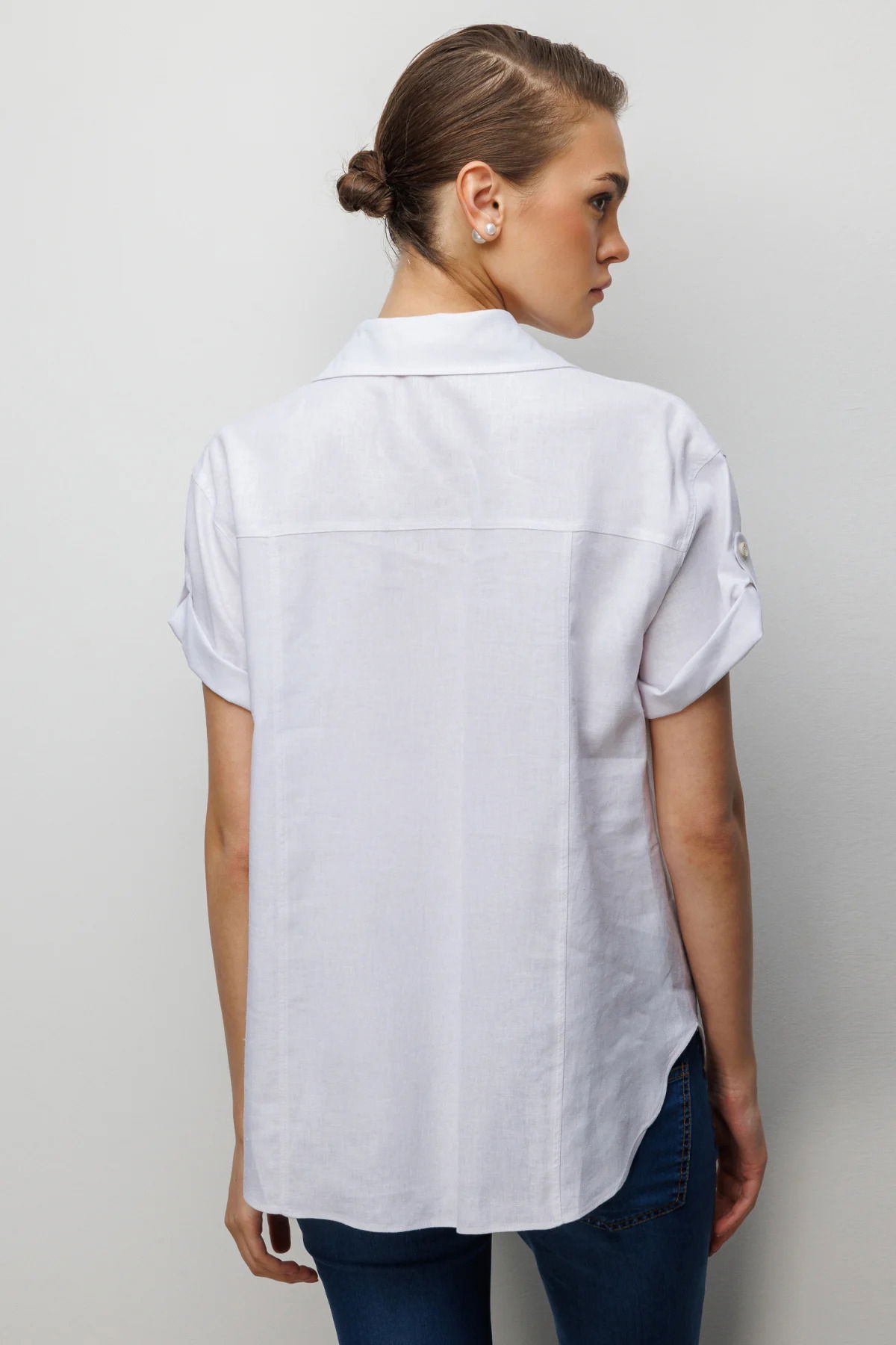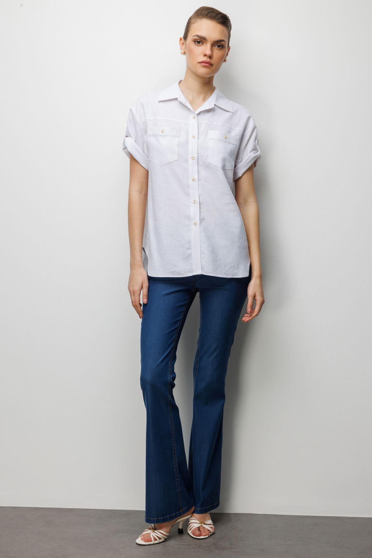 Ekol Kadın Kolu Katlamalı Keten Gömlek 2024 Ekru