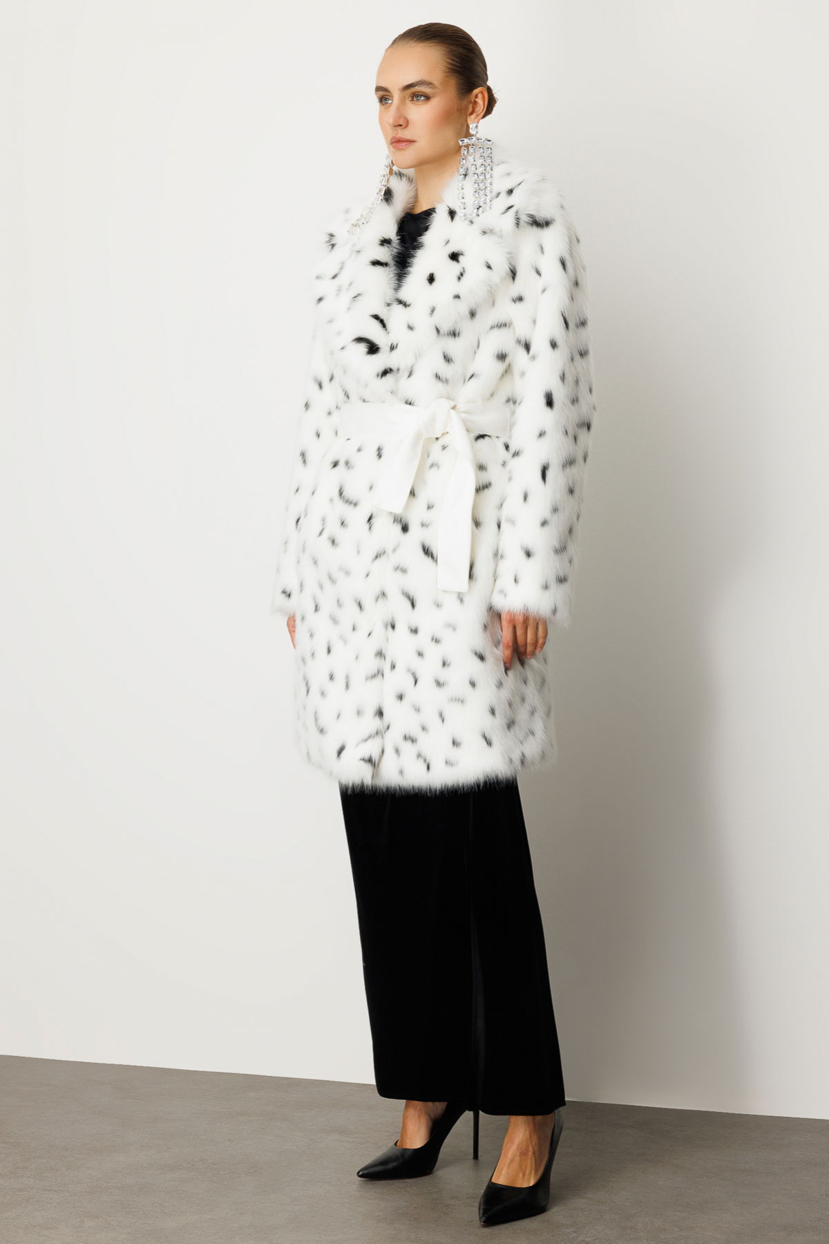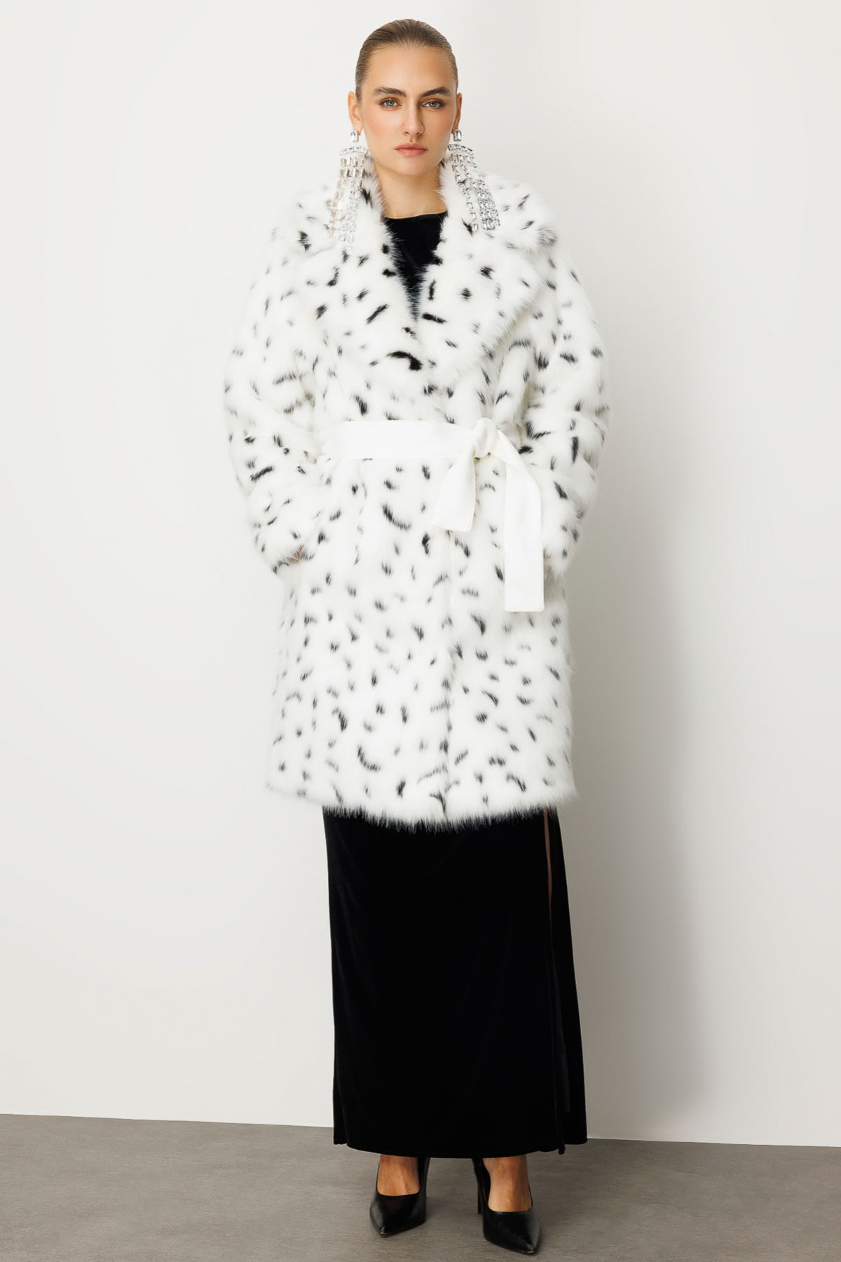 Detay: Dokuma kumaştan üretilmiş, astarlı ve kruvaze yakalı bu uzun kollu kürk, çıt çıt kapama ve yan cep detaylarıyla hem sofistike hem de fonksiyonel bir tasarım sunar. Şıklığı ve sıcaklığı bir arada sağlayan bu parça, soğuk havalarda stilinizi tamamlayacak zarif bir dış giyim alternatifi oluşturur. Modern kesimiyle günlük kombinlerden özel davetlere kadar geniş bir kullanım alanı sağlar;