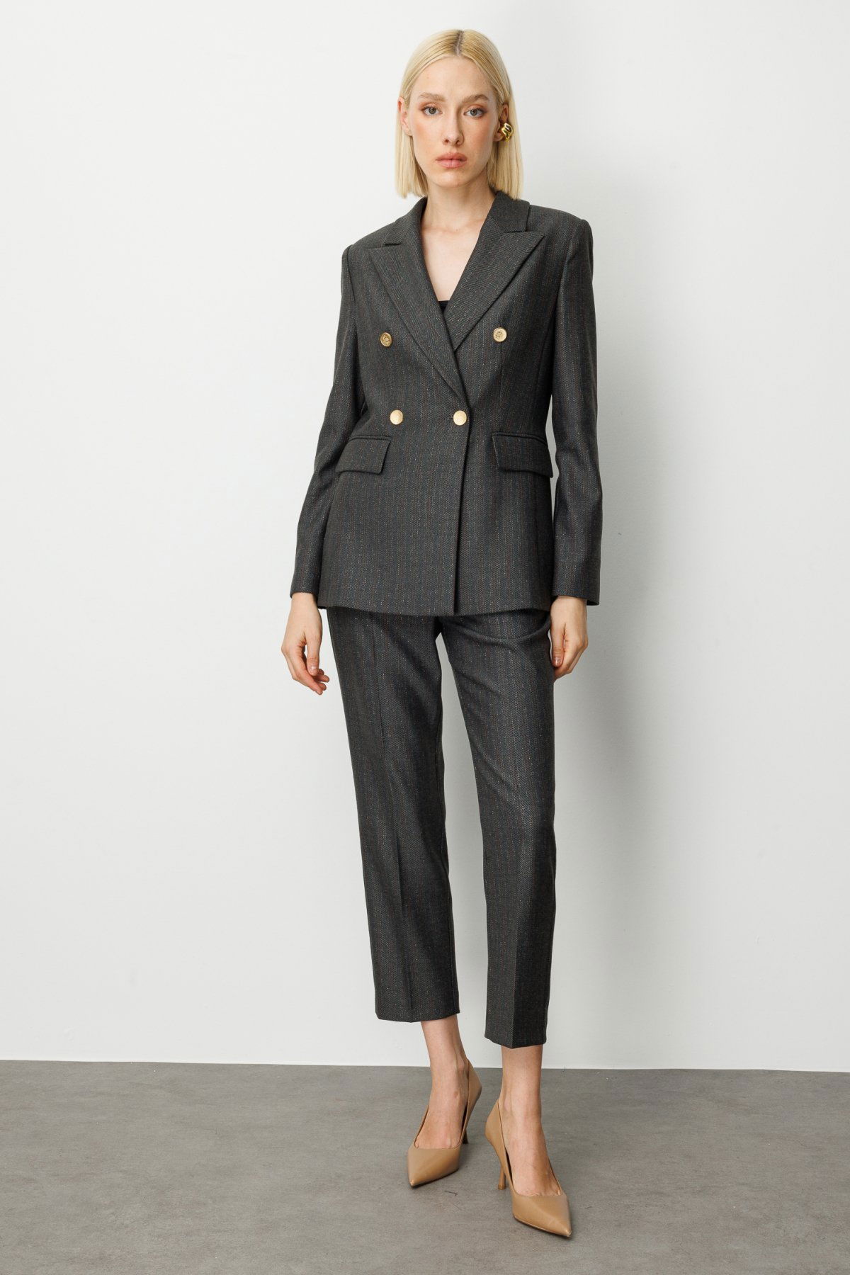 Detay: Dokuma kumaştan üretilen bu astarlı ceket, kruvaze yaka ve uzun kollu tasarımıyla klasik şıklığı modern detaylarla buluşturur. Düğmeli kapama sistemi ve kapaklı cepleriyle hem fonksiyonel hem de zarif bir görünüm sunan bu model, iş hayatından özel davetlere kadar geniş bir kullanım alanı sağlar. Stil sahibi duruşuyla gardırobunuzun güçlü tamamlayıcısı olmaya adaydır;