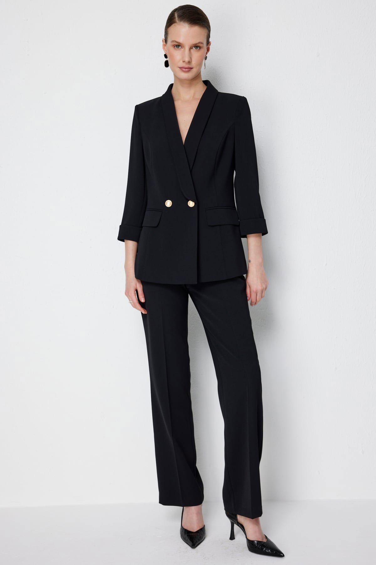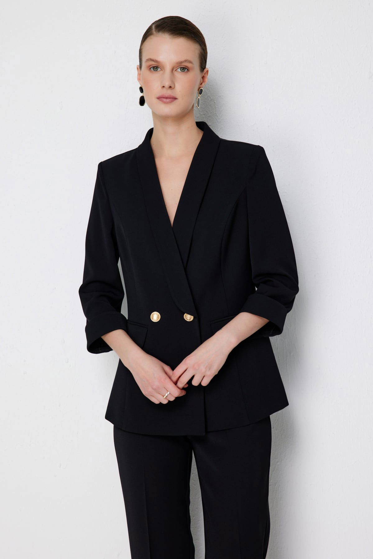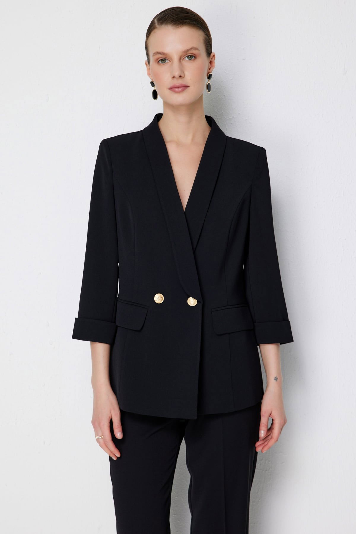 Detay: Polyester kumaştan üretilen, astarsız, kruvaze yaka, vatkalı, truvakar kollu, düğmeli bu ceket modeli tüm bu özellikleri ile güçlü ve zarif bir görünüm sunar. Kruvaze yaka detayı sofistike bir duruş kazandırırken vatkalı tasarım omuzlara belirgin bir form verir. Truvakar kol uzunluğu modern bir şıklık sağlarken düğmeli kapama şekli pratiklik ve klasik bir hava katar. Bu özellikleriyle ceket, hem iş hayatında hem de özel davetlerde stil sahibi bir tamamlayıcı olarak öne çıkar;