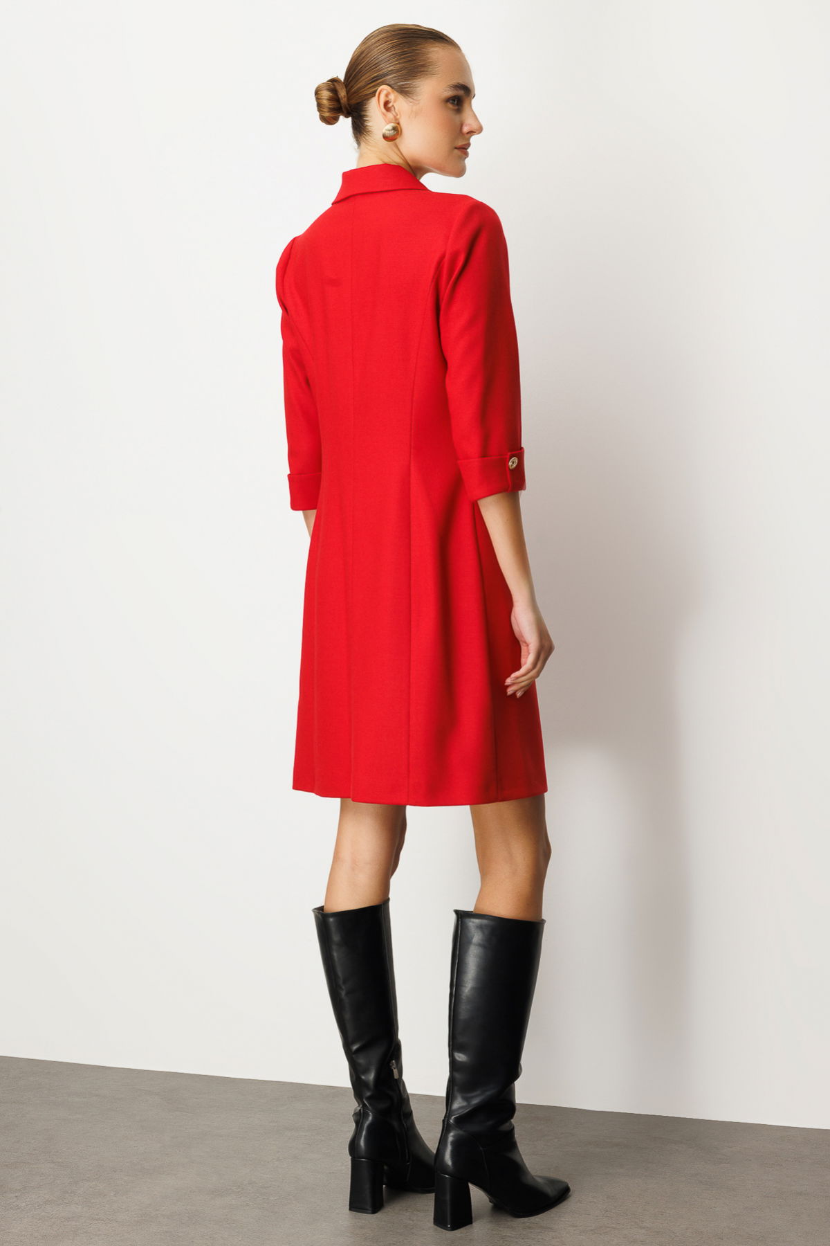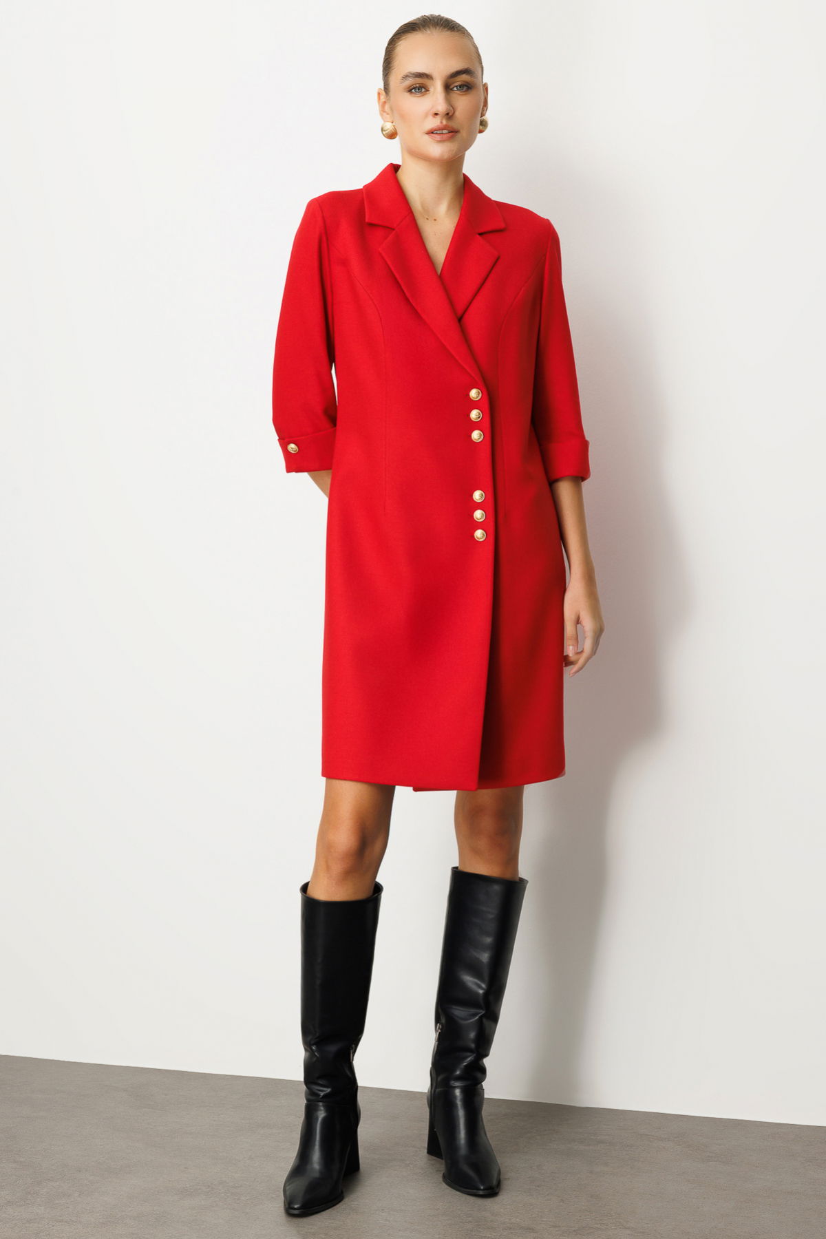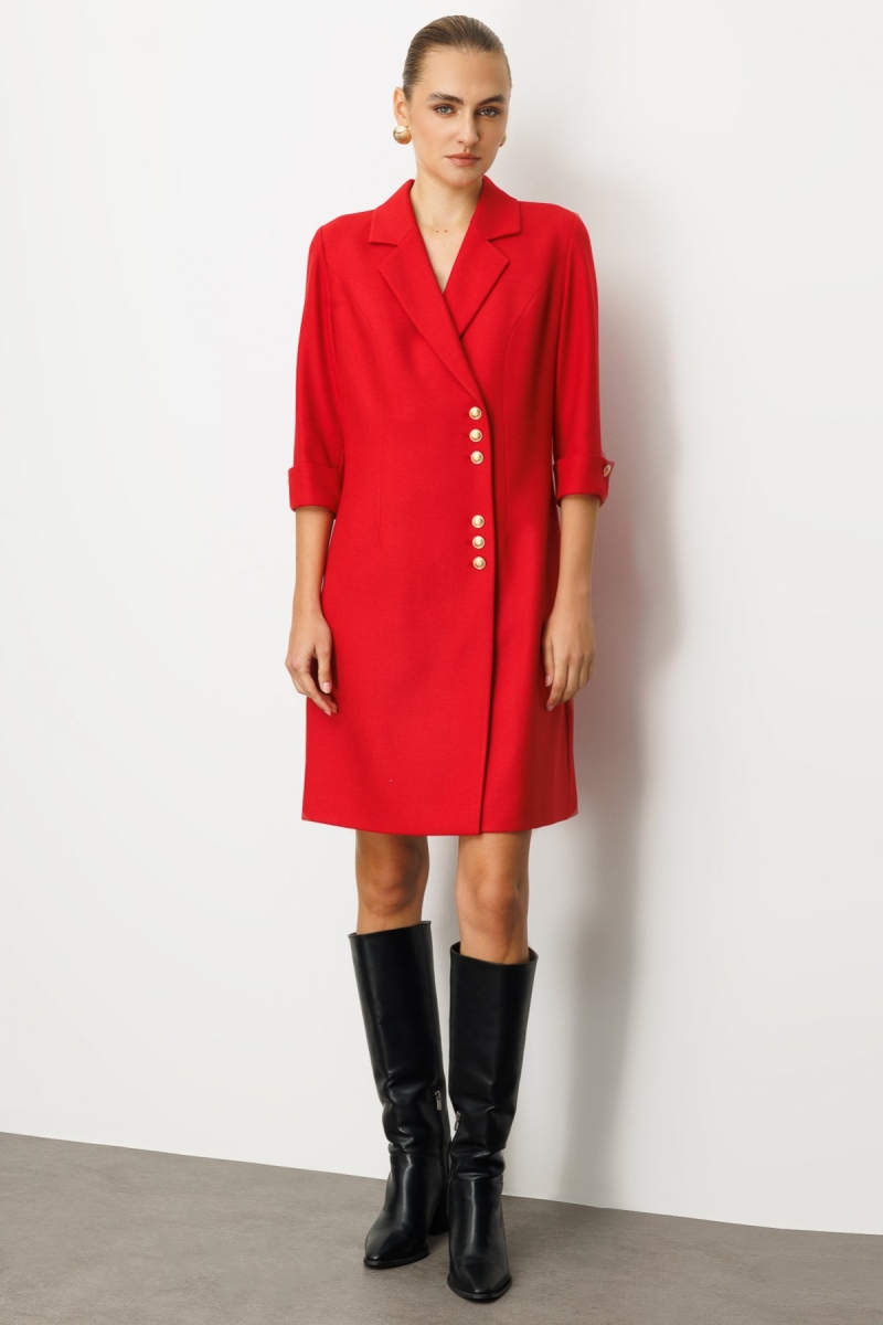 Detay: Dokuma kumaştan üretilmiş astarlı kruvaze yaka elbise, truvakar kol tasarımıyla zarif ve modern bir siluet sunar. Düğmeli kapama detayı sayesinde klasik şıklığı vurgulayan bu elbise, hem ofis stilinde hem de özel davetlerde rahatlıkla tercih edilir. Astarlı yapısı ile konforu artıran kruvaze elbise modelleri, stil sahibi kadınların gardırobunda öne çıkıyor;