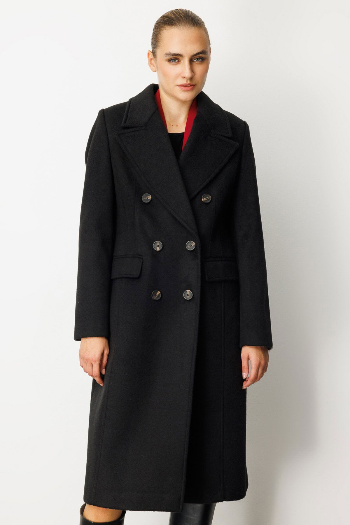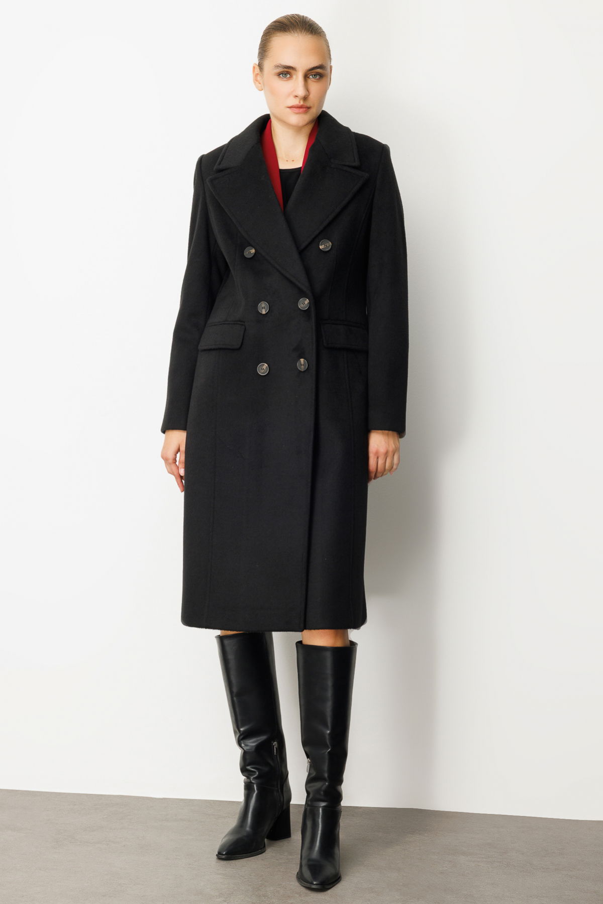 Ekol Kadın Kruvaze Yaka Kapak Cepli Kaban 6069 Siyah