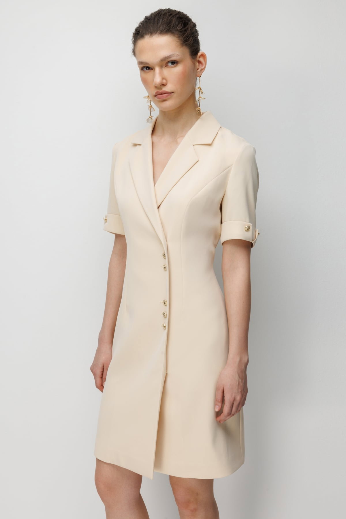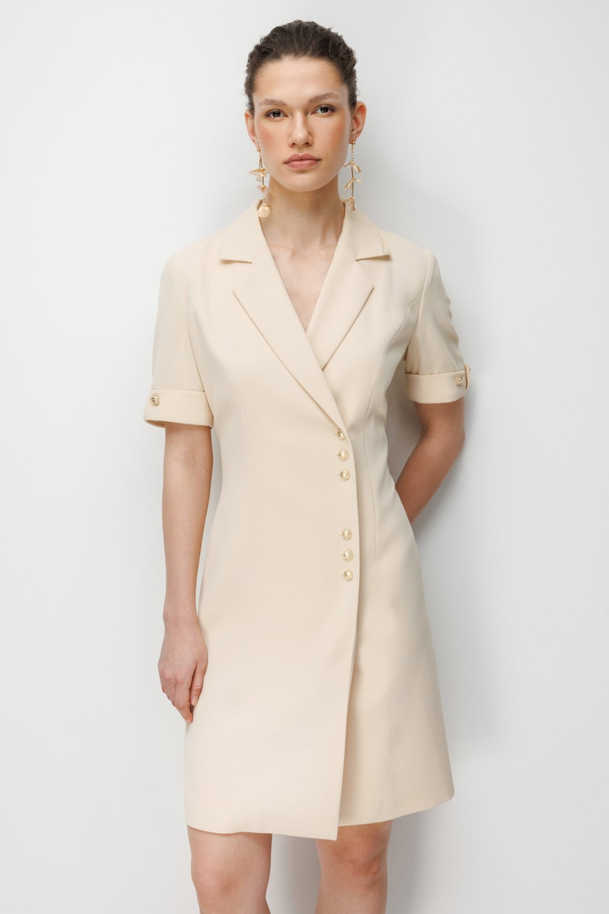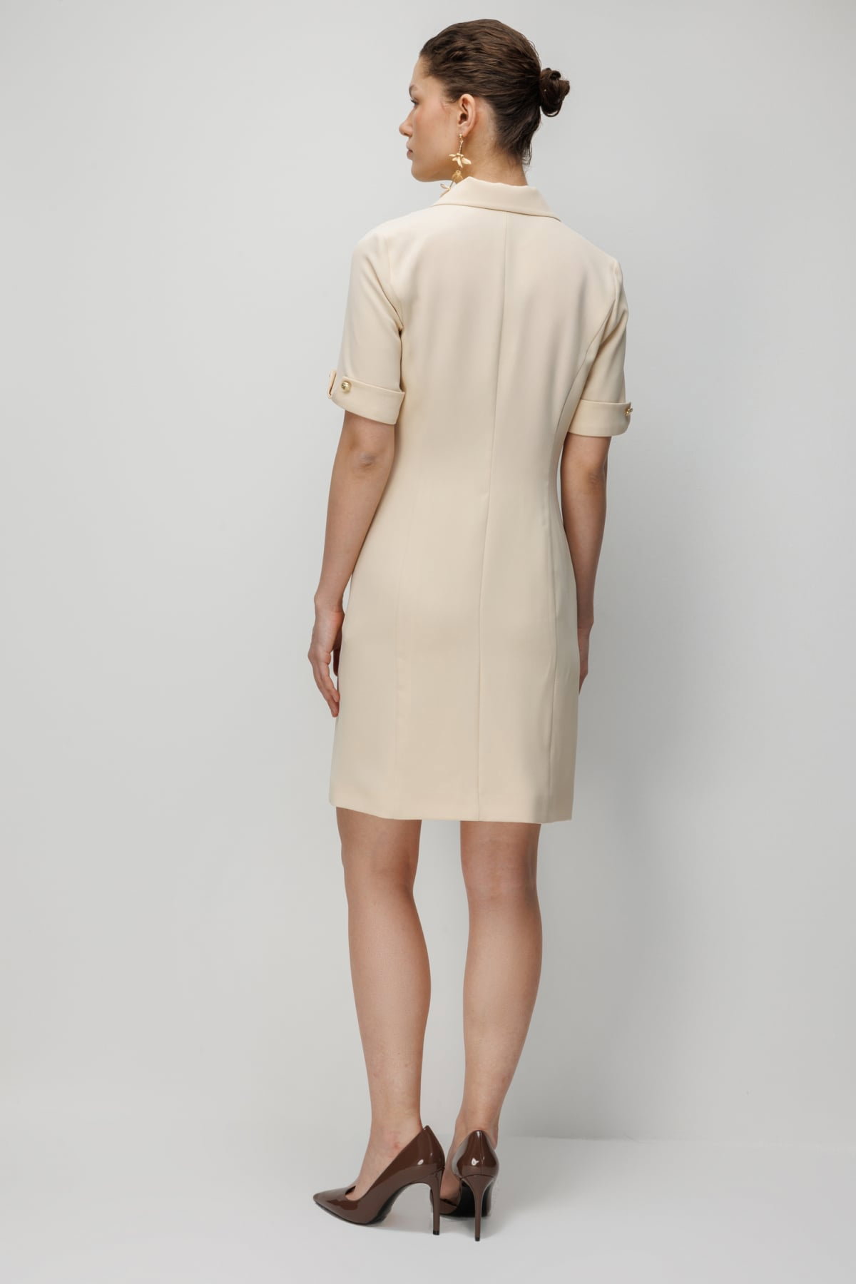 Detay: Polyester kumaş tipi ile tasarlanan bu elbise modeli, astarlı yapısı sayesinde kusursuz bir duruş ve zarif bir görünüm sunar. Kruvaze yaka detayı feminen bir şıklık katarken, kısa kol tasarımı modern ve rahat bir stil oluşturur. Düğmeli kapama şekli ise hem estetik bir dokunuş hem de pratik bir kullanım sağlayarak elbiseyi göz alıcı hale getirir;
