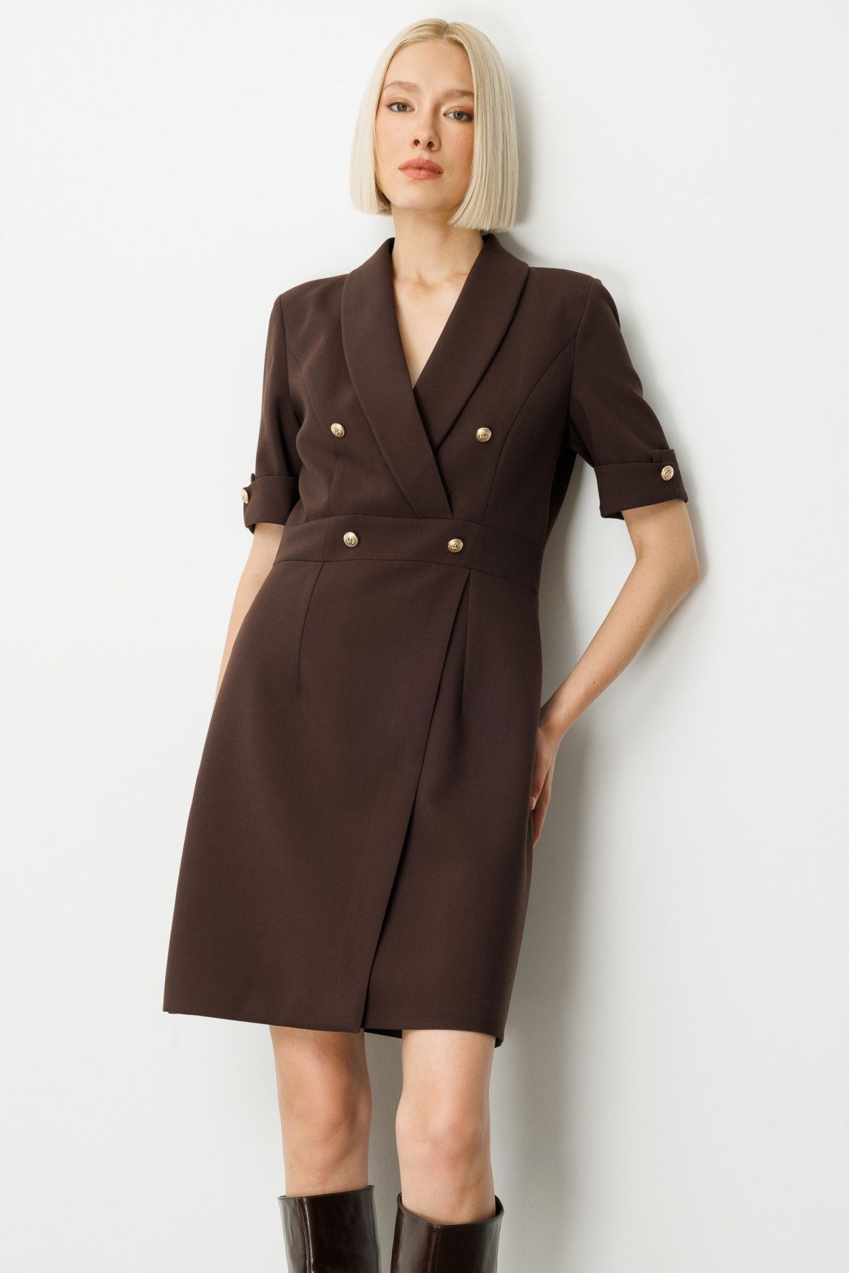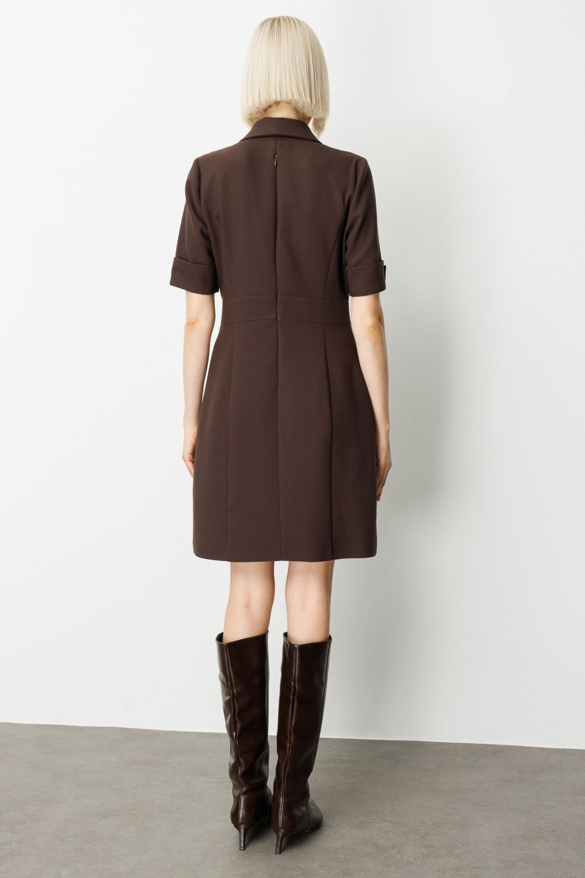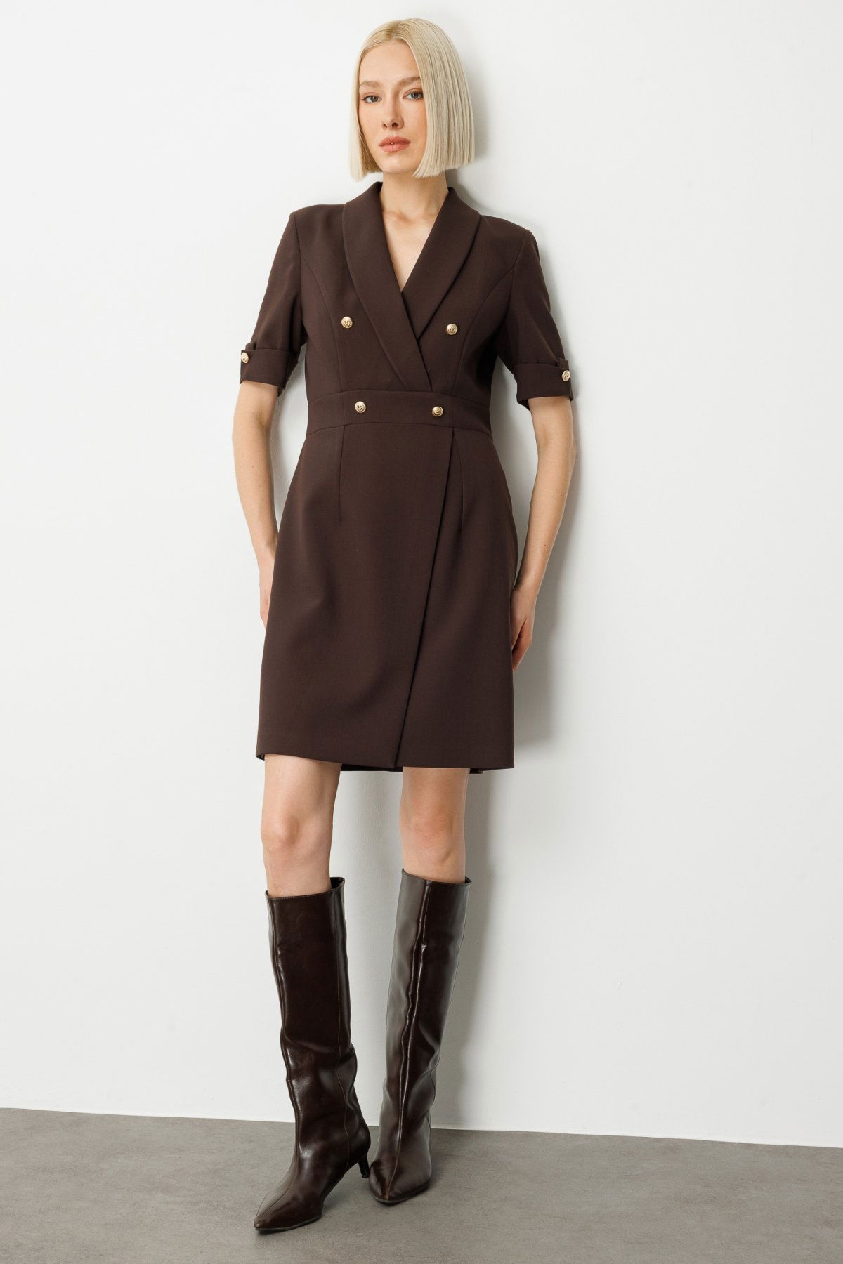 Ekol Kadın Kruvaze Yaka Süs Düğmeli Elbise 4017 Kahverengi
