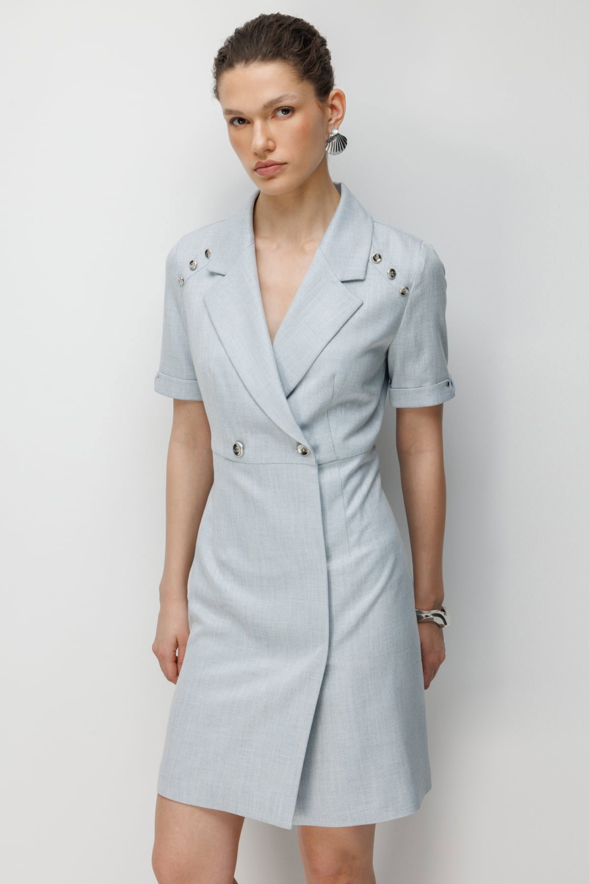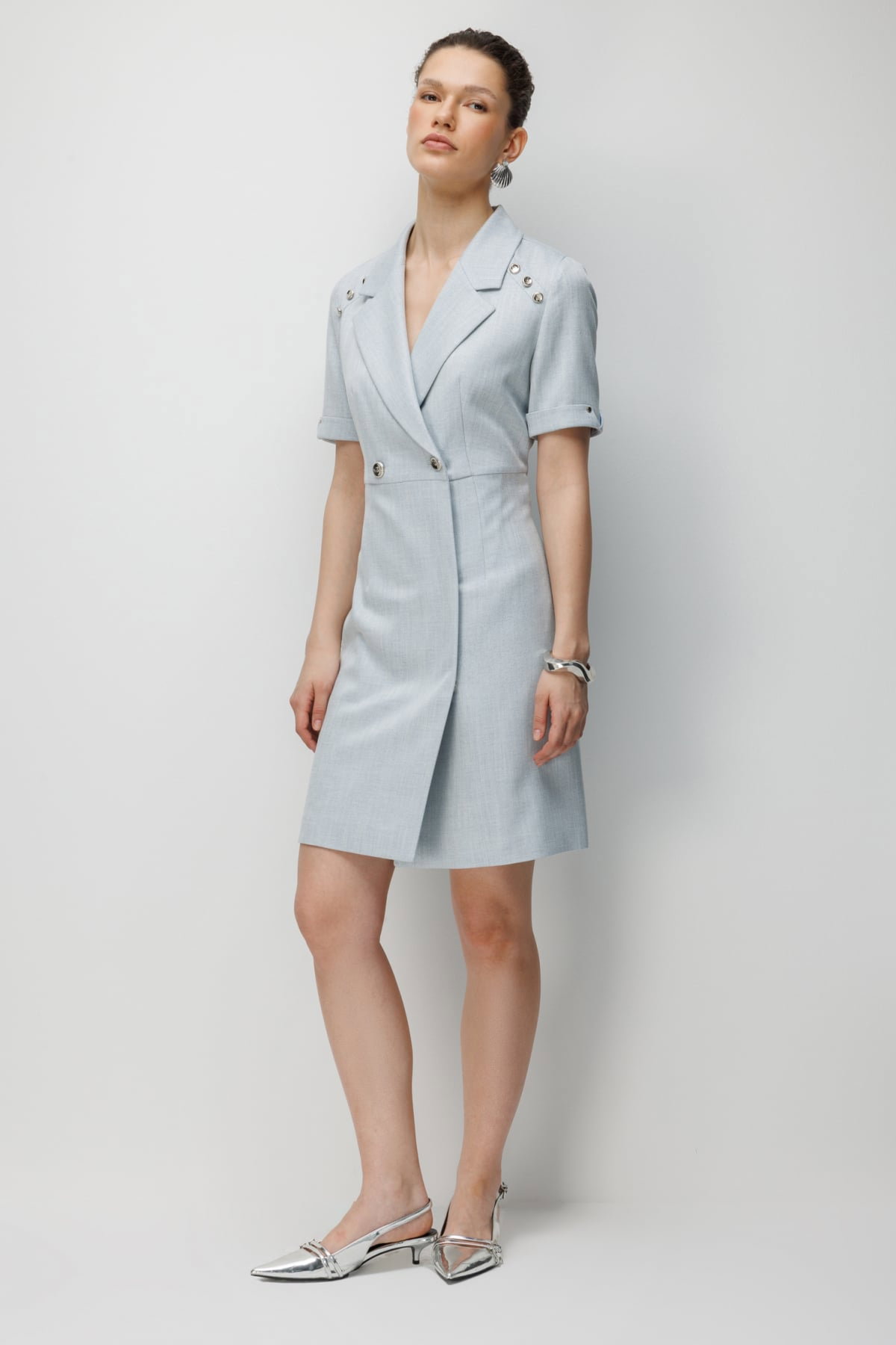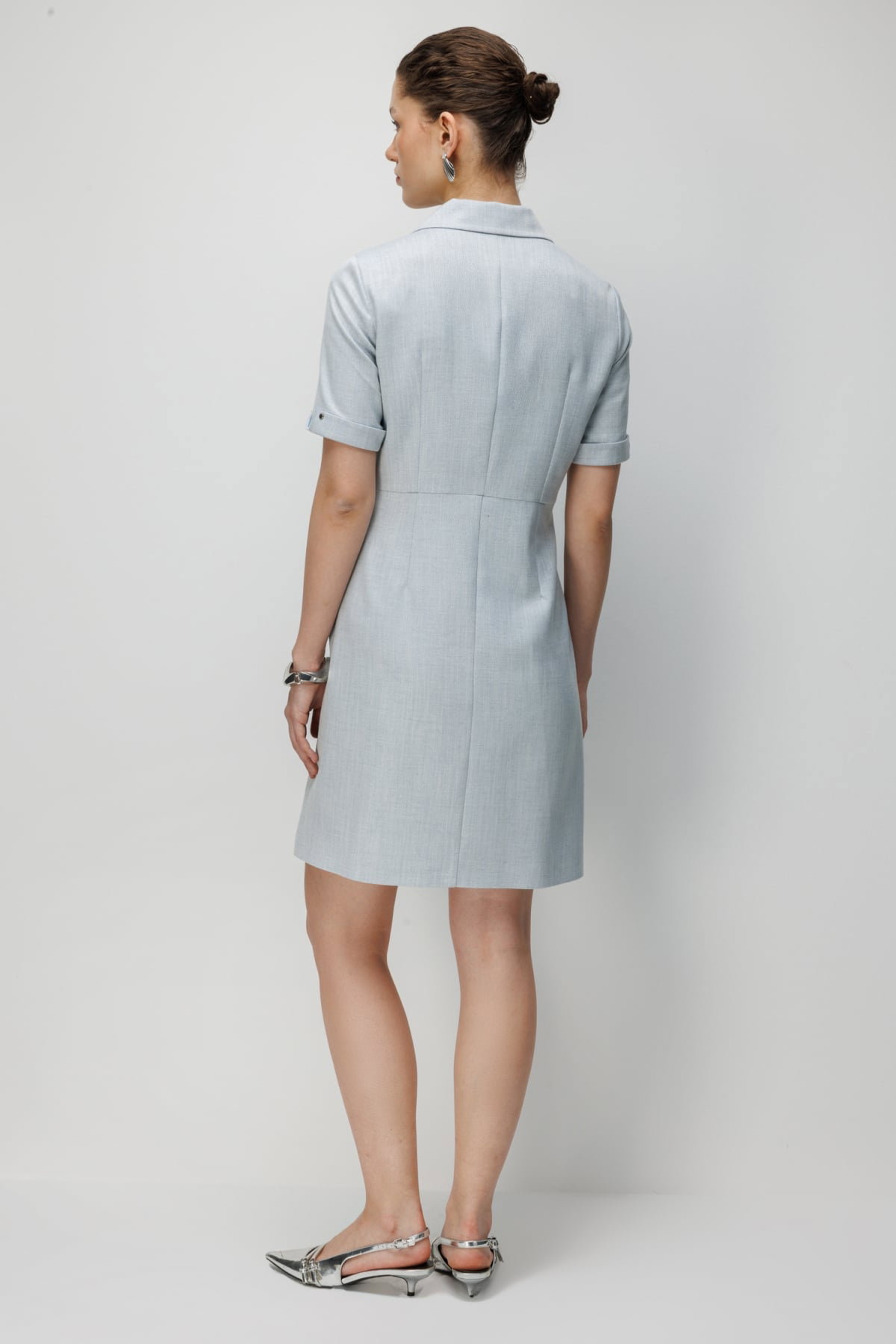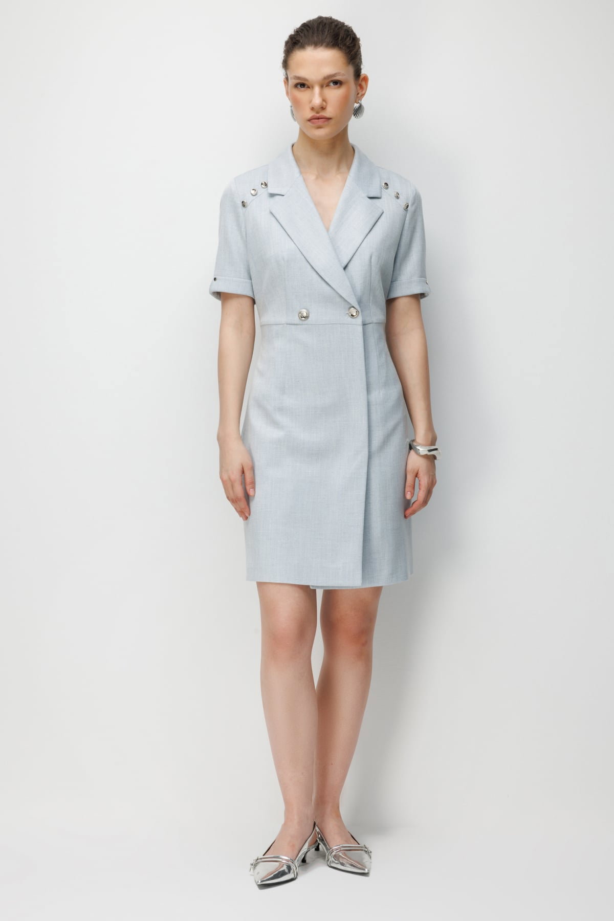 Detay: Dokuma kumaş ile üretilen bu elbise modeli, astarlı yapısı sayesinde şık ve düzgün bir duruş sergiler. Kruvaze yaka detayı zarif bir görünüm kazandırırken, kısa kol tasarımı modern bir rahatlık sunar. Çıt çıt kapama şekli ise pratik kullanım sağlayarak tasarımı tamamlar.;