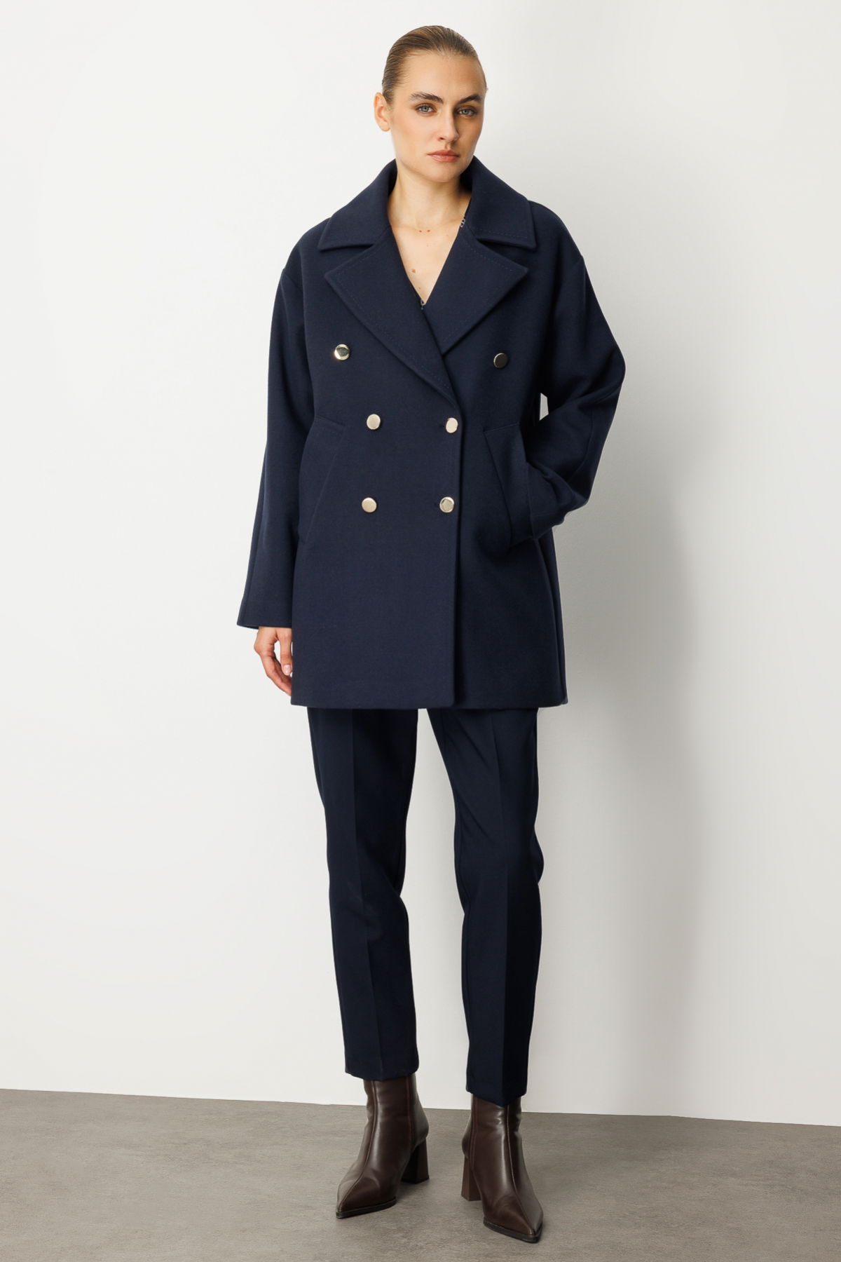Detay: Dokuma kumaştan üretilmiş, astarlı ve kruvaze yakalı bu uzun kollu kaban, düğmeli kapama ve yan cep detaylarıyla hem şıklık hem de işlevsellik sunar. Klasik tasarımı sayesinde soğuk havalarda stilinizi tamamlayacak zarif bir dış giyim alternatifi oluşturur. Günlük şehir stilinden özel davet kombinlerine kadar geniş bir kullanım alanı sağlayan bu kaban, gardırobunuzun güçlü parçalarından biri olmaya adaydır;