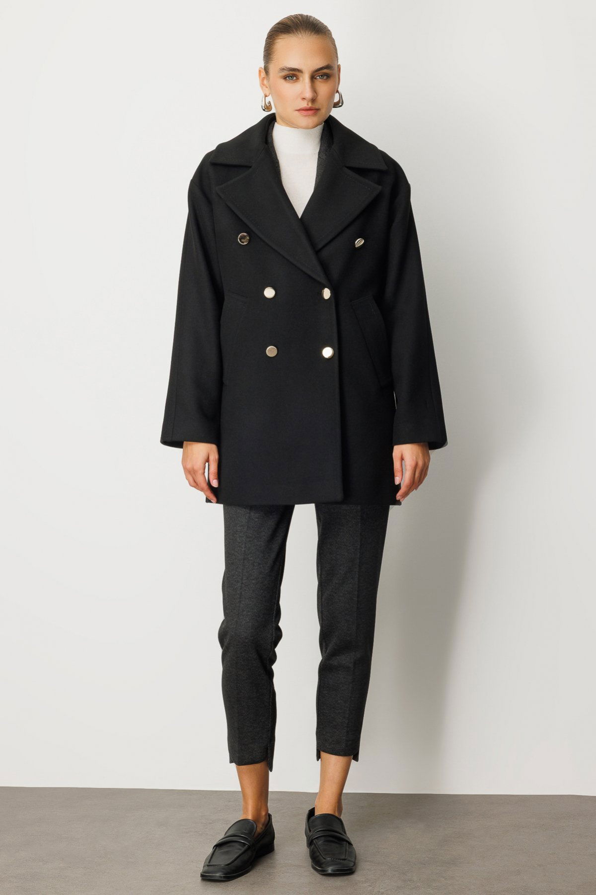 Detay: Dokuma kumaştan üretilmiş, astarlı ve kruvaze yakalı bu uzun kollu kaban, düğmeli kapama ve yan cep detaylarıyla hem şıklık hem de işlevsellik sunar. Klasik tasarımı sayesinde soğuk havalarda stilinizi tamamlayacak zarif bir dış giyim alternatifi oluşturur. Günlük şehir stilinden özel davet kombinlerine kadar geniş bir kullanım alanı sağlayan bu kaban, gardırobunuzun güçlü parçalarından biri olmaya adaydır;