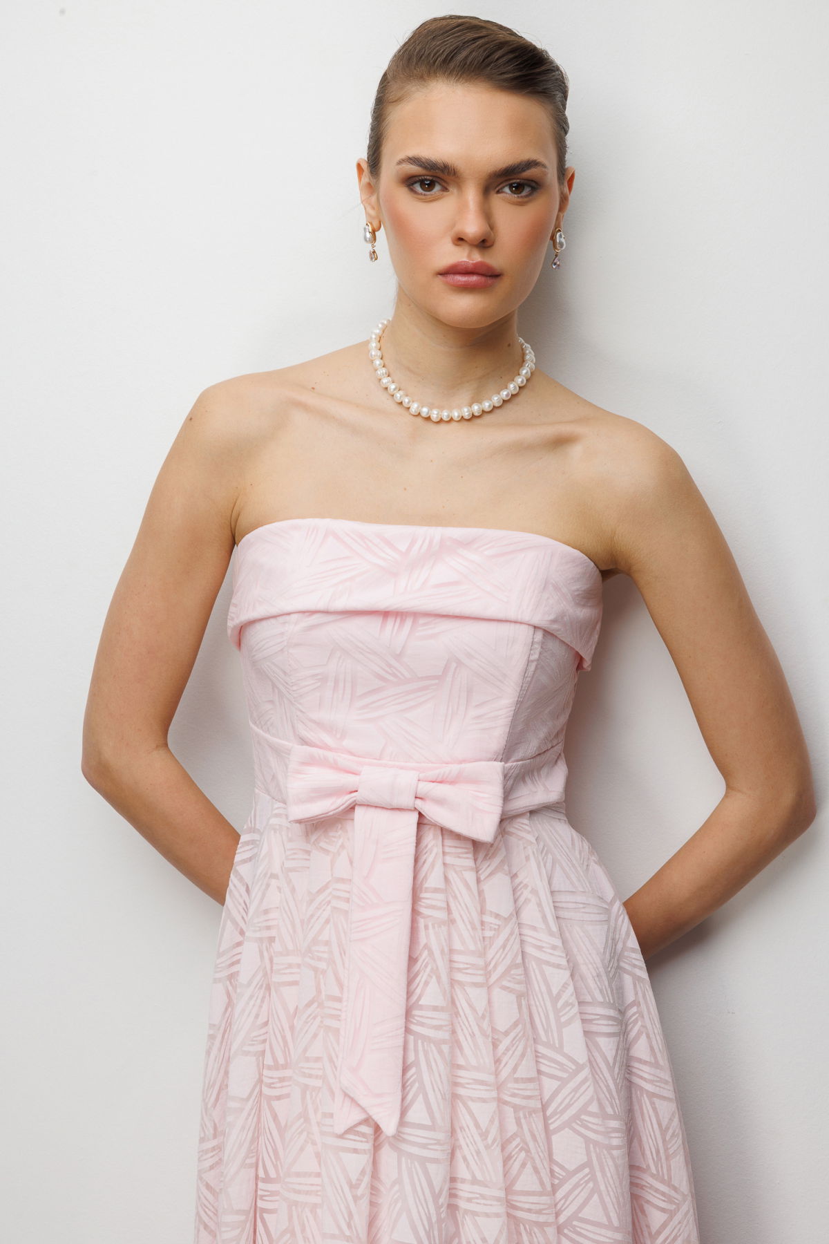 Detay: Dokuma kumaştan üretilen, astarlı yapısıyla daha şık ve düzgün bir duruş sağlayan straplez yaka omzu açık fermuarlı elbise, feminen ve zarif bir görünüm sunar. Straplez tasarımıyla özel davetlerde dikkat çekerken, omzu açık kesimi modern bir şıklık kazandırır. Pratik fermuar kapamasıyla kullanım kolaylığı sağlayan bu elbise, gardırobunuzda özel günlerin vazgeçilmez parçalarından biri olur;