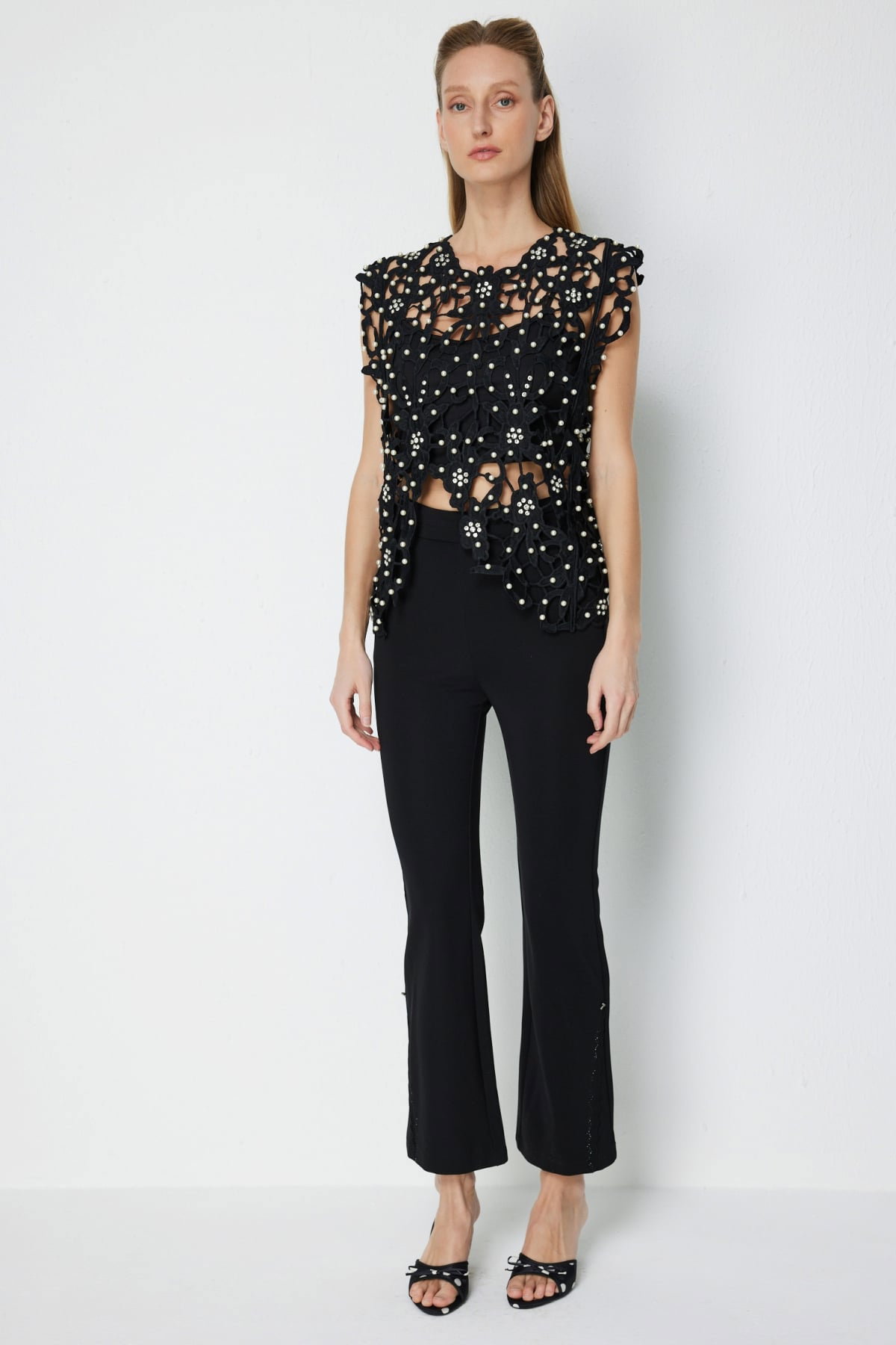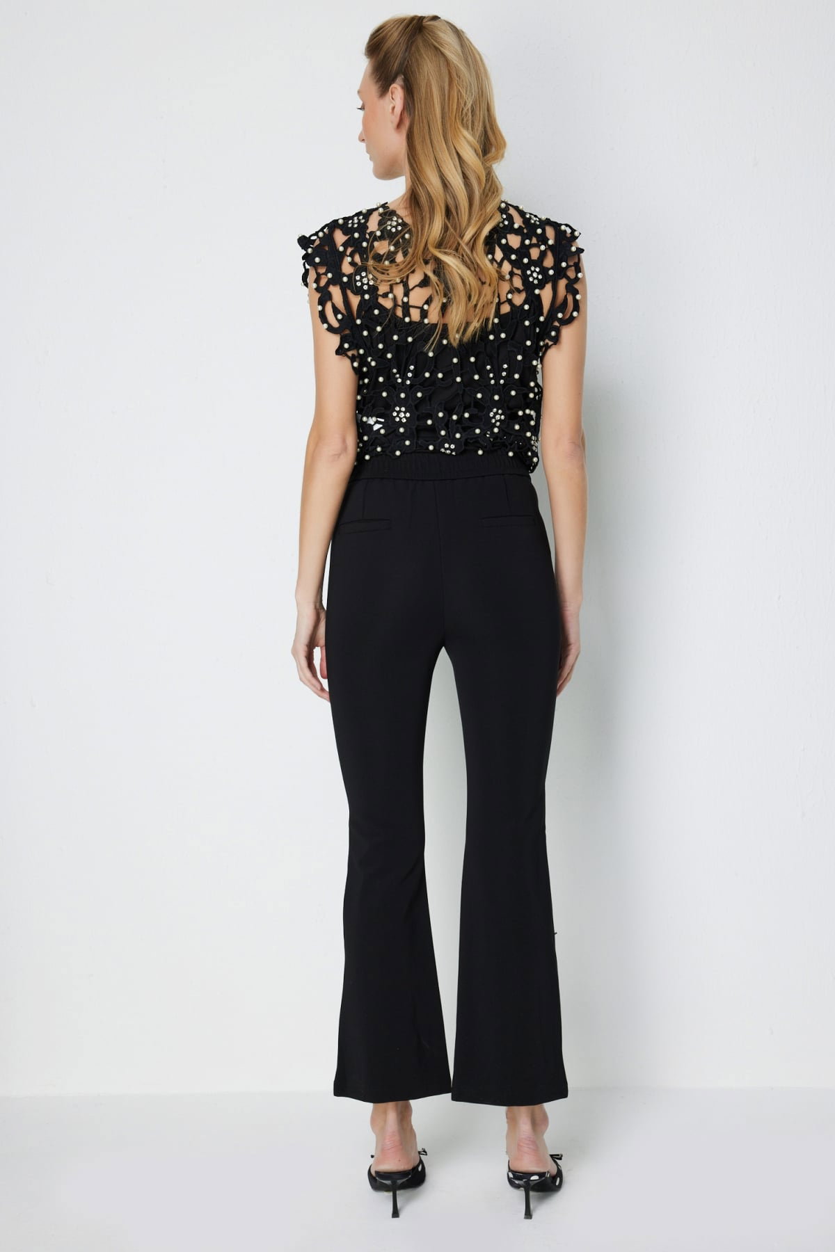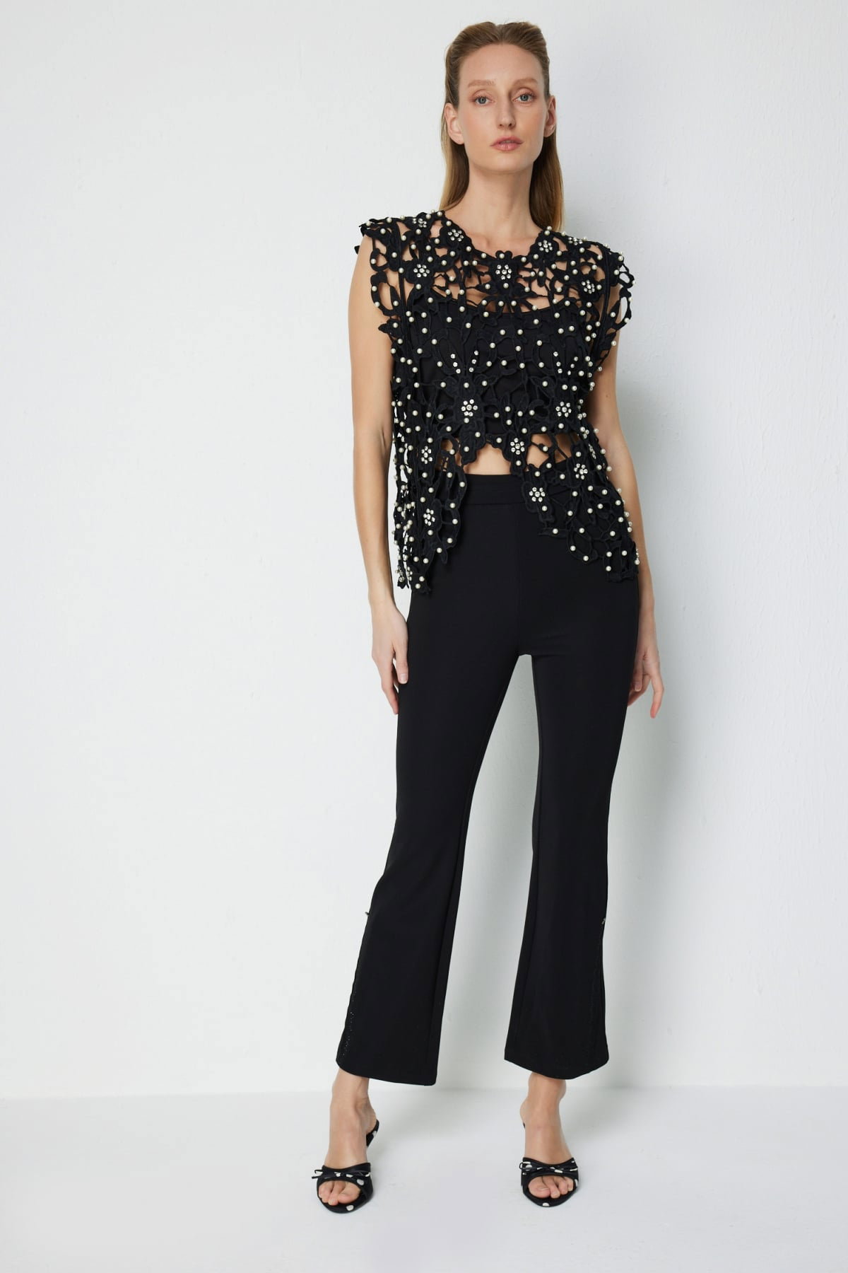 Detay: Dokuma kumaştan üretilen, astarlı, lastikli bel ve İspanyol paça kesimli bu pantolon zarif bir tasarıma sahiptir. Dokuma kumaşın kaliteli dokusu şıklığı ön plana çıkarırken, astarlı yapısı daha düzgün bir duruş ve ekstra konfor sağlar. Lastikli bel formu rahat ve pratik bir kullanım sunarken, İspanyol paça kesimi feminen ve şık bir görünüm kazandırır. Yan cepli tasarım ise hem işlevsel hem de modern bir duruş ortaya koyar;