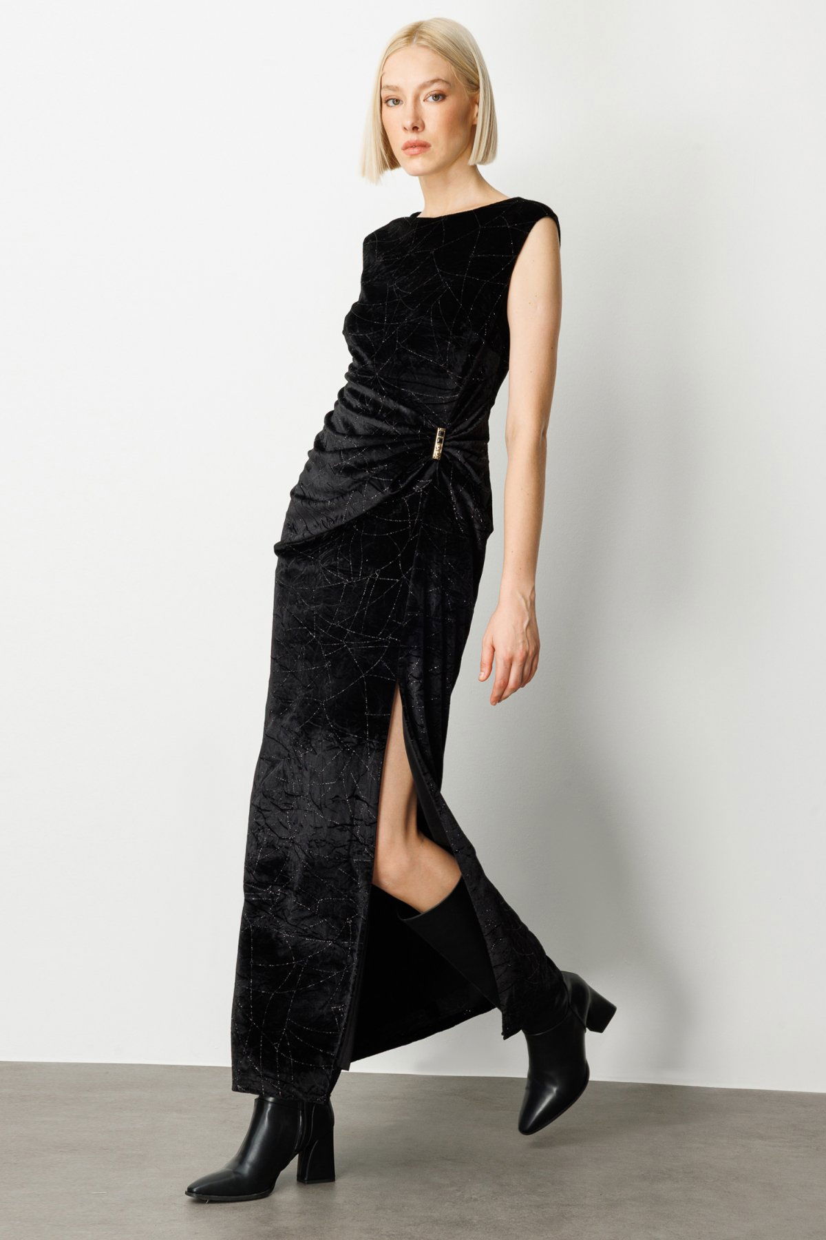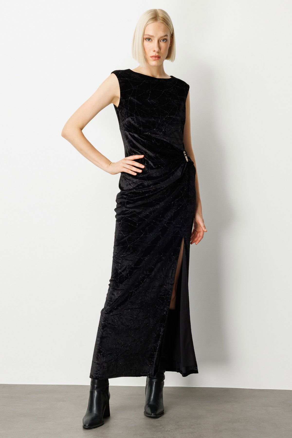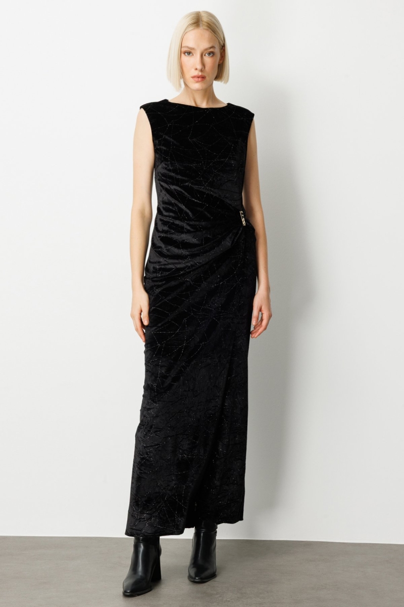 Detay: Kadife kumaşıyla zarafeti yansıtan bu uzun elbise, astarlı yapısıyla konforlu bir kullanım sunarken sıfır yaka ve kolsuz tasarımıyla modern bir siluet oluşturur. Fermuar kapama detayı sayesinde pratik giyilip çıkarılabilen bu model, özel davetlerden günlük şıklığa kadar geniş bir kullanım alanı sağlar. Şıklığı ve rahatlığı bir arada sunan bu elbise, stil sahibi kadınların gardırobunda öne çıkan parçalardan biri olmaya aday;