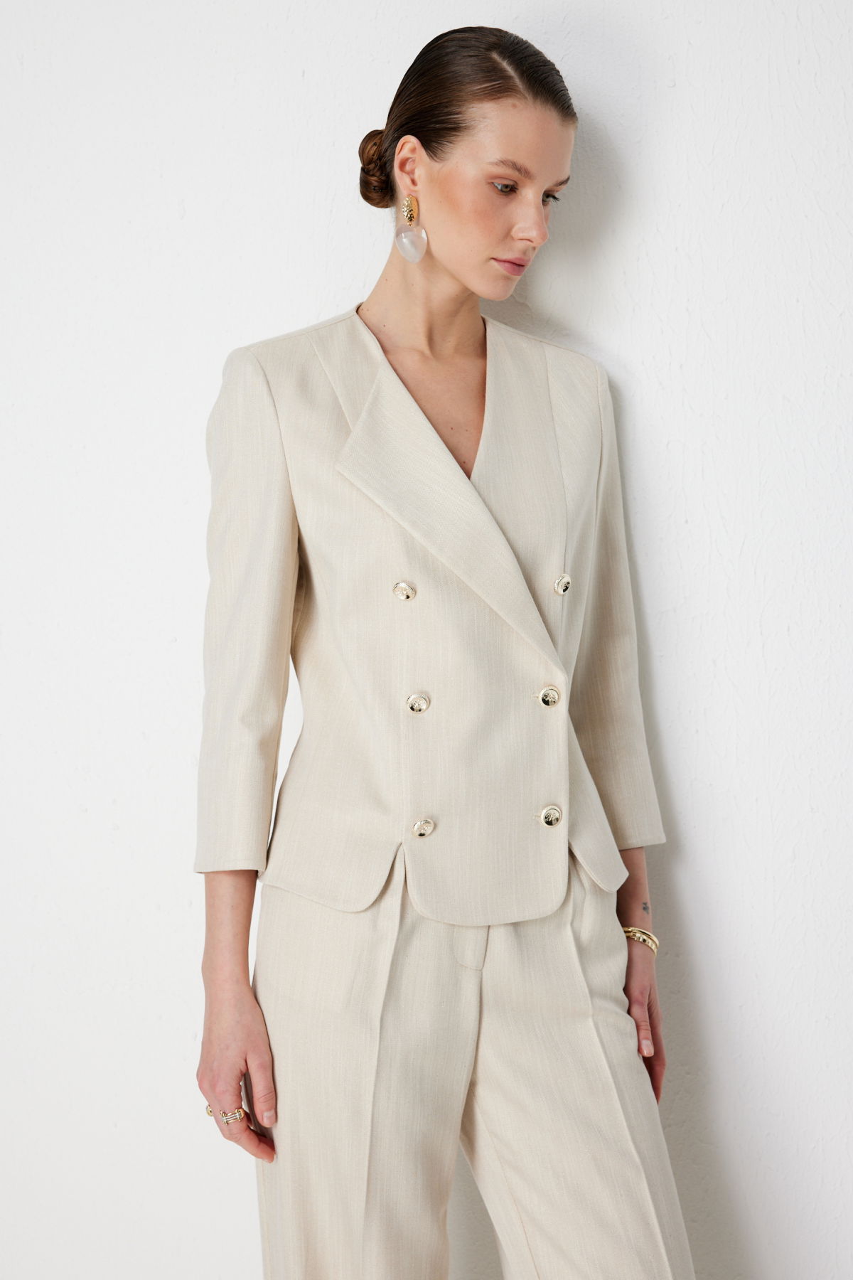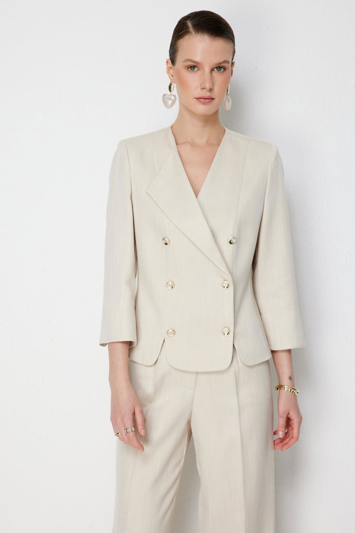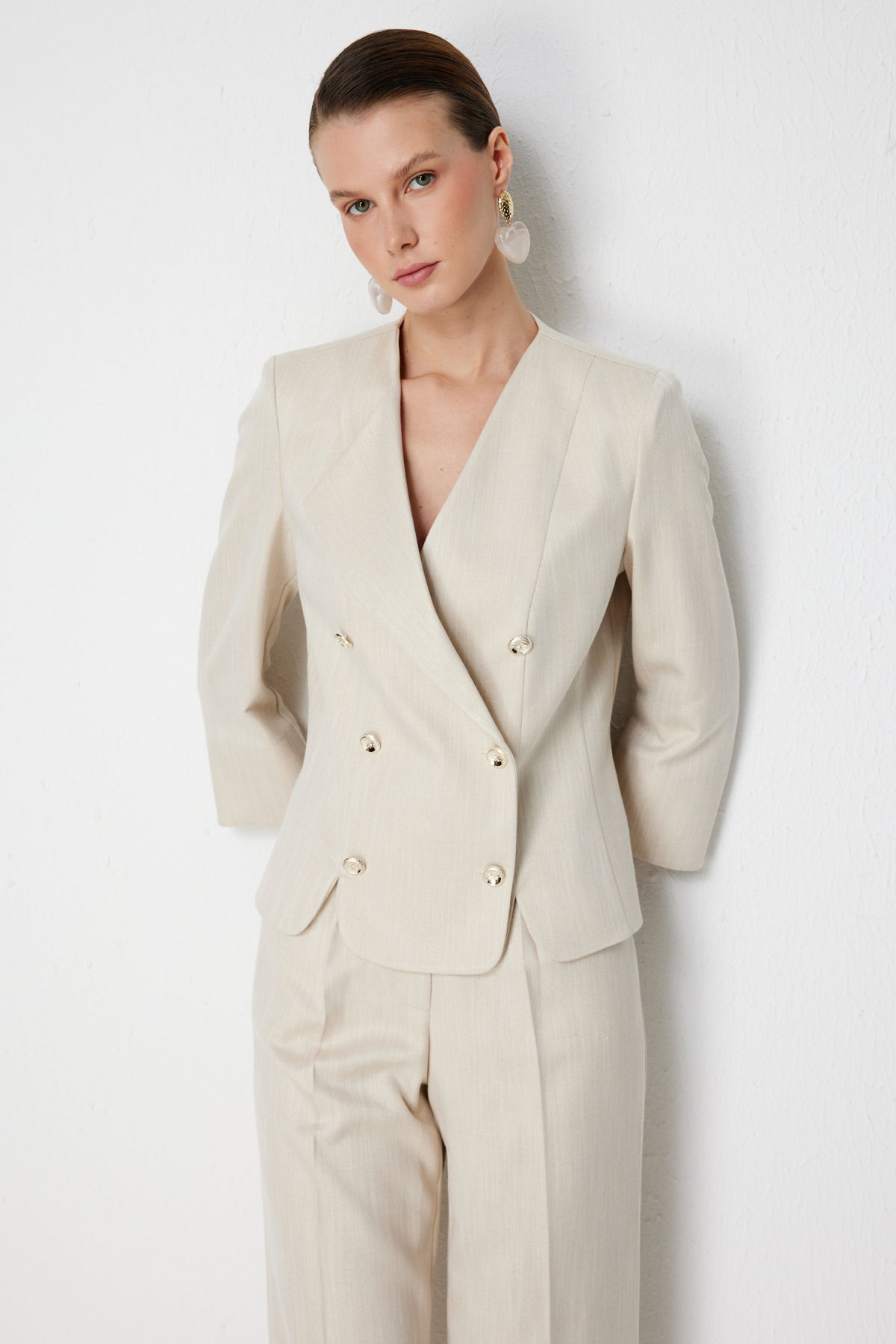 Detay: Bu ceket modeli, dokuma kumaş yapısıyla kaliteli ve dayanıklı bir kullanım sunarken astarsız tasarımı sayesinde hafif bir giyim deneyimi sağlar. Truvakar kol boyuna sahip uzun vatkalı formu modern ve güçlü bir siluet oluştururken, kruvaze yaka detayı sofistike bir görünüm kazandırır. Düğmeli kapama şekli klasik bir dokunuş sunarken, cepsiz tasarımı minimal ve zarif bir stil ortaya çıkarır. Günlük kombinlerden ofis şıklığına kadar geniş bir kullanım alanı yaratan bu parça, gardırobunuzun öne çıkan seçeneklerinden biri olmaya adaydır;