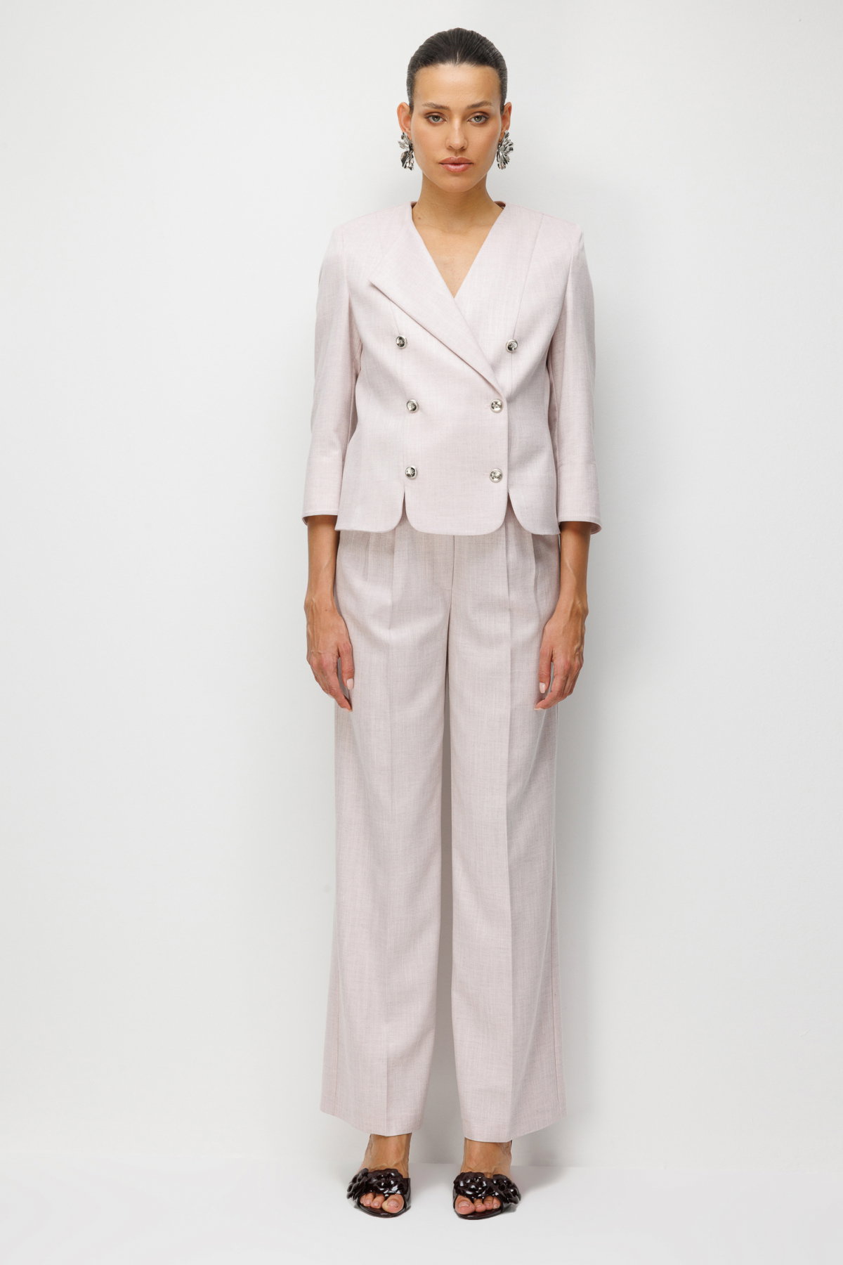 Detay: Bu ceket modeli, dokuma kumaş yapısıyla kaliteli ve dayanıklı bir kullanım sunarken astarsız tasarımı sayesinde hafif bir giyim deneyimi sağlar. Truvakar kol boyuna sahip uzun vatkalı formu modern ve güçlü bir siluet oluştururken, kruvaze yaka detayı sofistike bir görünüm kazandırır. Düğmeli kapama şekli klasik bir dokunuş sunarken, cepsiz tasarımı minimal ve zarif bir stil ortaya çıkarır. Günlük kombinlerden ofis şıklığına kadar geniş bir kullanım alanı yaratan bu parça, gardırobunuzun öne çıkan seçeneklerinden biri olmaya adaydır;