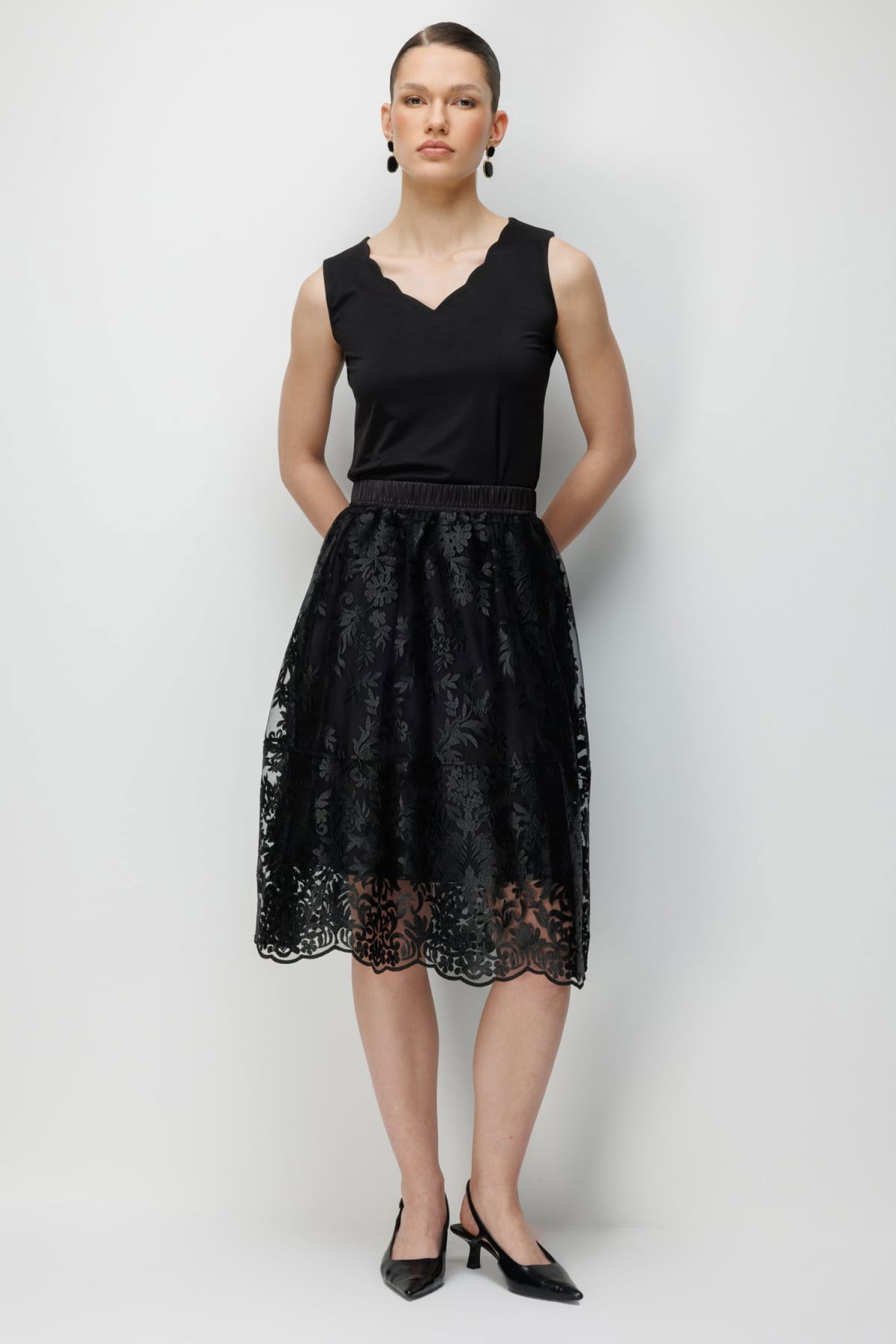 Detay: Astarlı yapısı ile şık bir duruş sunan bu etek modeli, lastikli bel detayı sayesinde gün boyu konforlu bir kullanım sağlar. Yan cepli tasarımı pratiklik kazandırırken aynı zamanda modern bir görünüm oluşturur. Polyester kumaş tipi ile hazırlanan bu parça, hem günlük kombinlerde hem de özel anlarda stil sahibi bir seçenek olarak öne çıkar;