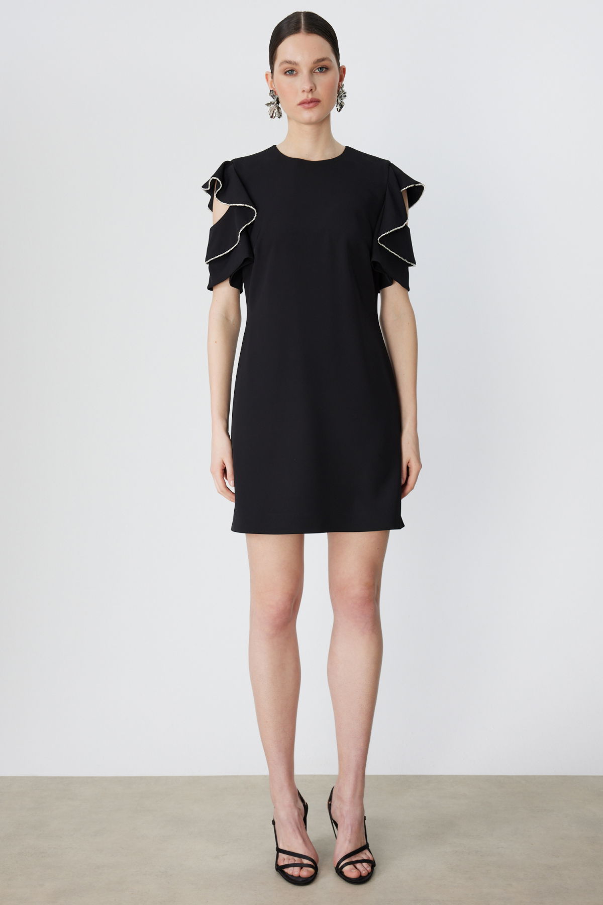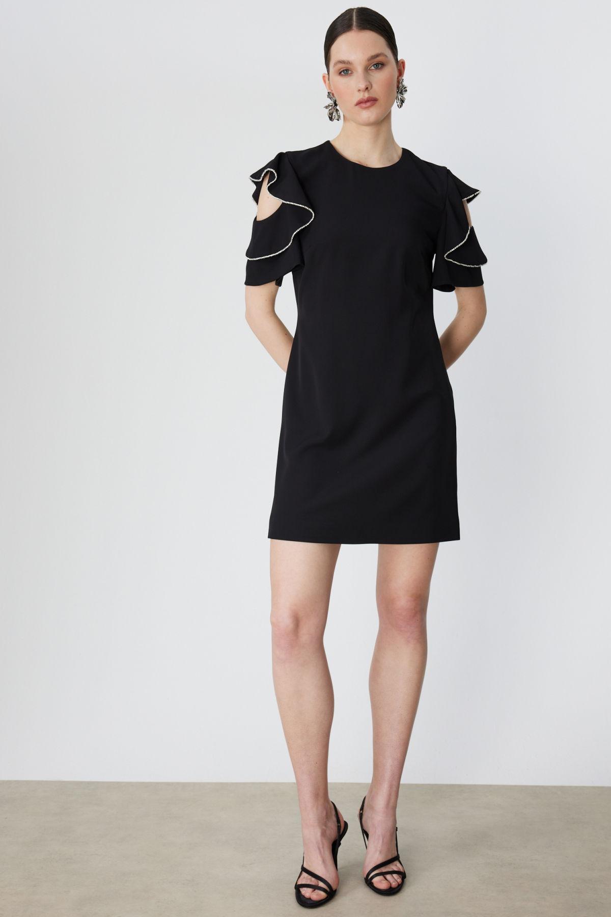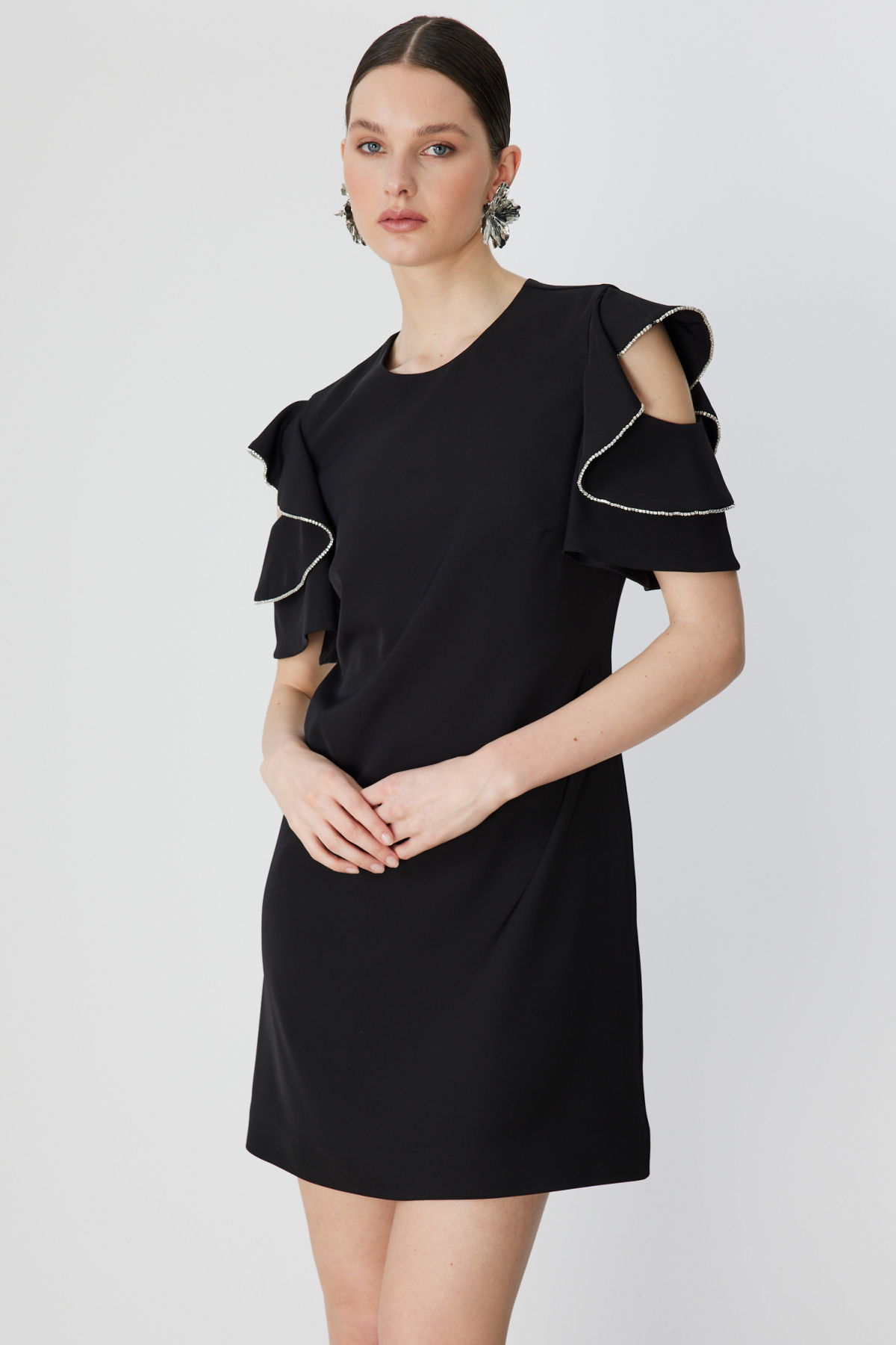 Detay: Dokuma kumaşın zarif dokusu ile tasarlanan bu elbise, astarlı yapısı sayesinde konforu ve şıklığı bir arada sunar. Sıfır yaka ve omzu açık kısa kol detayı modern bir görünüm kazandırırken, fermuarlı kapama pratik kullanım sağlar. Günlük kombinlerden özel davetlere kadar her ortamda stilinizi öne çıkaracak ideal bir seçenektir;