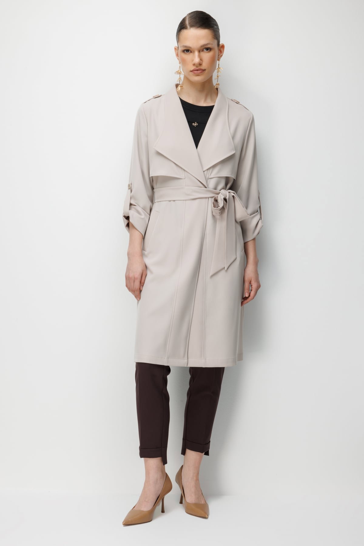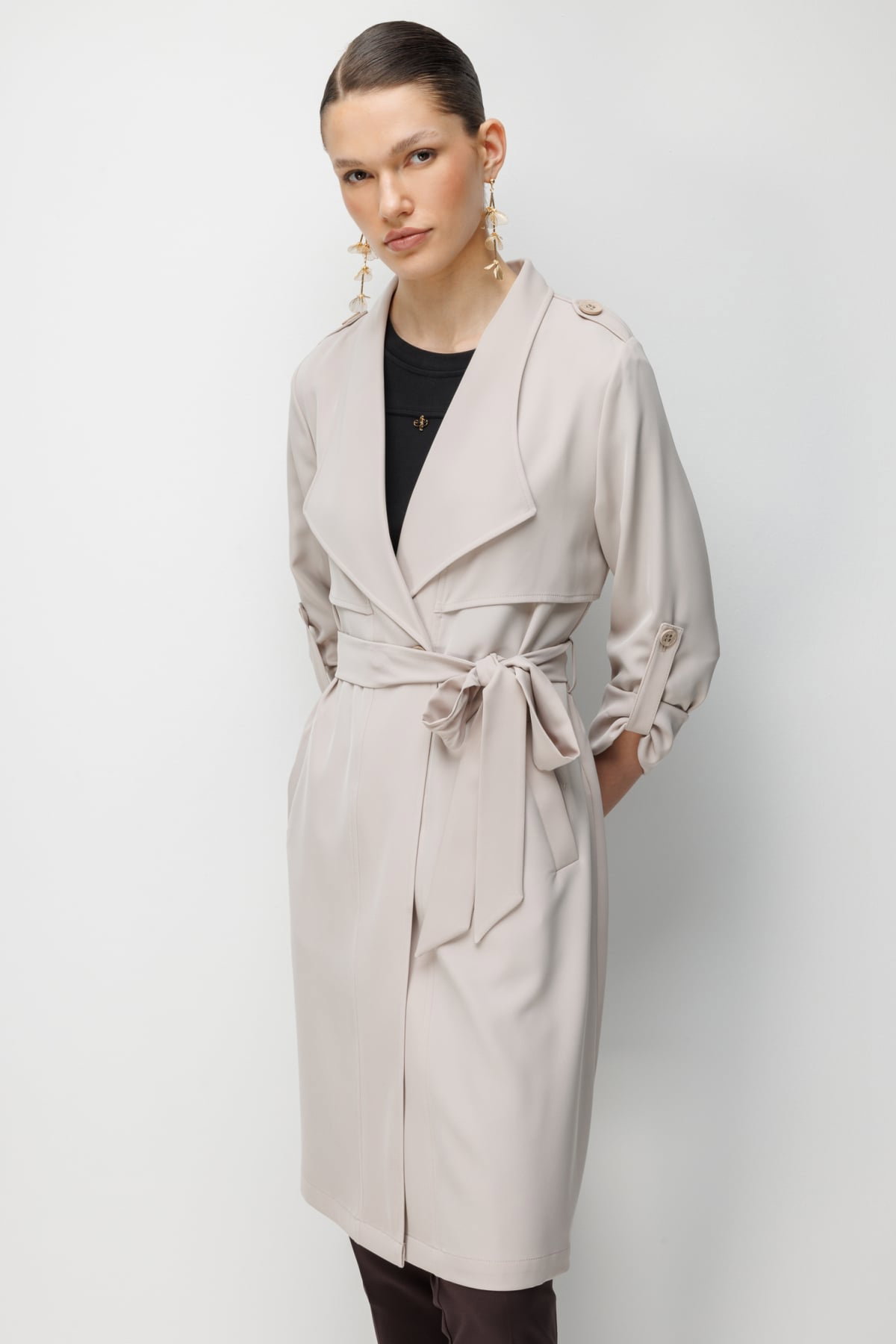 Detay: Bu trençkot modeli, dokuma kumaş yapısıyla dayanıklı ve kaliteli bir kullanım sunarken astarsız tasarımı sayesinde hafif bir giyim deneyimi sağlar. Ceket yaka detayı klasik ve sofistike bir görünüm kazandırırken, uzun kollu tasarımı mevsim geçişlerinde ideal bir tercih olur. Kuşaklı bel detayı silueti zarif bir şekilde vurgular, düğmeli kapama ise şıklığı tamamlar. Yan cepler fonksiyonel bir kullanım sunarak günlük pratikliği artırır. Hem şehir şıklığında hem de özel kombinlerde öne çıkan zamansız bir parçadır;