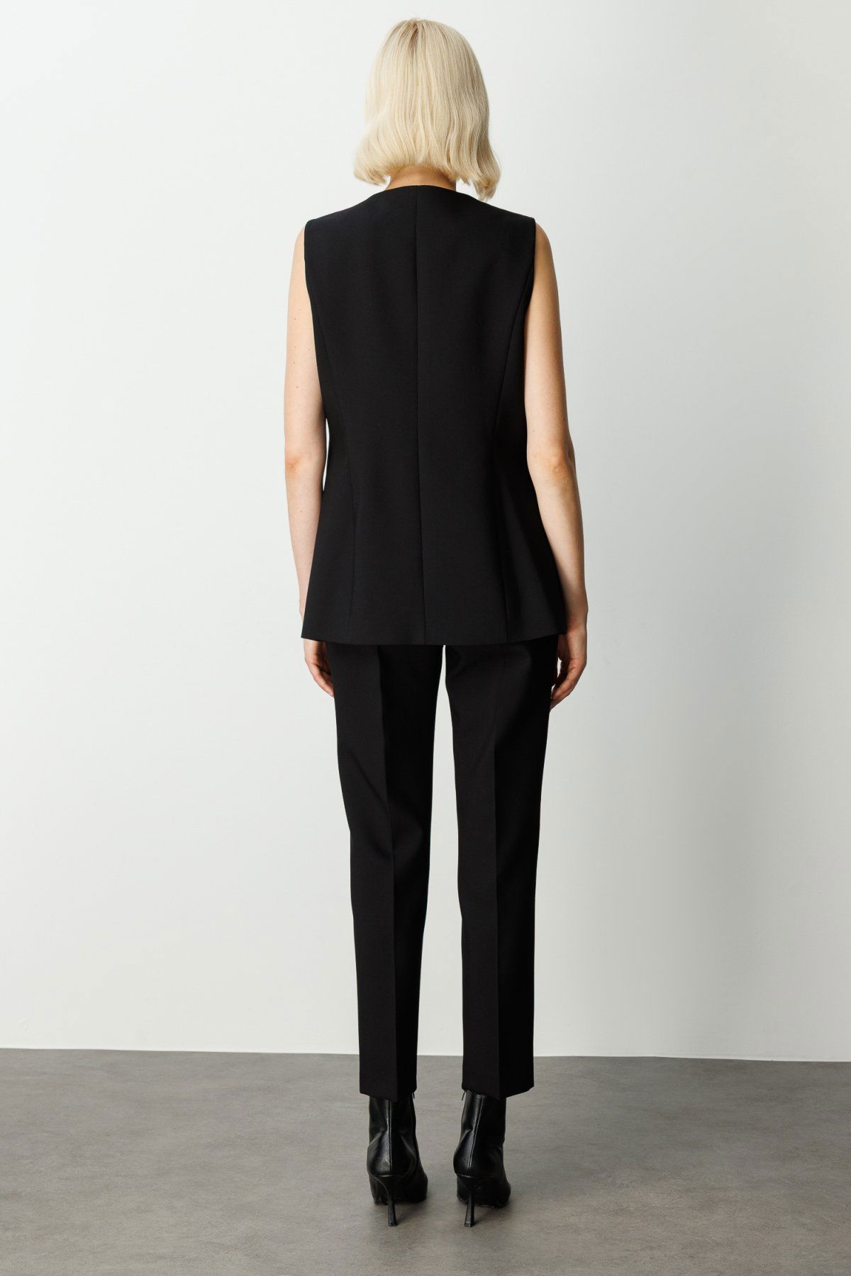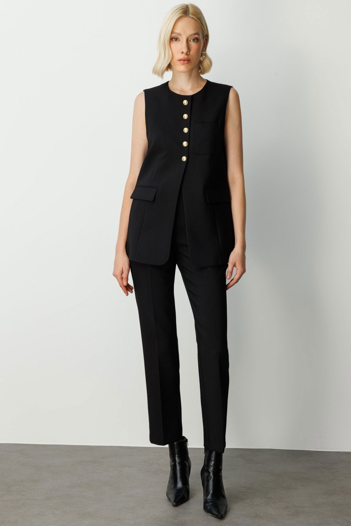 Detay: Dokuma kumaştan üretilmiş, astarlı ve sıfır yaka tasarıma sahip kolsuz yelekler; düğmeli kapama ve kapaklı cep detaylarıyla sade ama dikkat çekici bir stil sunar. Hafif yapısı sayesinde mevsim geçişlerinde ideal olan bu modeller, hem günlük kombinlerde hem de katmanlı giyimde şıklığı tamamlar. Fonksiyonel cepleri ve klasik çizgileriyle modern gardıropların vazgeçilmez parçalarından biridir;