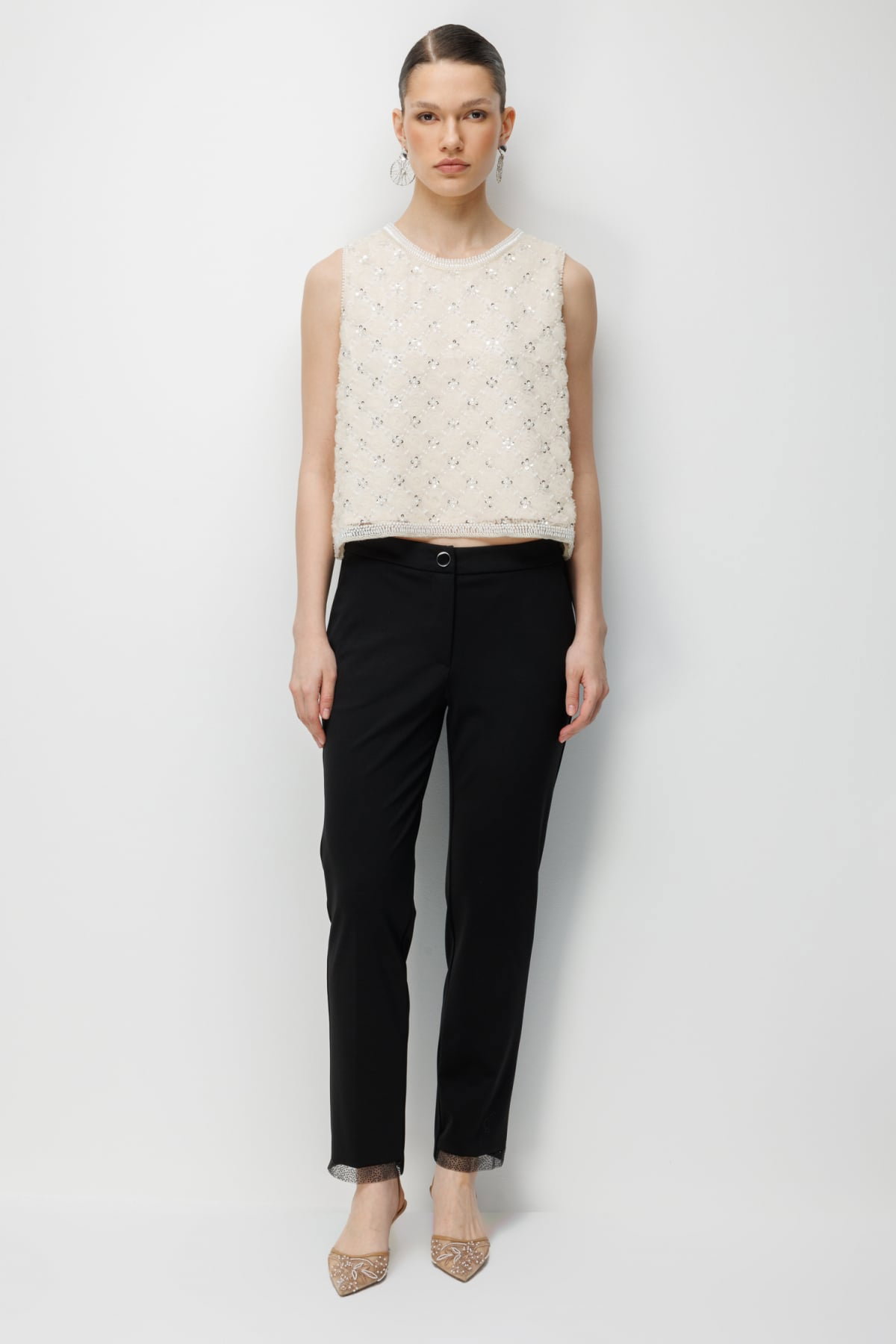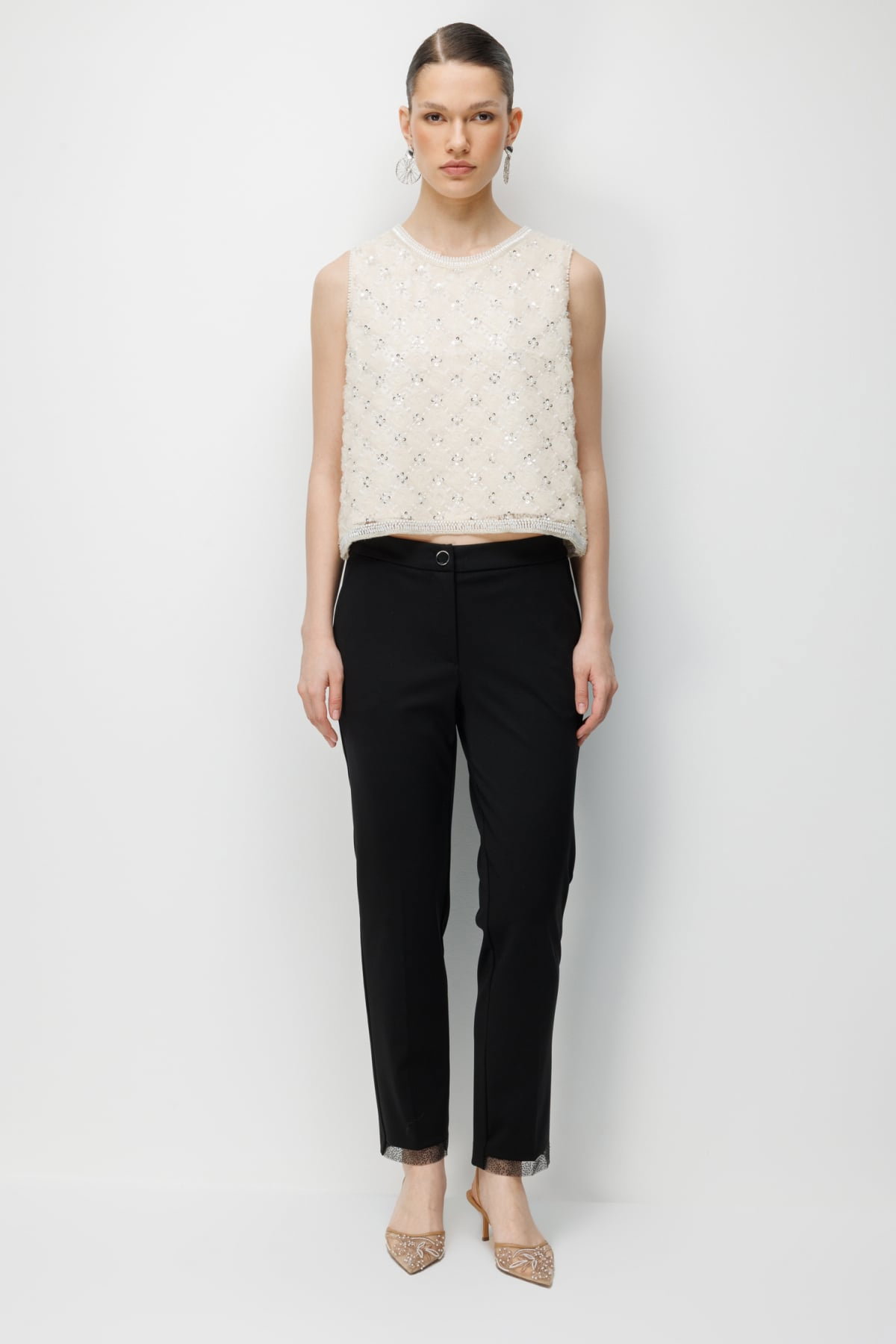 Detay: Astarsız yapısı sayesinde hafif ve rahat bir kullanım sunan bu pantolon modeli, lastikli bel detayı ile gün boyu konfor sağlar. Dar paça tasarımı modern ve şık bir görünüm kazandırırken, fermuarlı kapama şekli işlevsel bir kullanım sunar. Dokuma kumaş ile hazırlanan ve yan cepli yapısı sayesinde pratiklik sağlayan bu parça, günlük kombinlerden özel anlara kadar stil sahibi bir seçenek olarak öne çıkar;